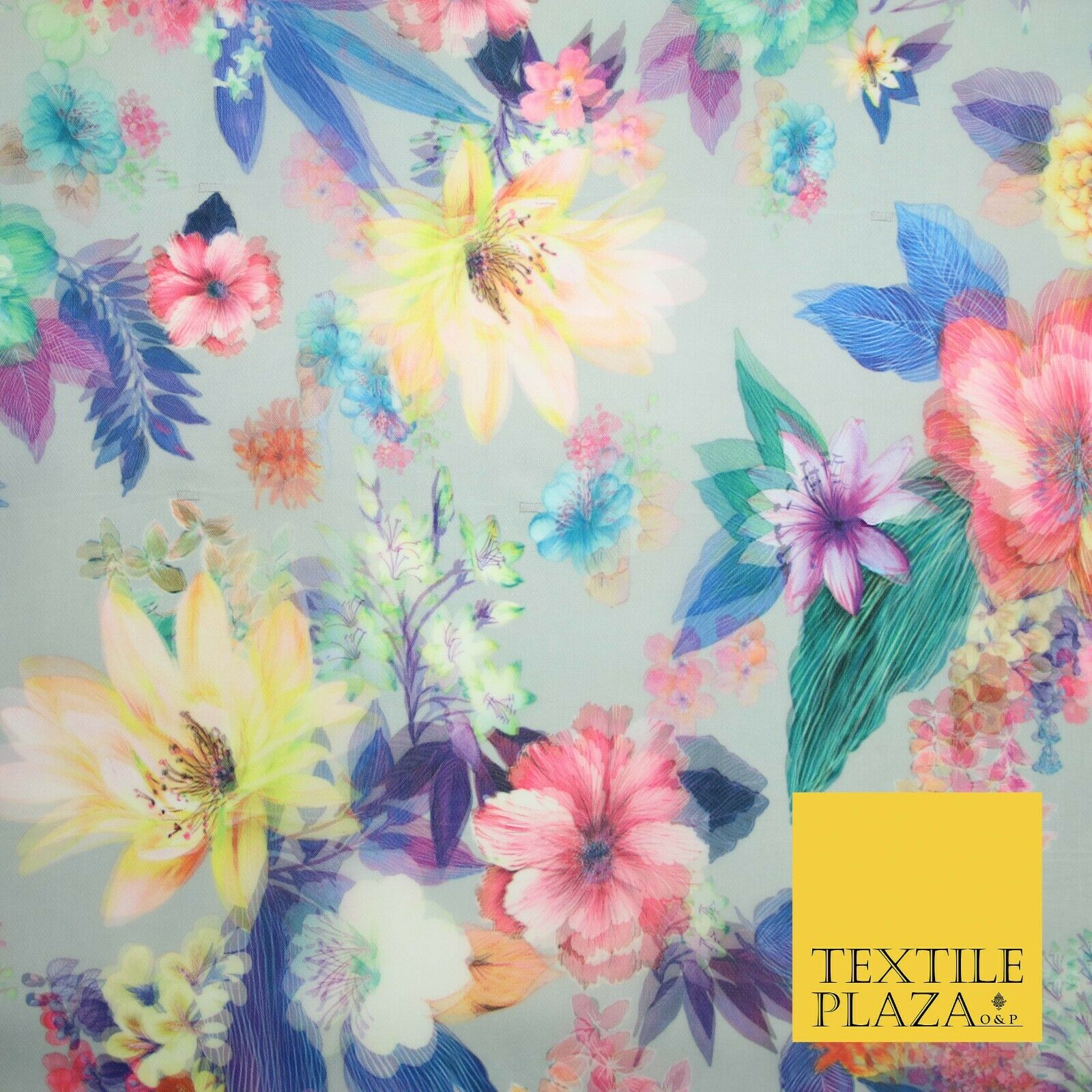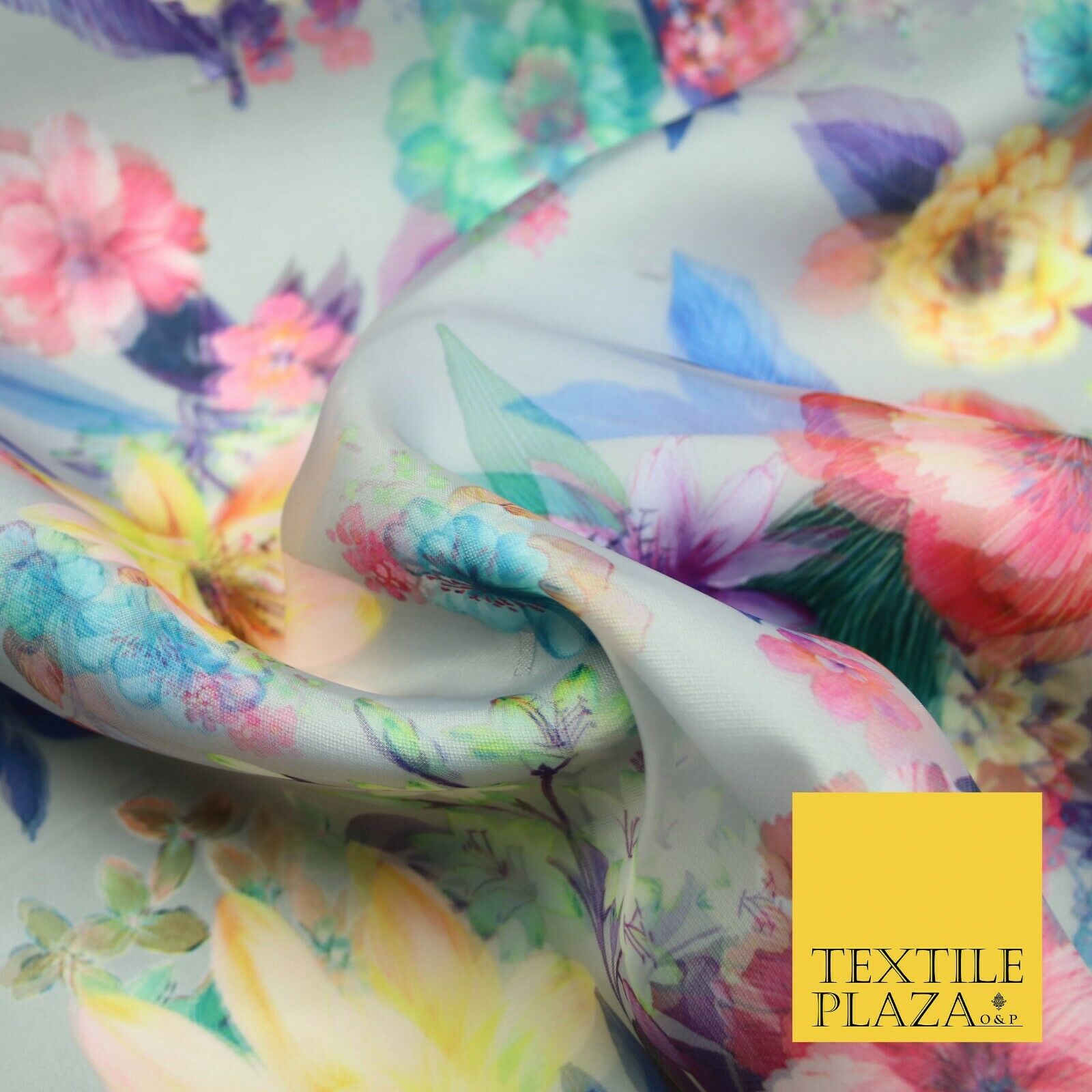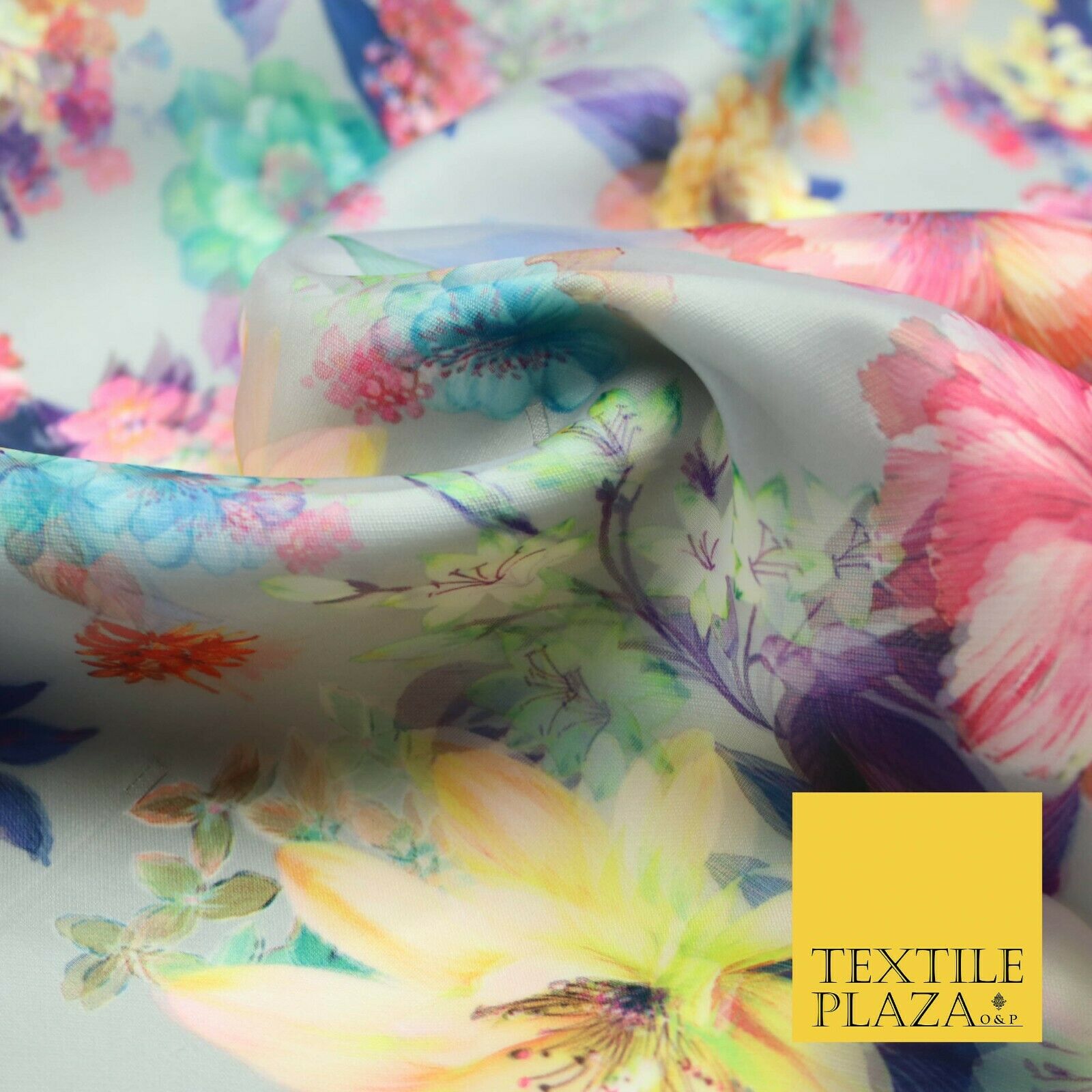 Luxury 3D Multicolour Floral Digital Printed Dual Organza Organdi Fabric 5038