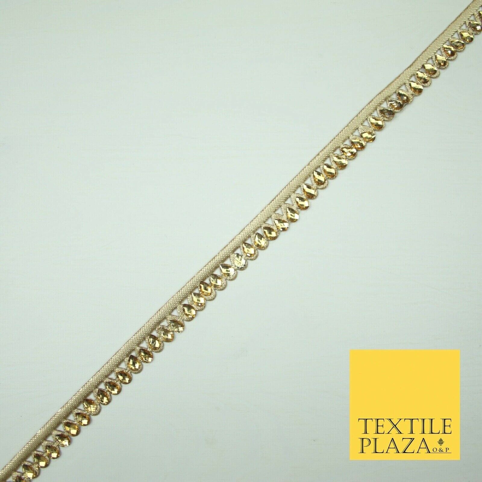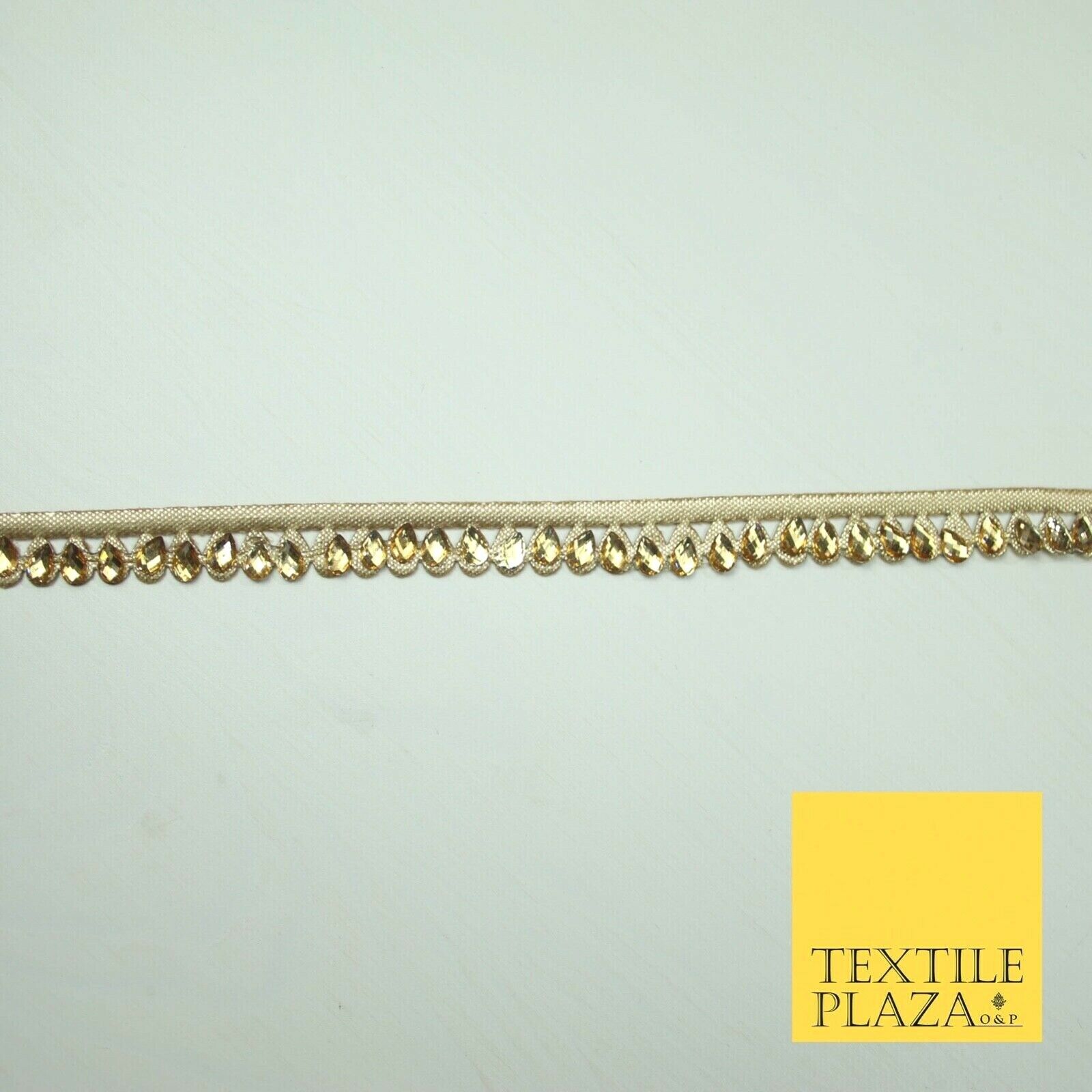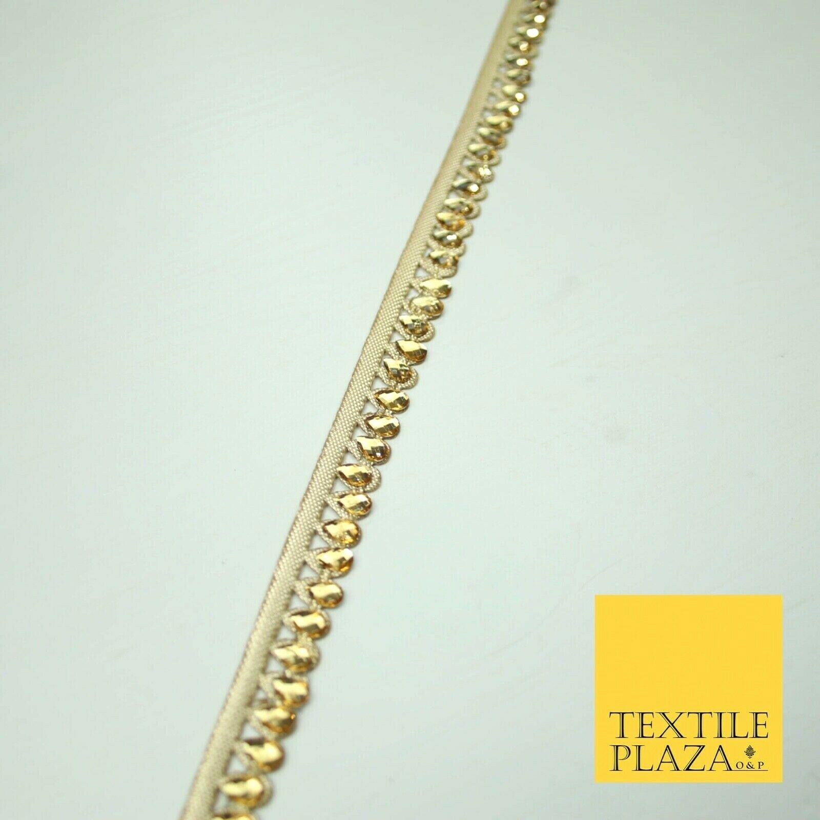 Luxury Antique Gold Fancy Teardrop Stone Ribbon Trimming Border Indian Lace X426
