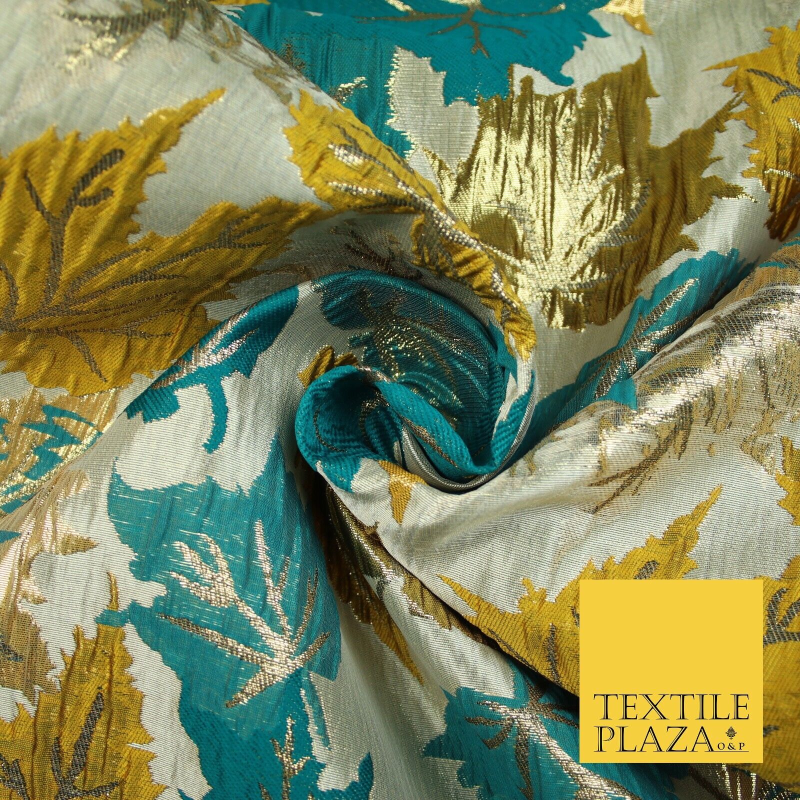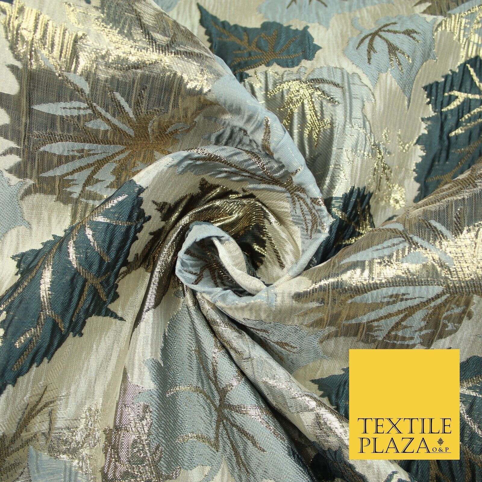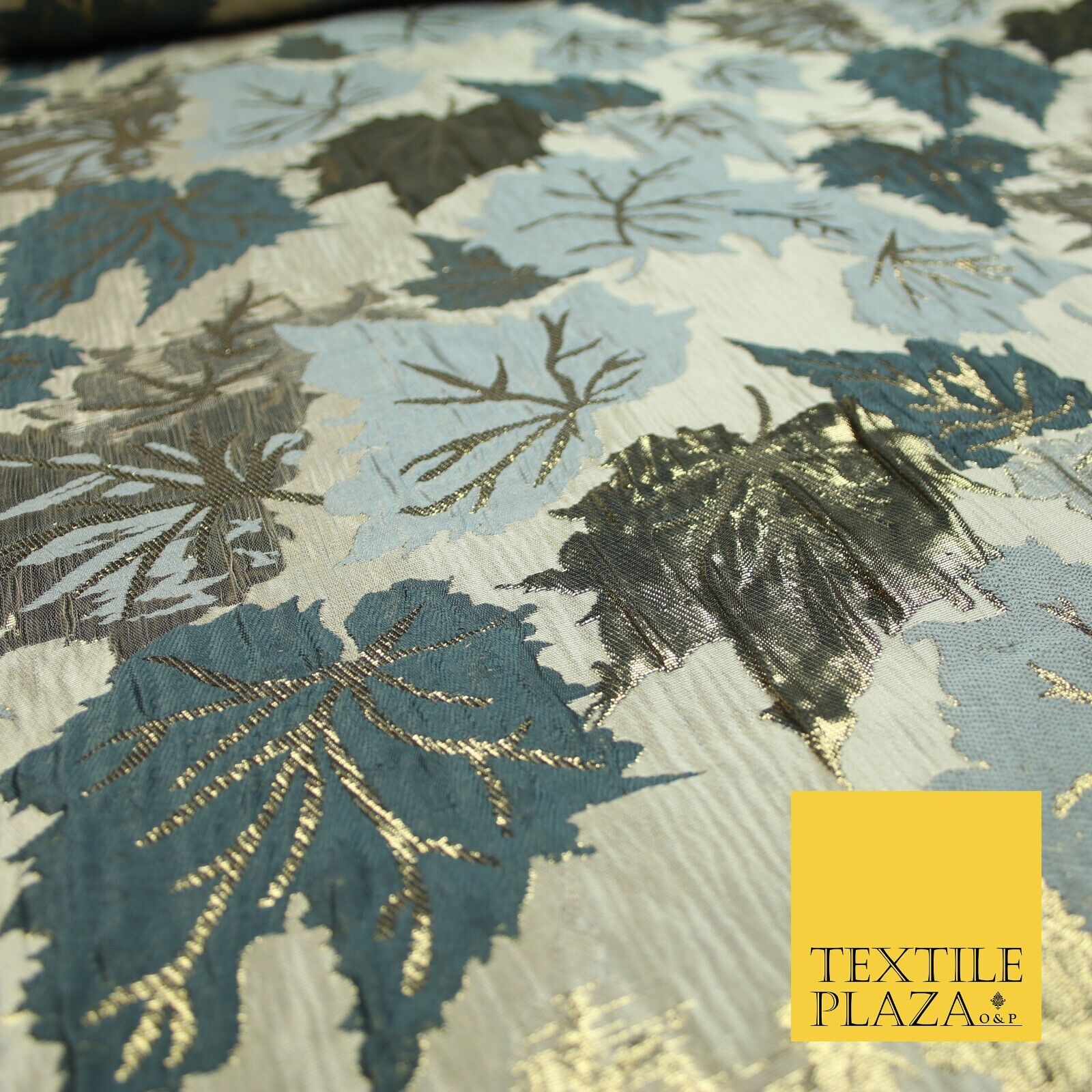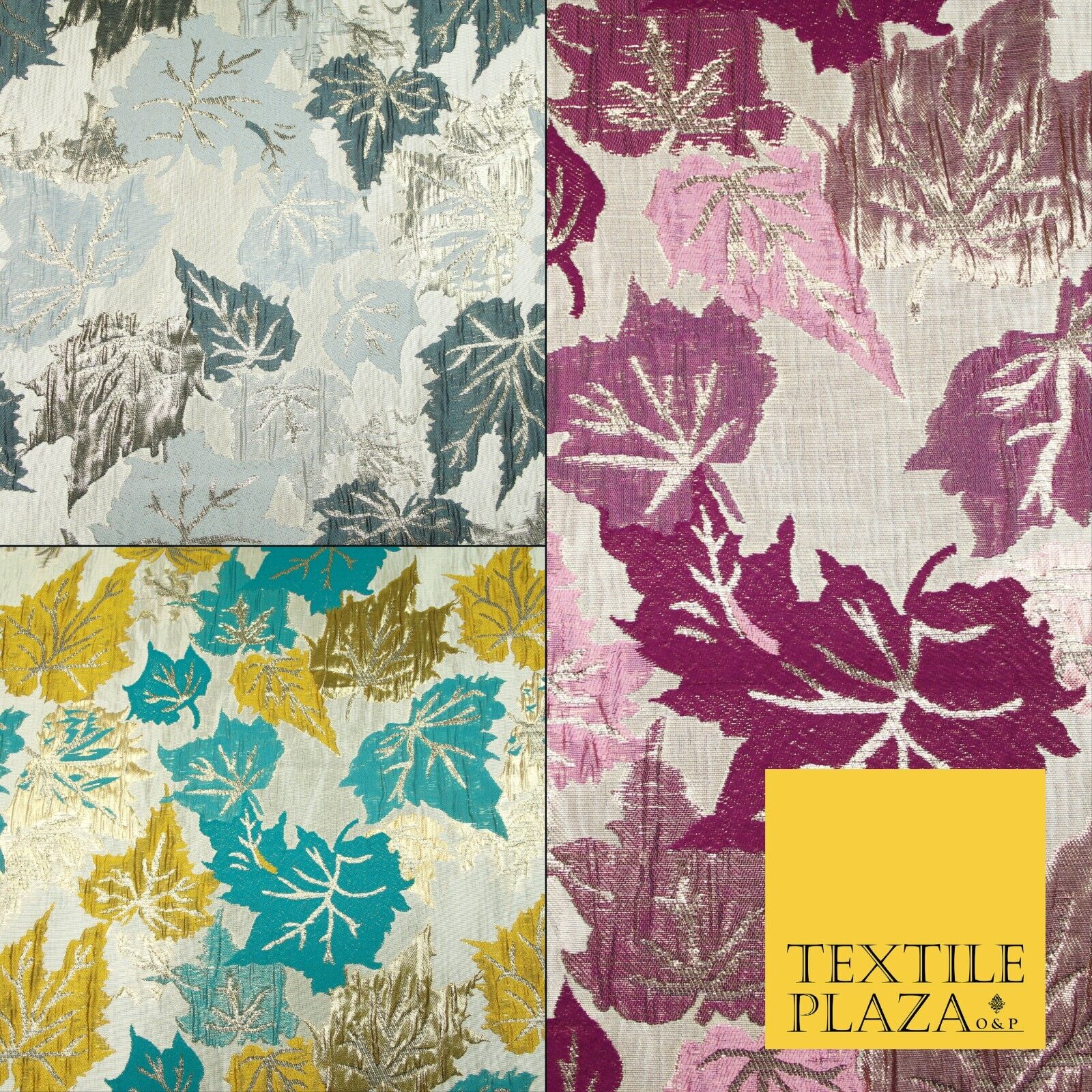 Luxury Autumnal Falling Maple Leaves Textured Brocade Dress Fabric Metallic 59"