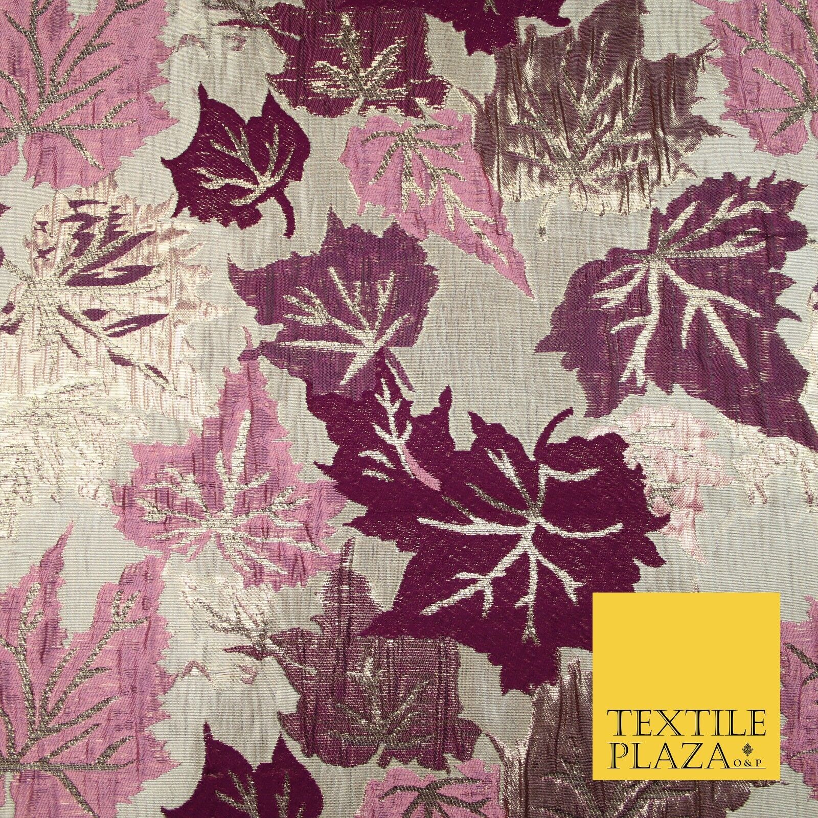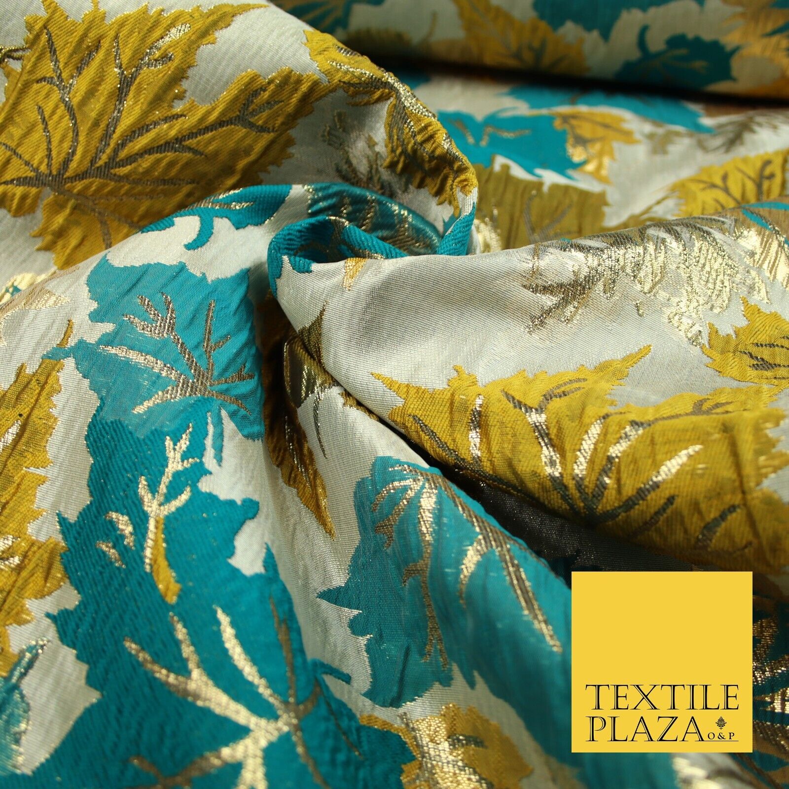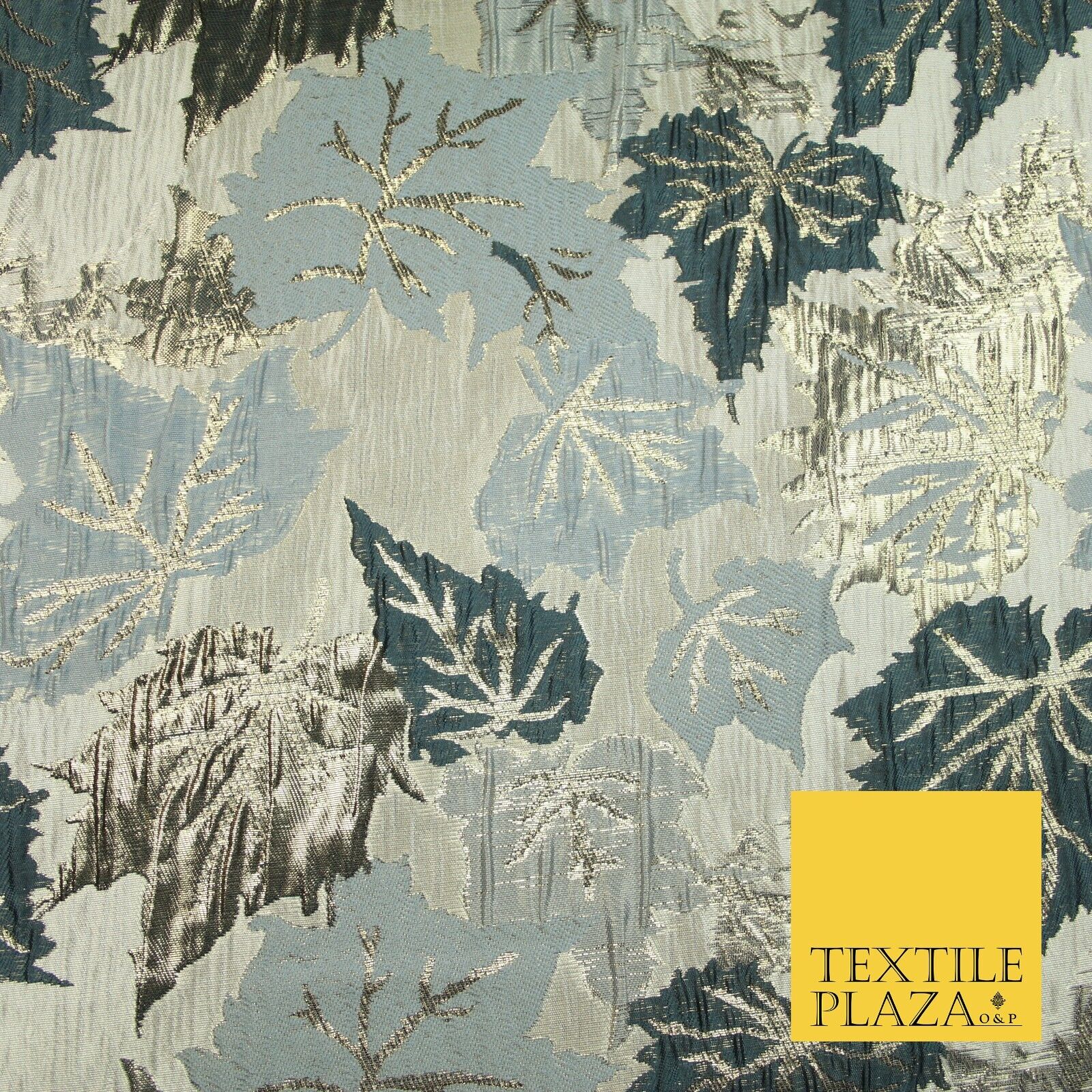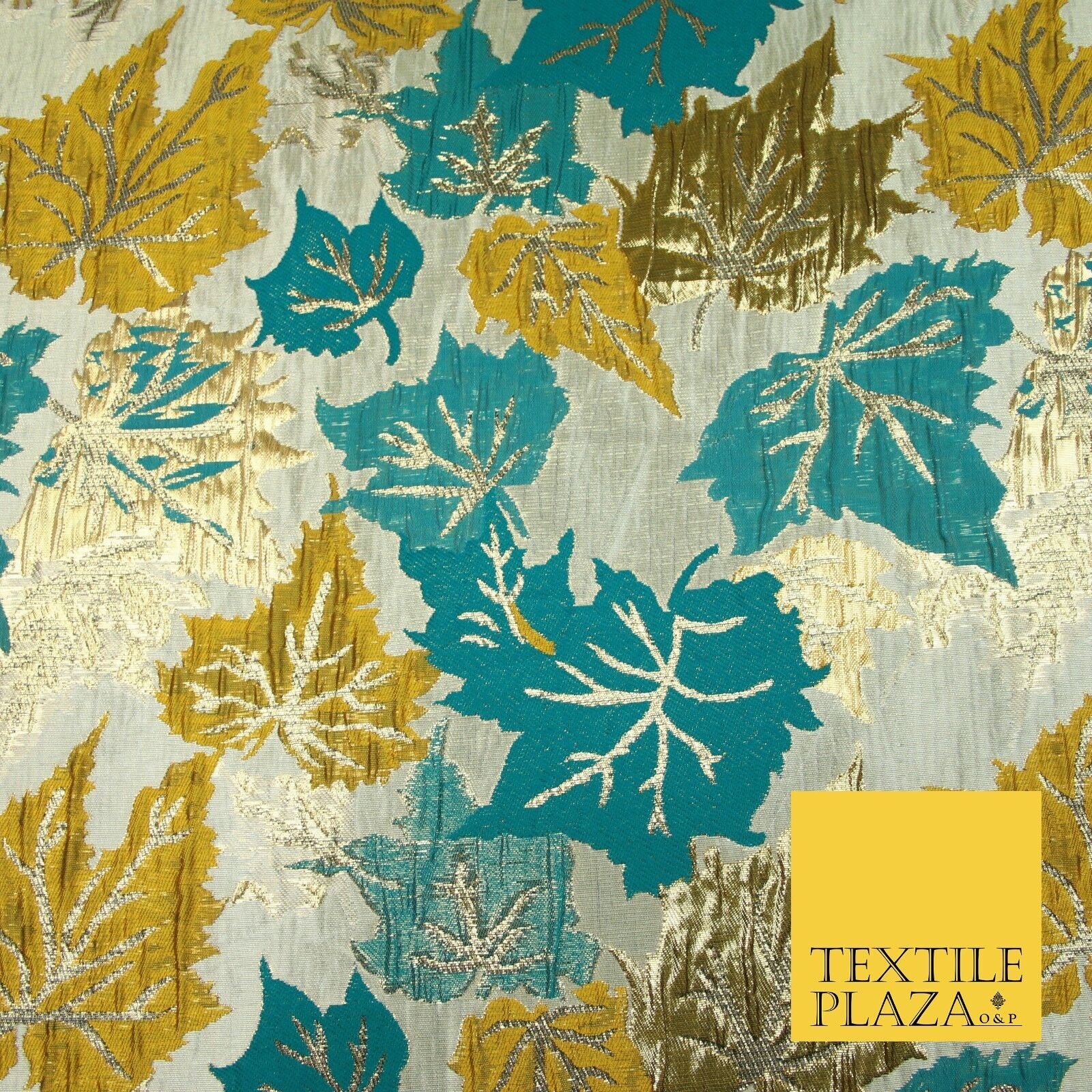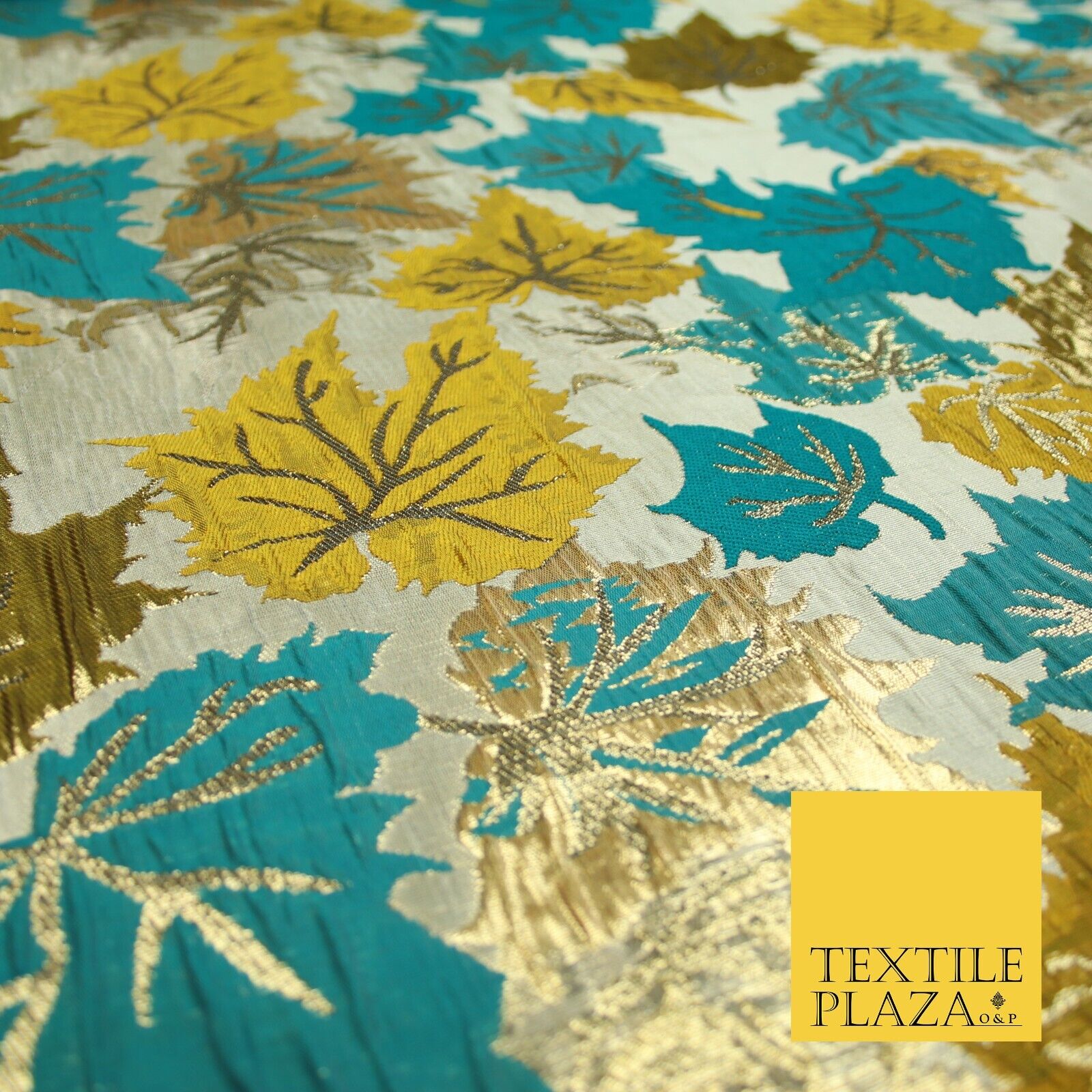 Luxury Autumnal Falling Maple Leaves Textured Brocade Dress Fabric Metallic 59"