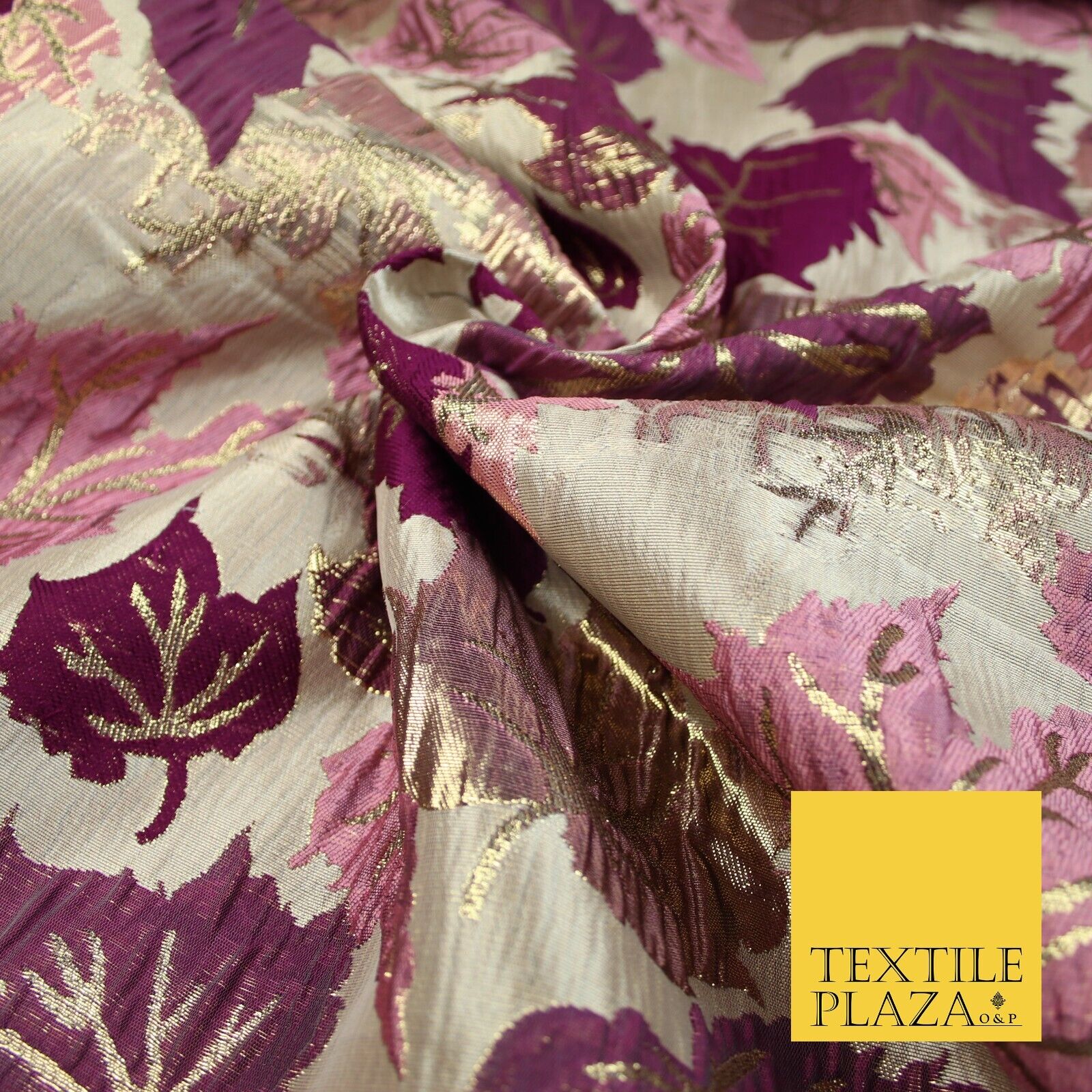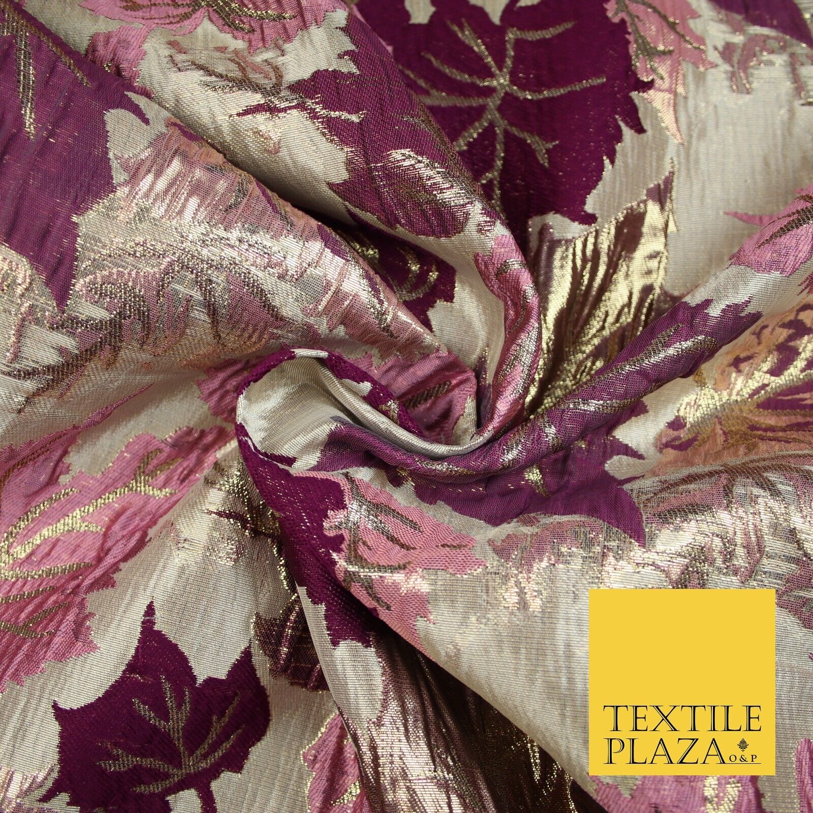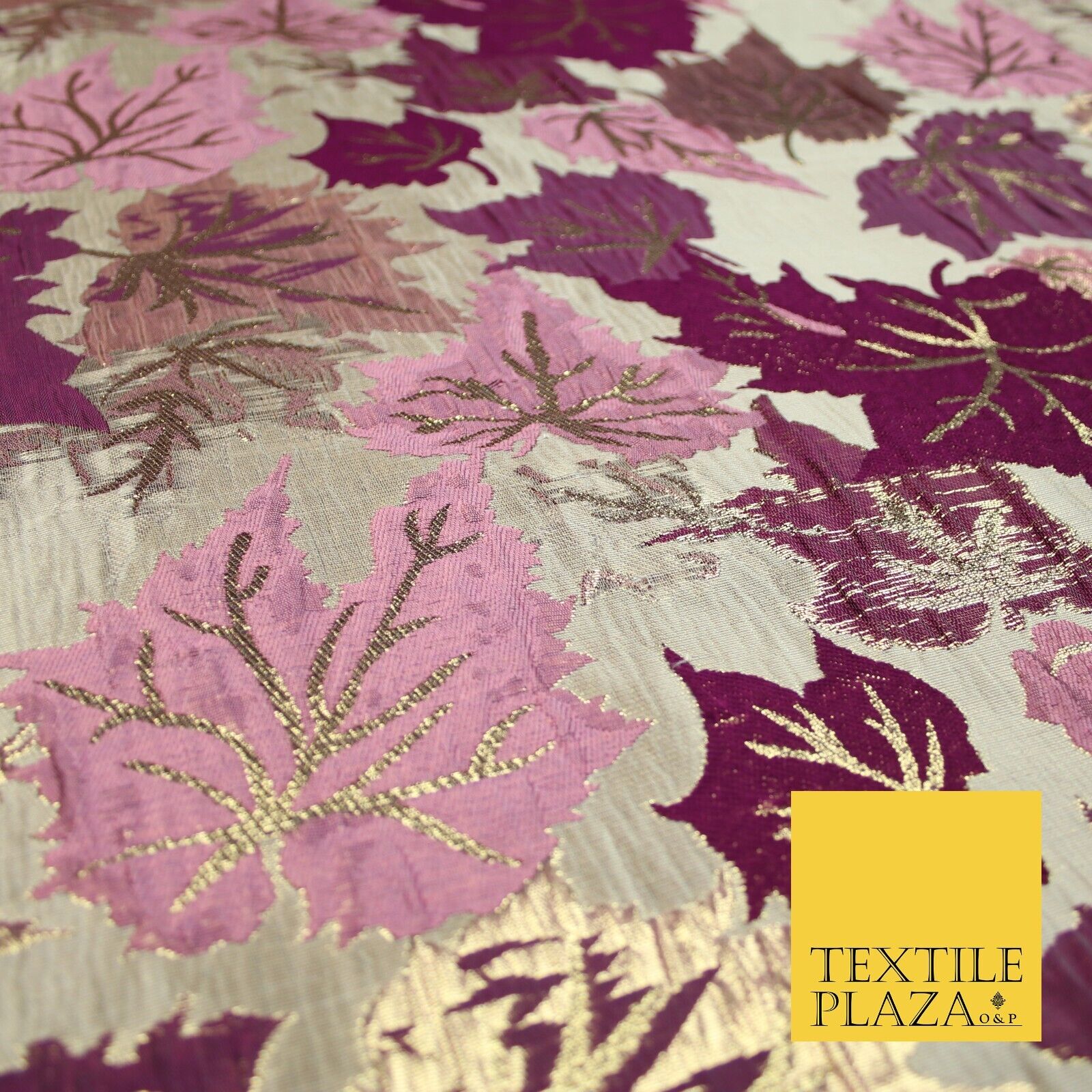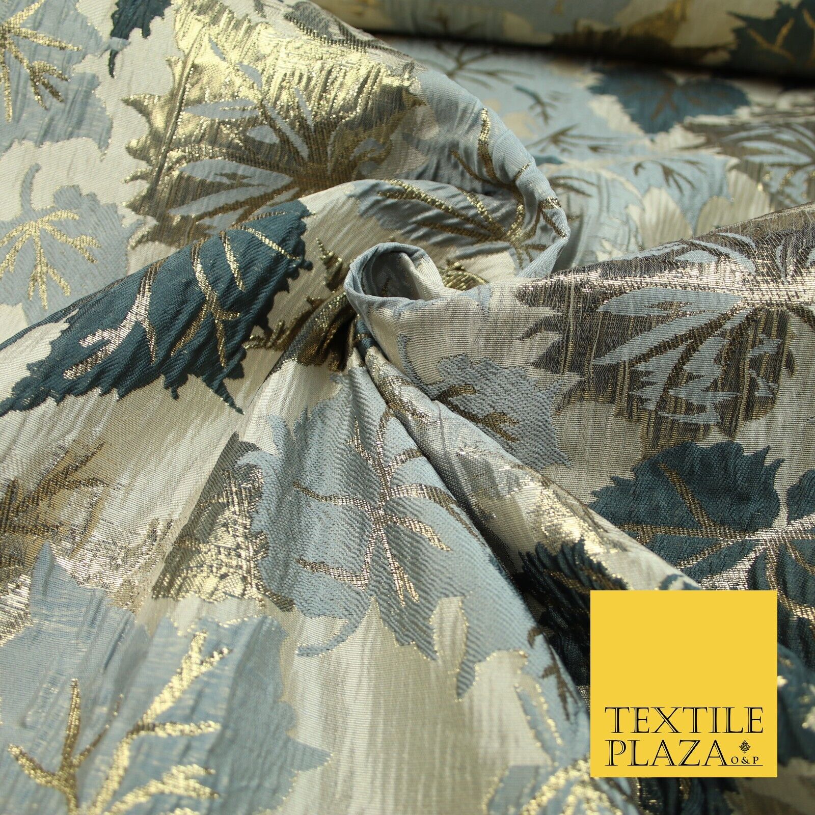 Luxury Autumnal Falling Maple Leaves Textured Brocade Dress Fabric Metallic 59"