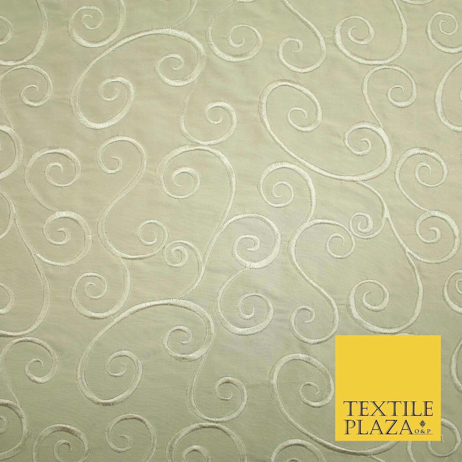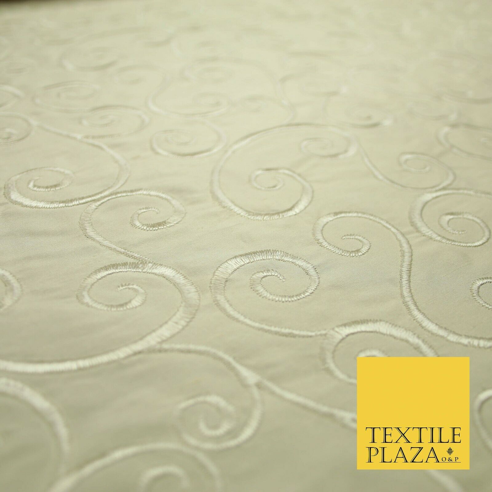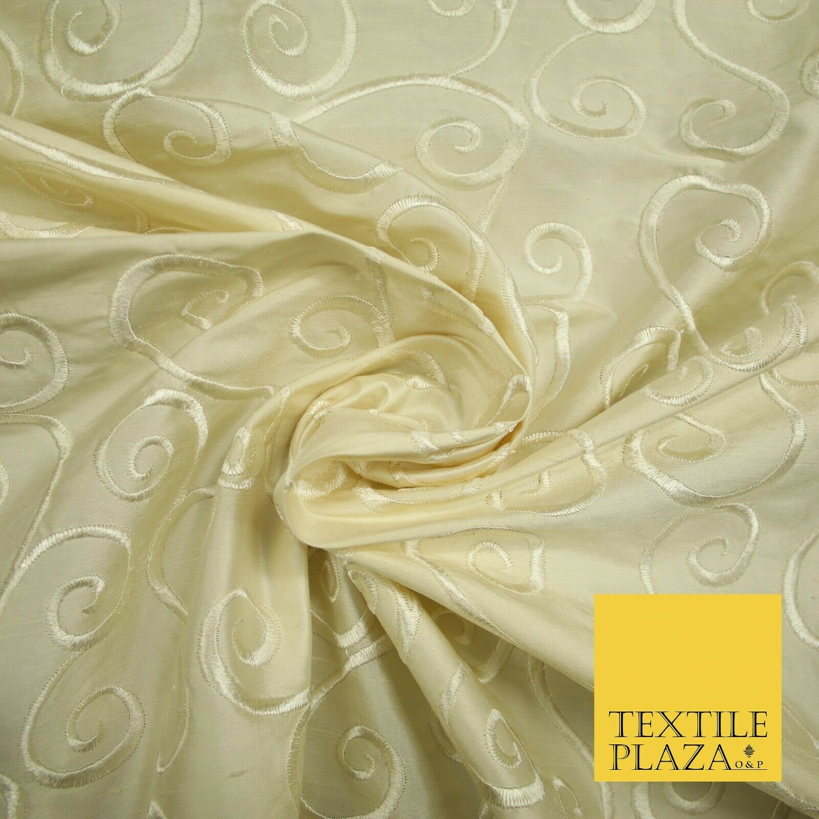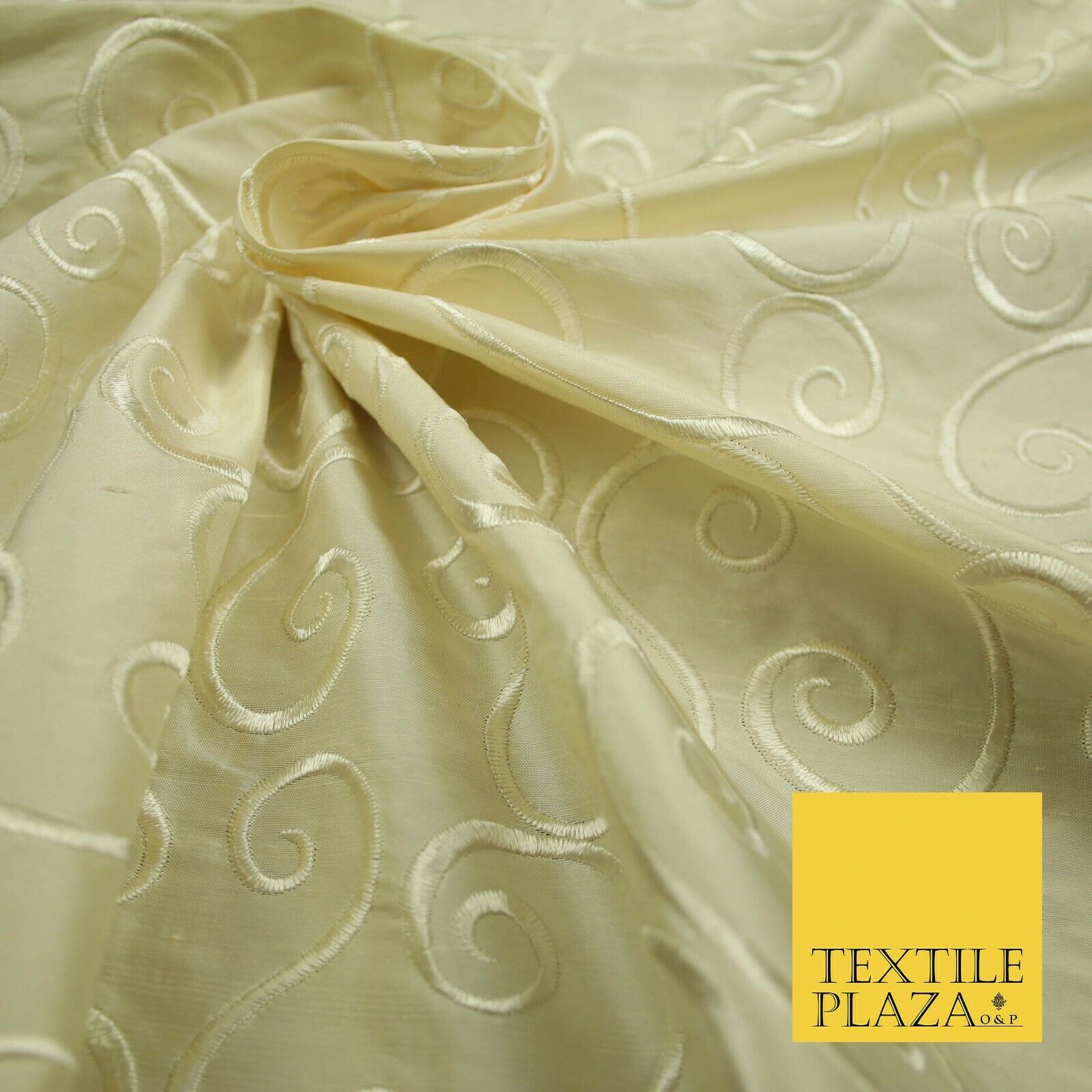Luxury Beige Gold Fancy Swirl Curls Embroidered 100% PURE SILK Fabric 45" 4651