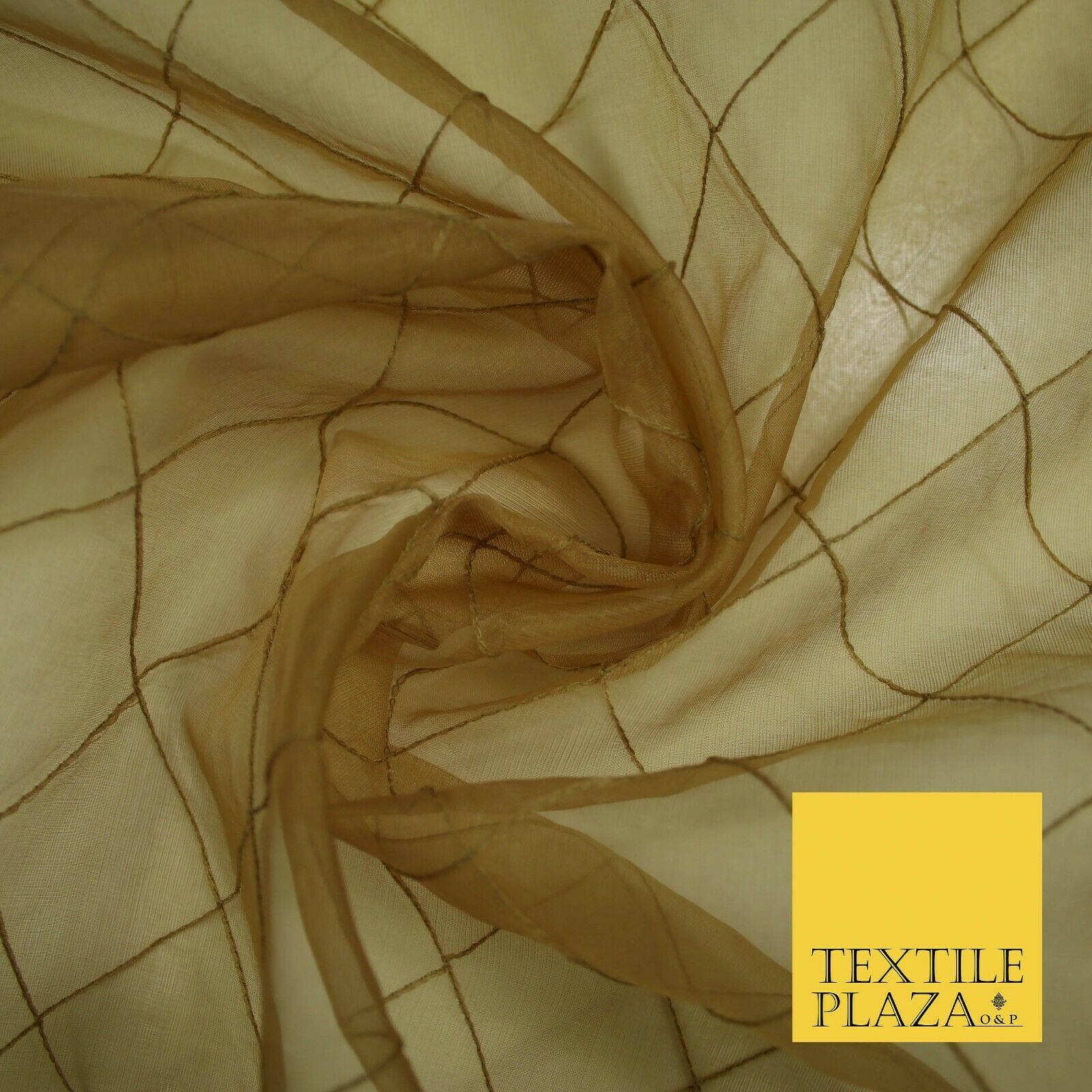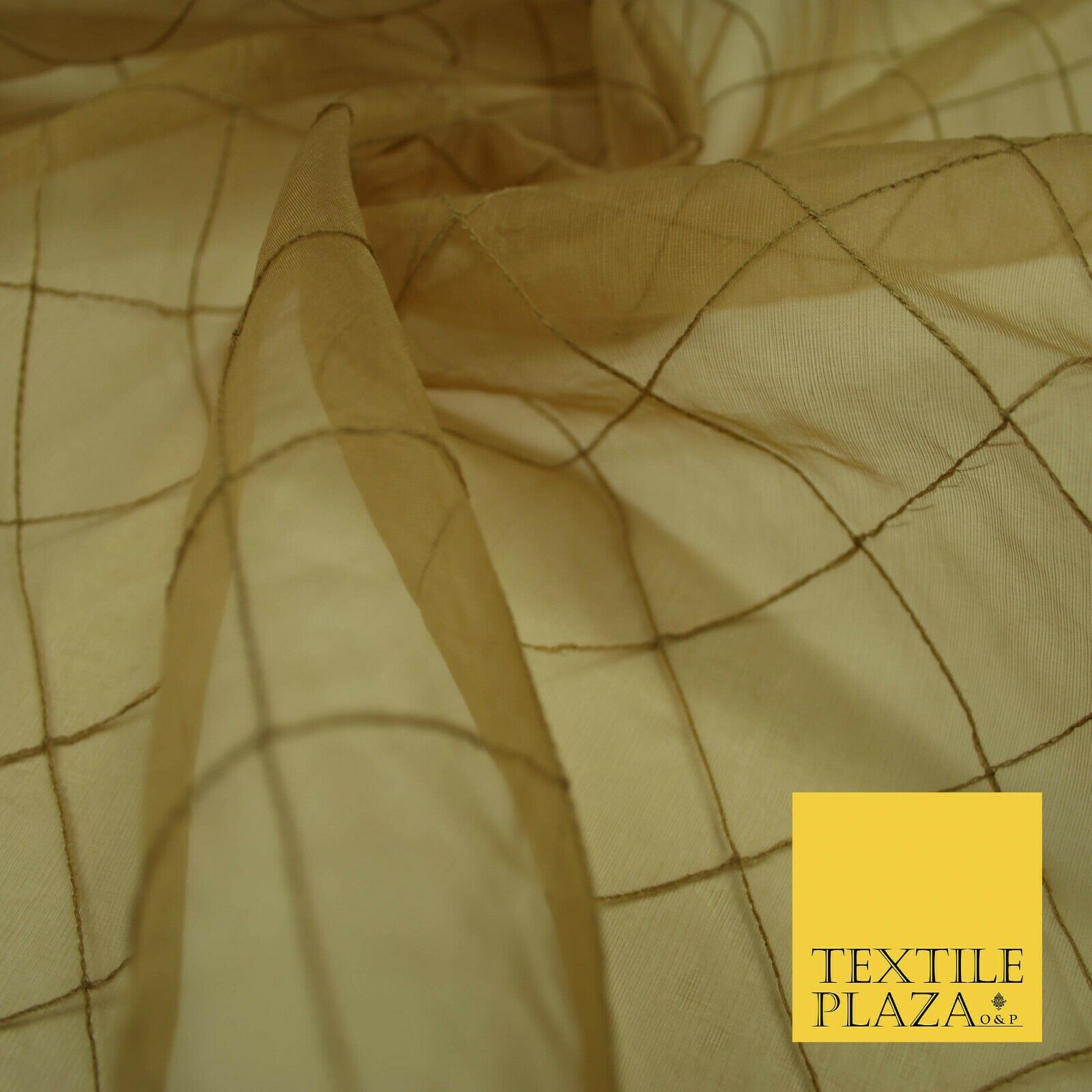 Luxury Caramel Gold Square PINTUCK 100% SILK ORGANZA Fabric Sheer 48" Wide 4628