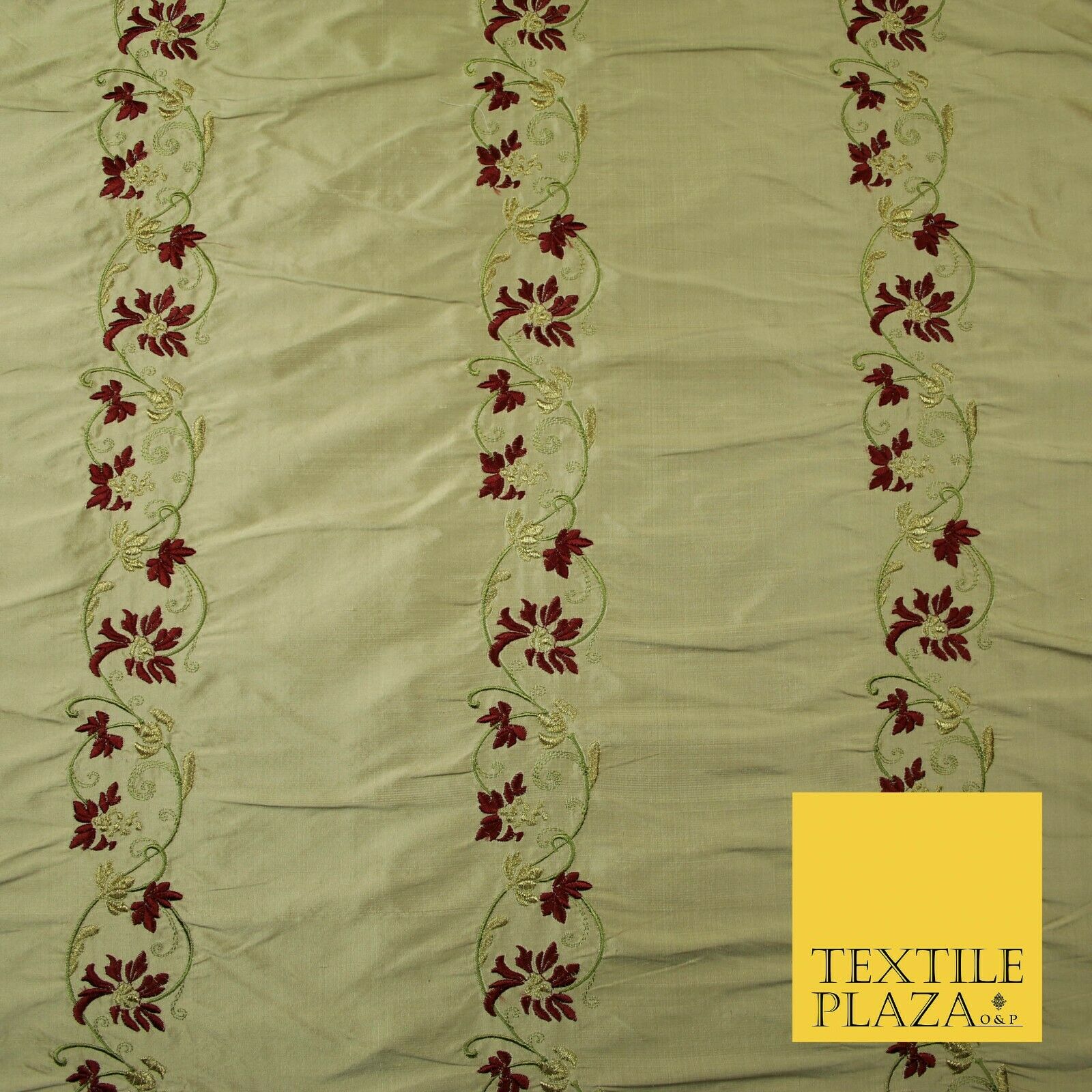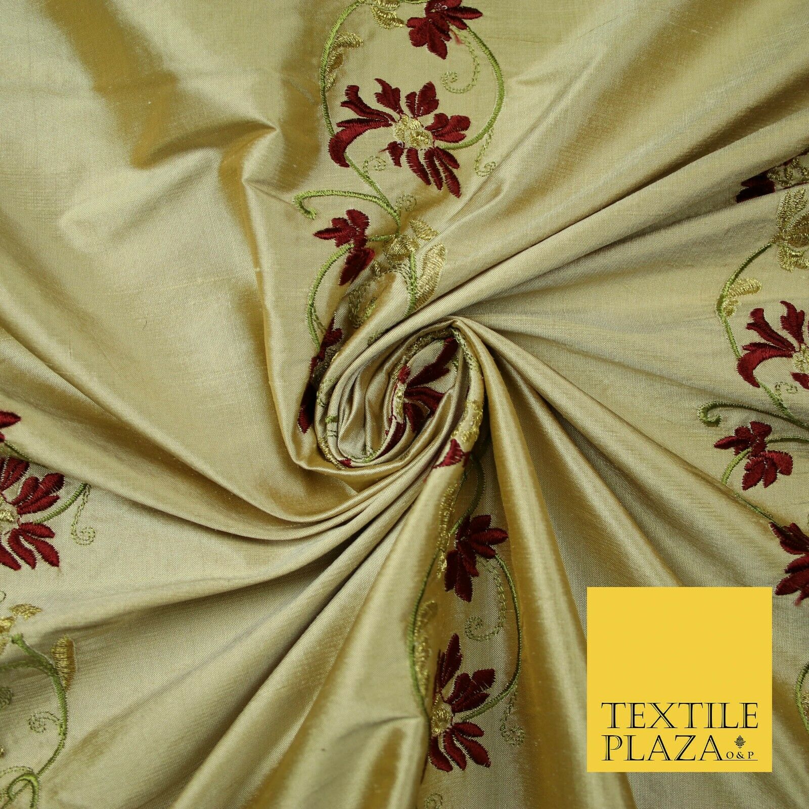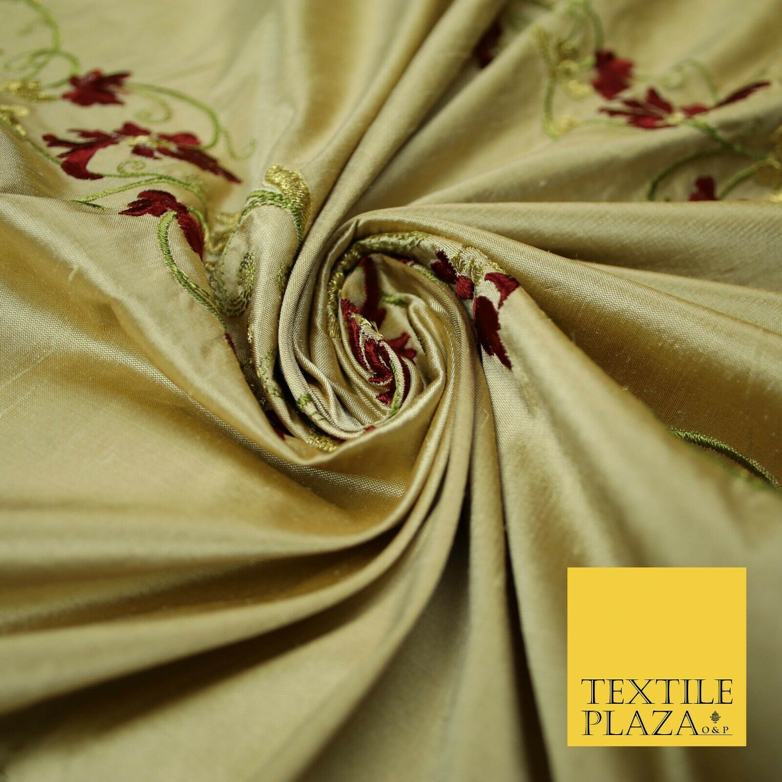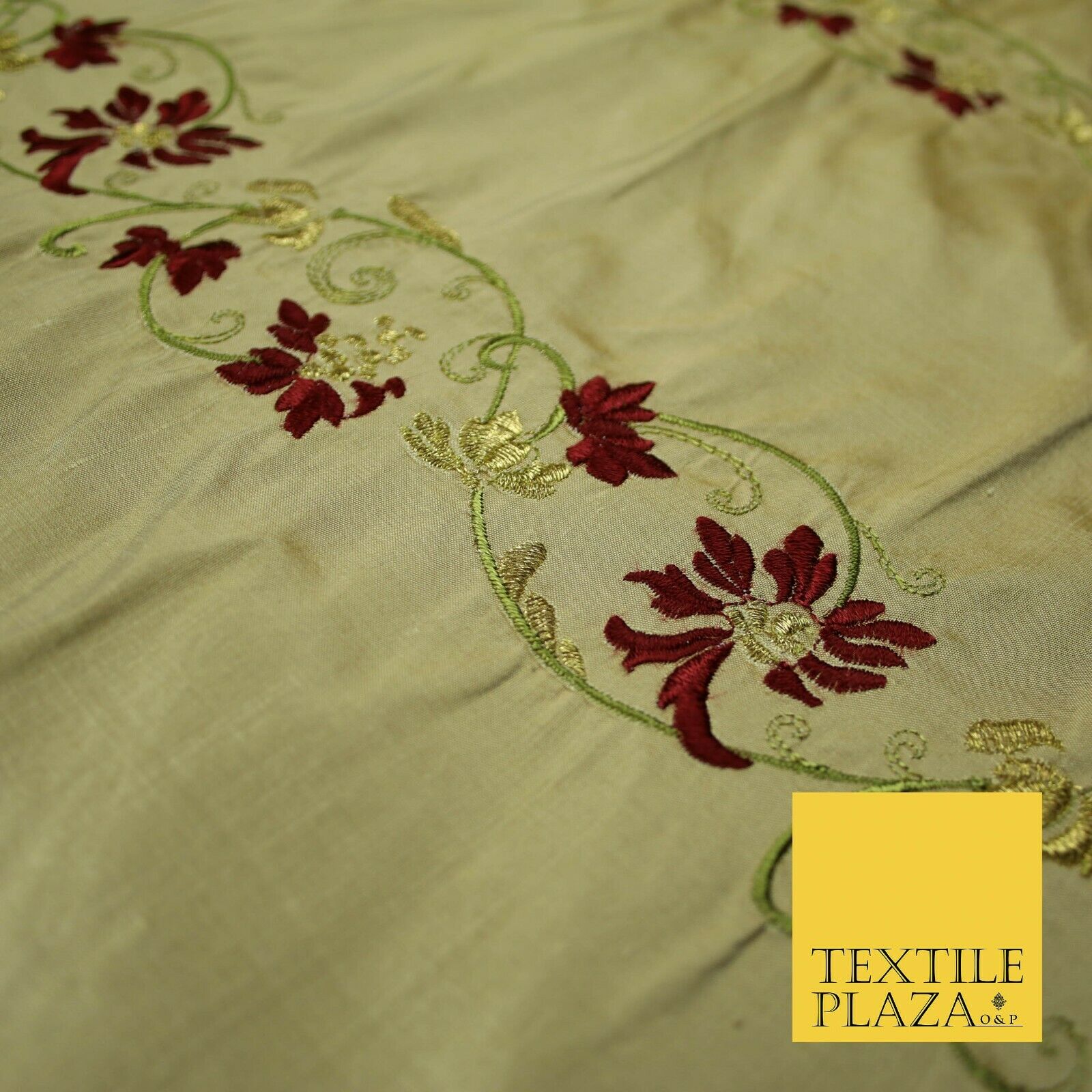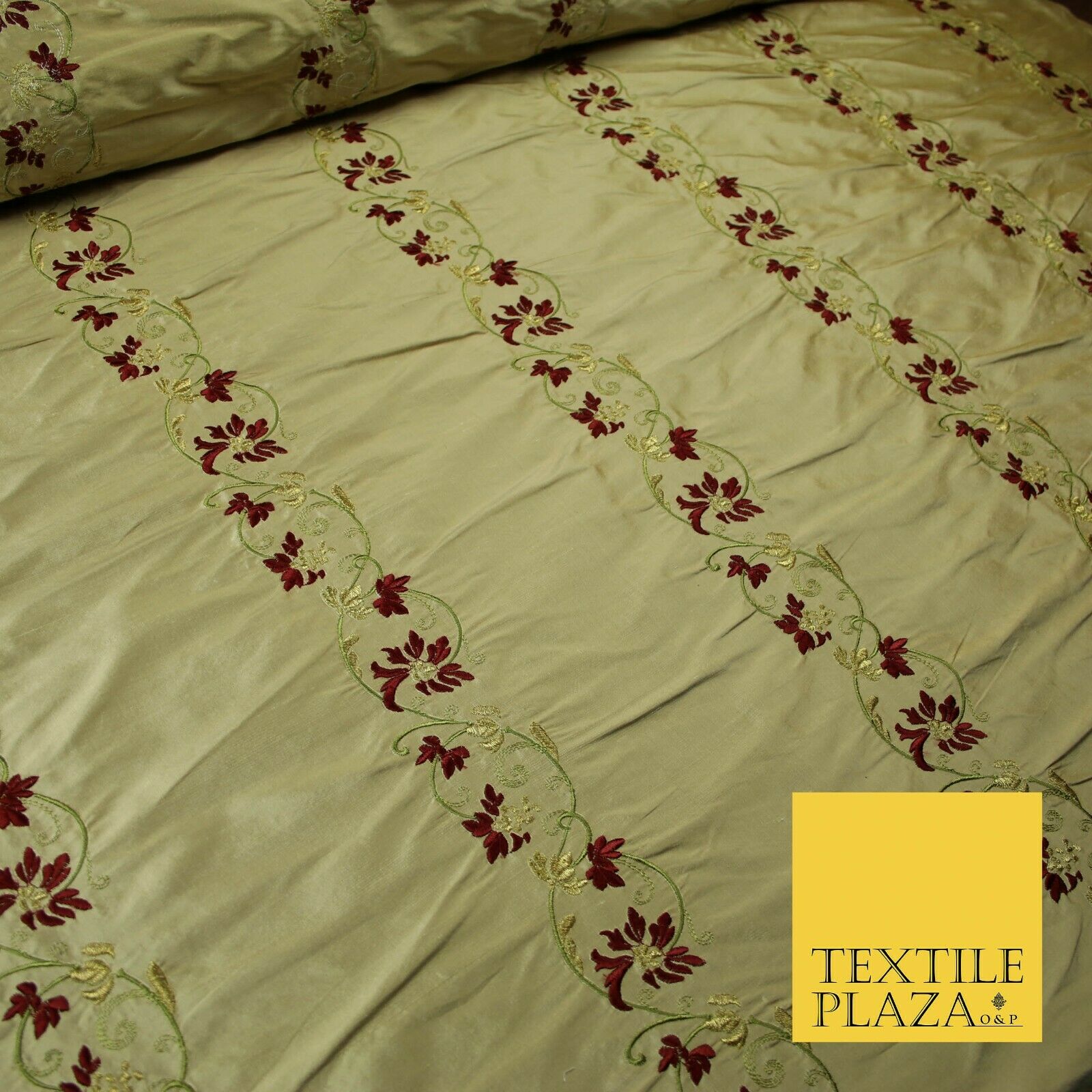 Luxury Cinnamon Gold Floral Garland Border Embroidered 100% PURE SILK Fabric4562