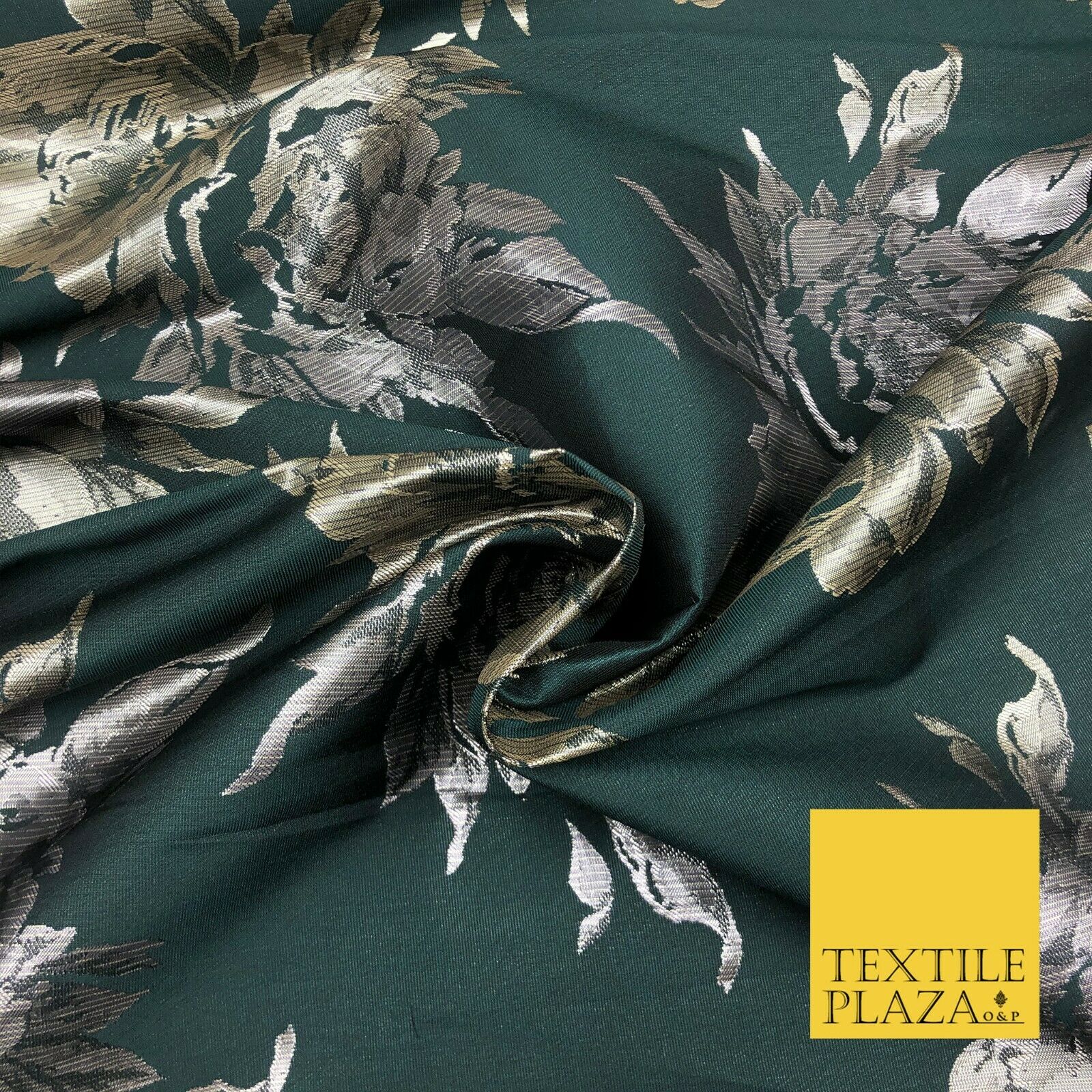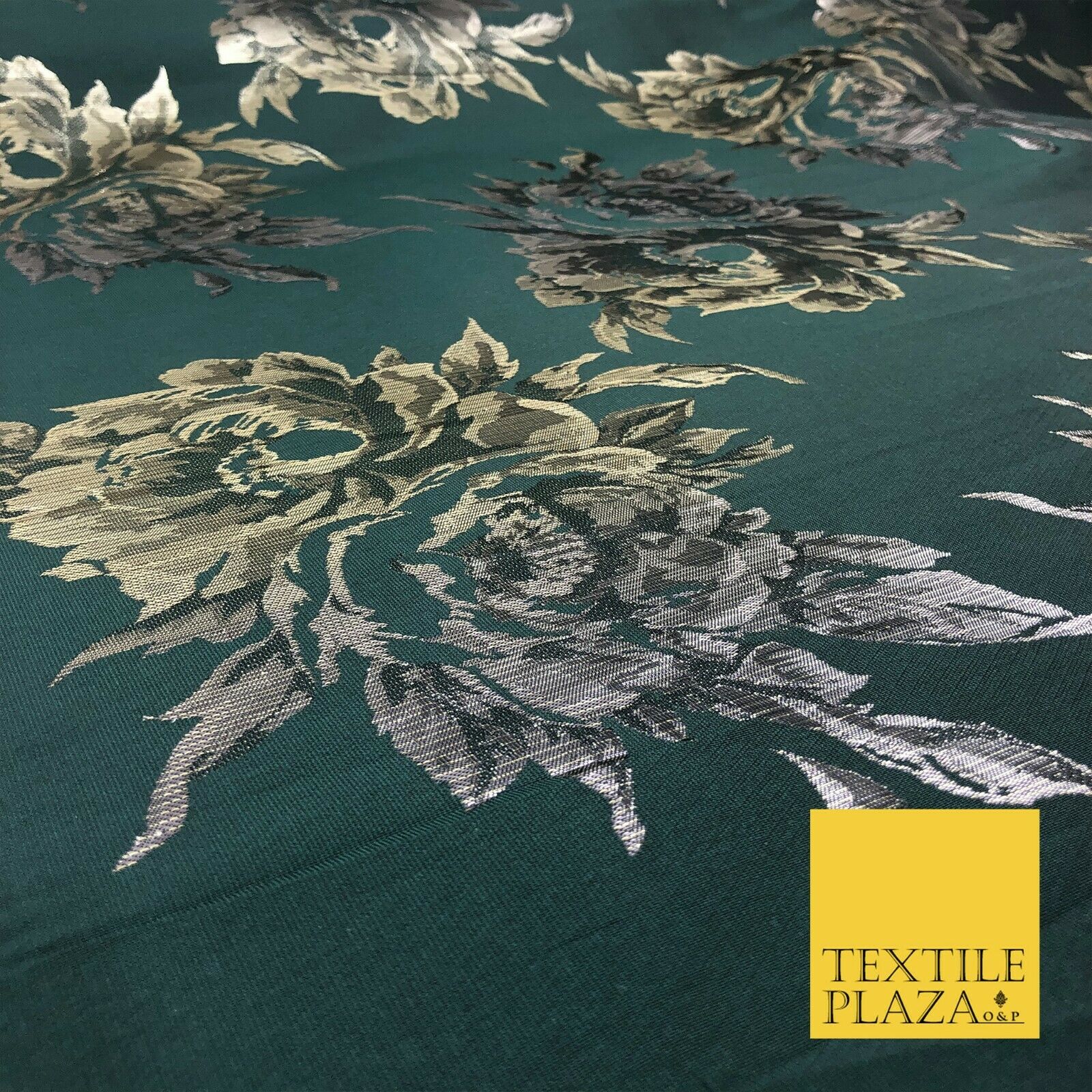 Luxury DEEP GREEN Large Floral Metallic Jacquard Fabric Waistcoats Jackets 1355