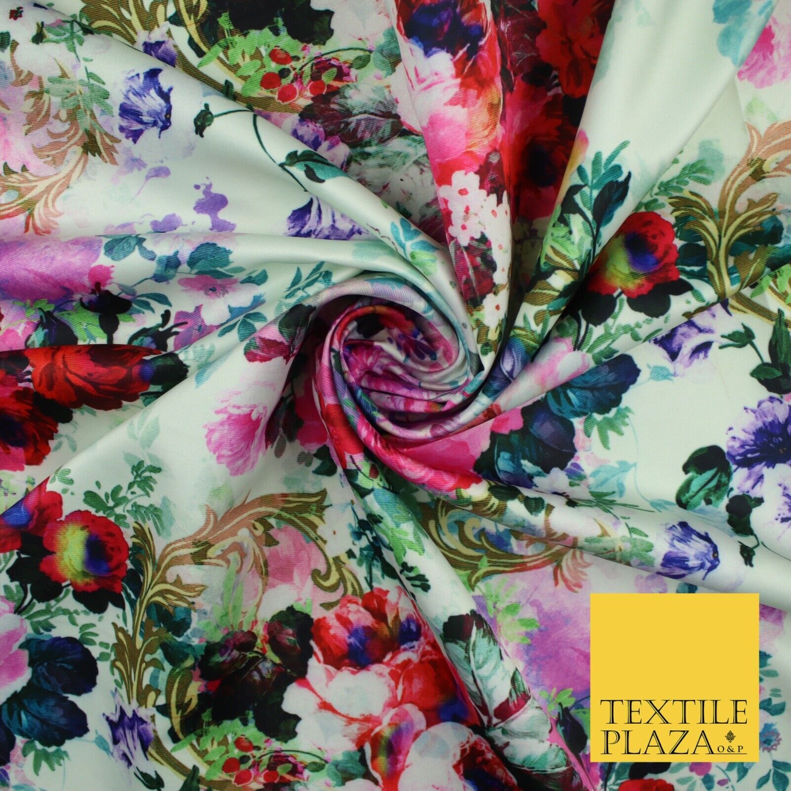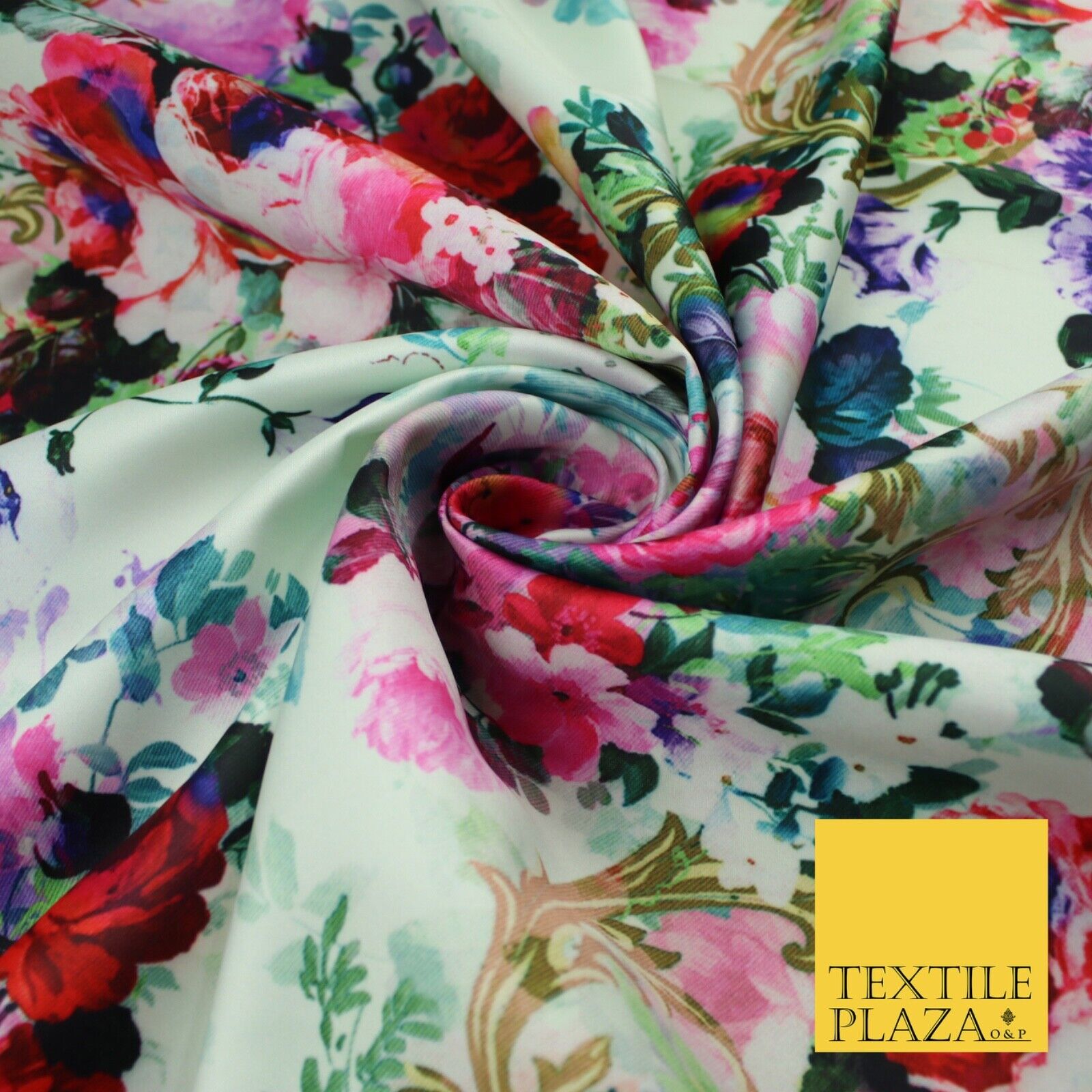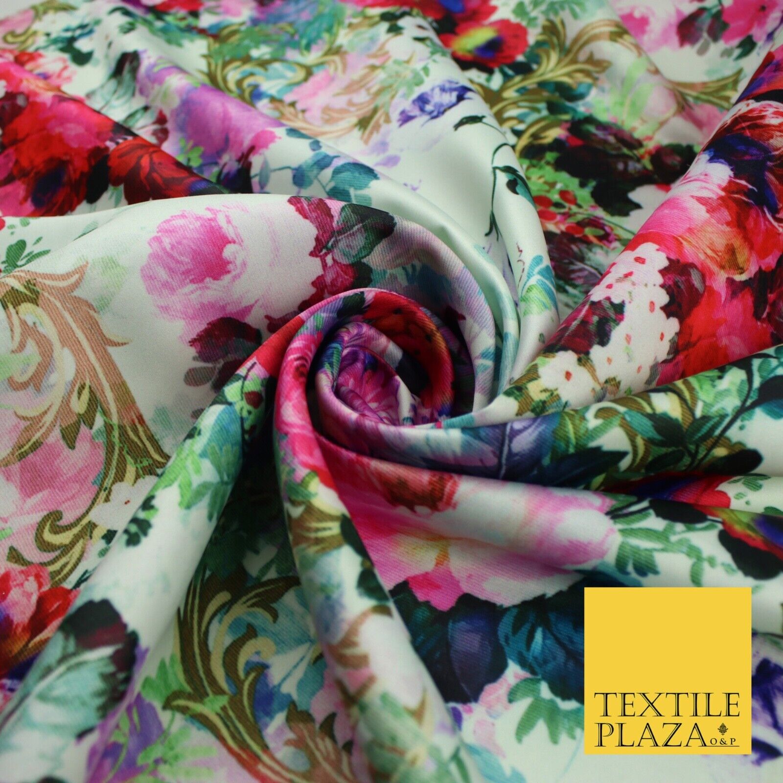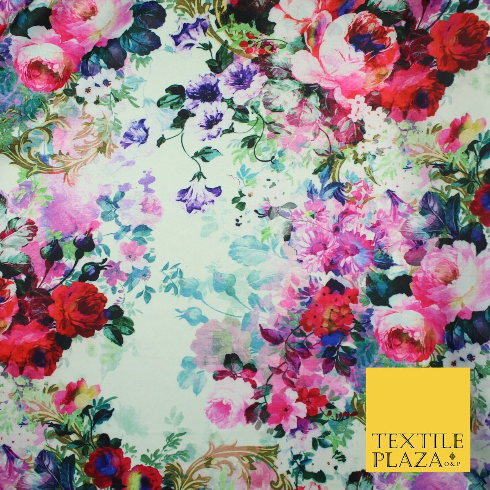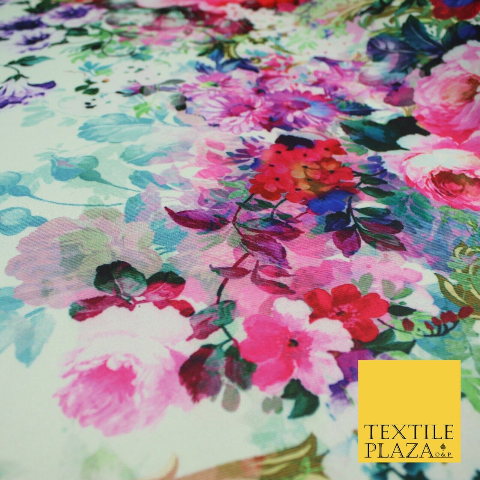 Luxury Designer Multicolour White Floral Bunches Heavy Dress Fabric 58" 9911