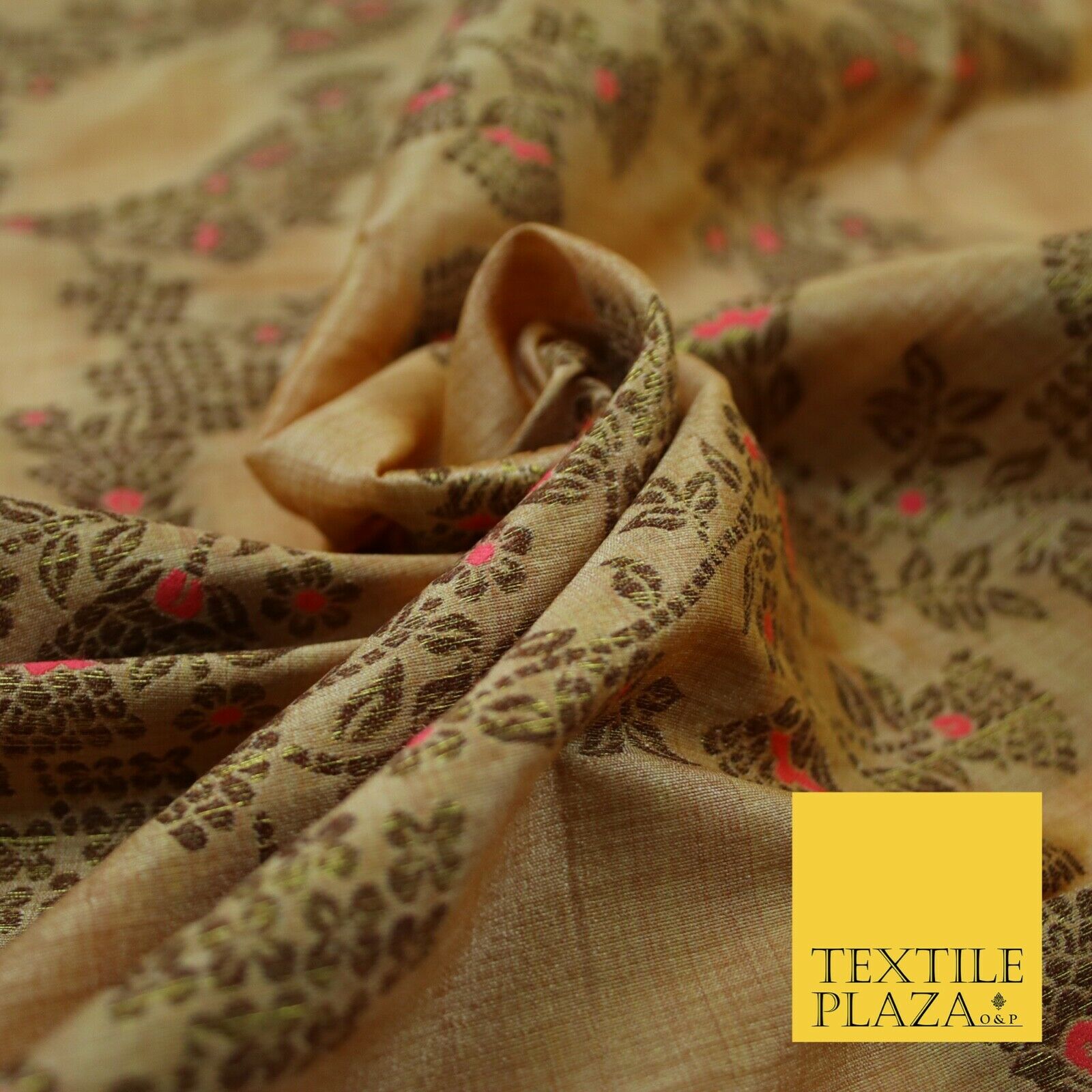 Luxury Floral Benarsi Brocade Woven Fine Dress Indian Faux Raw Silk Fancy Fabric