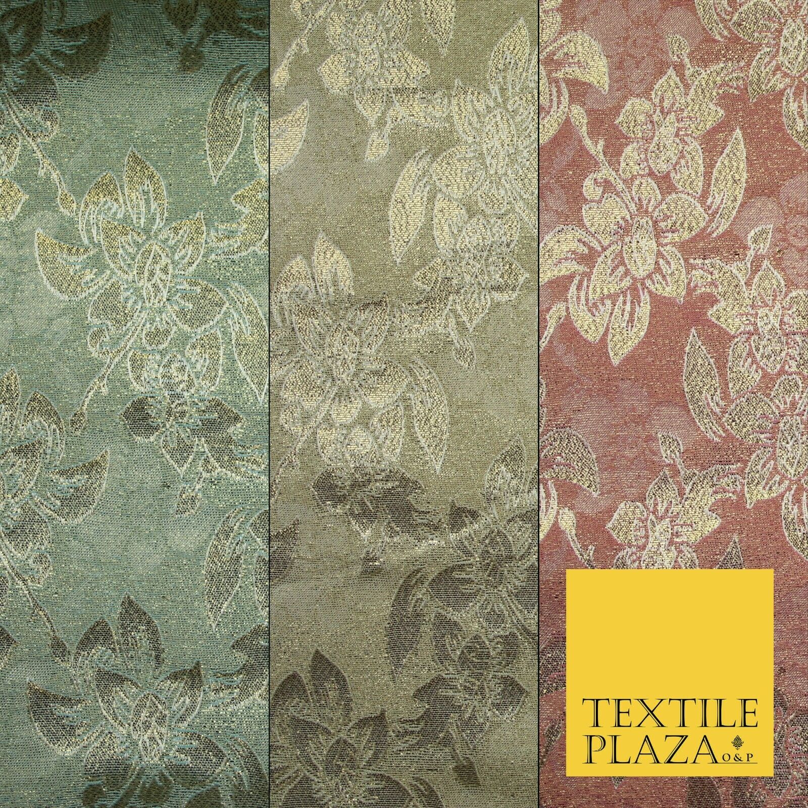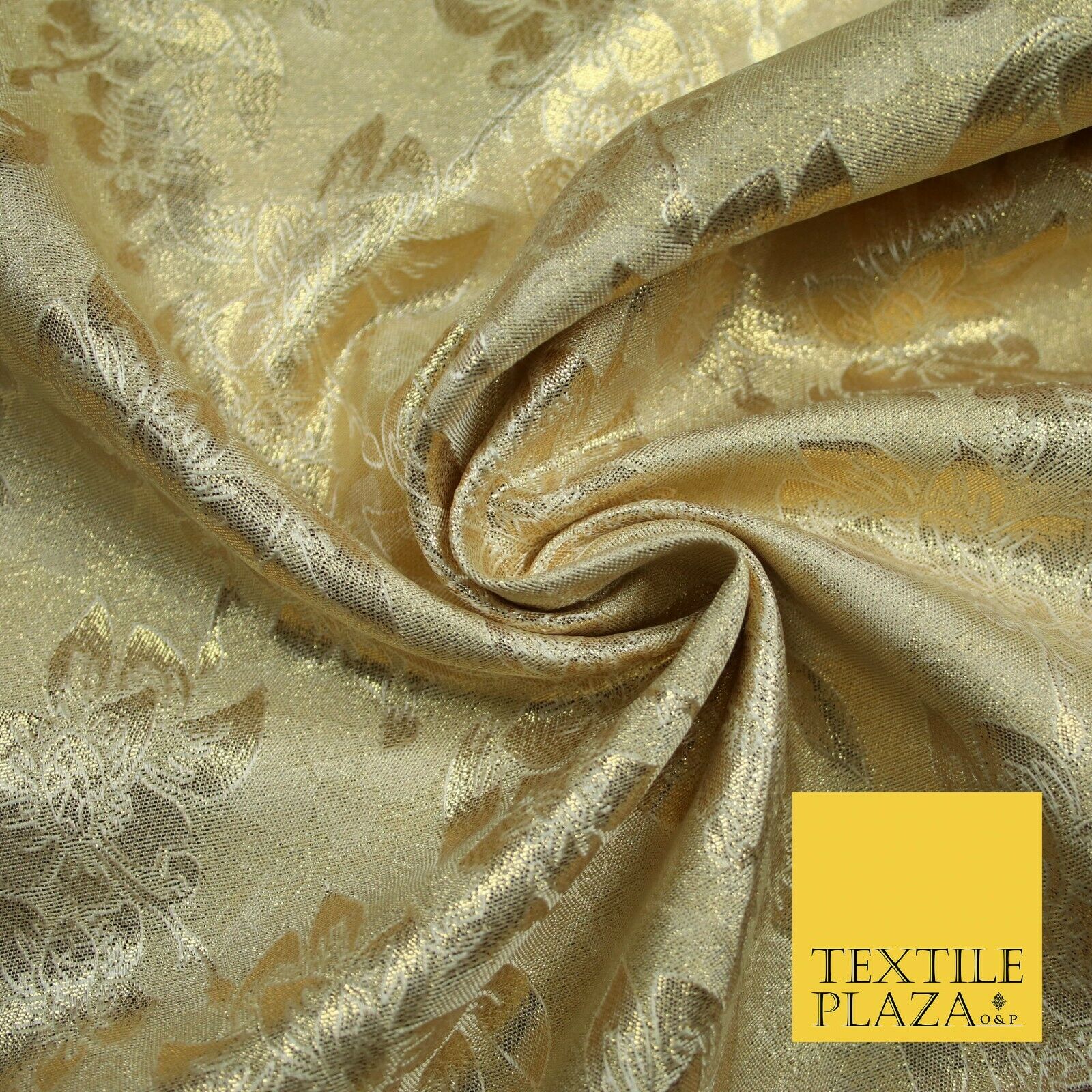 Luxury Floral Flower Mix Metallic Gold Brocade Dress Fabric 56" Wide 3 Colours
