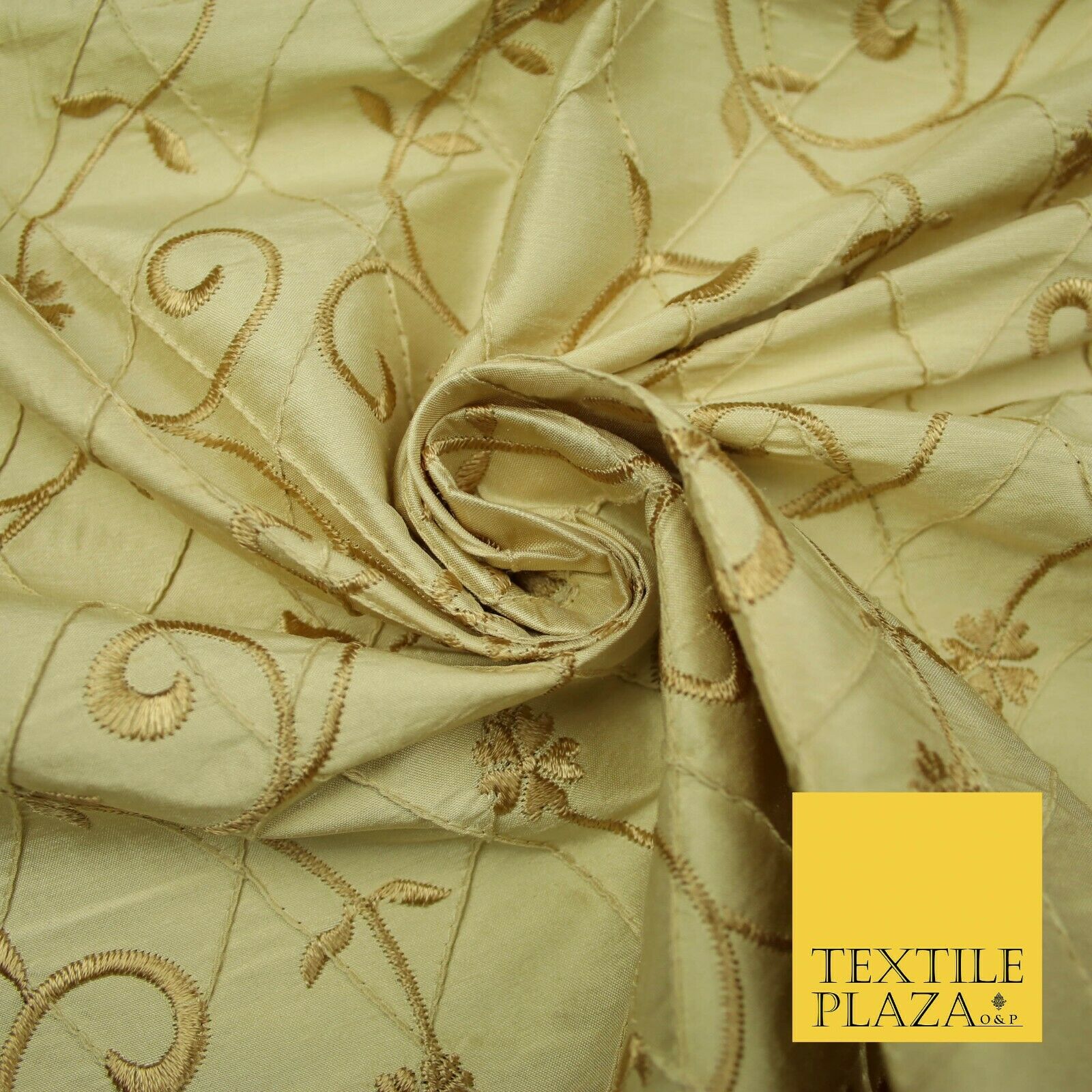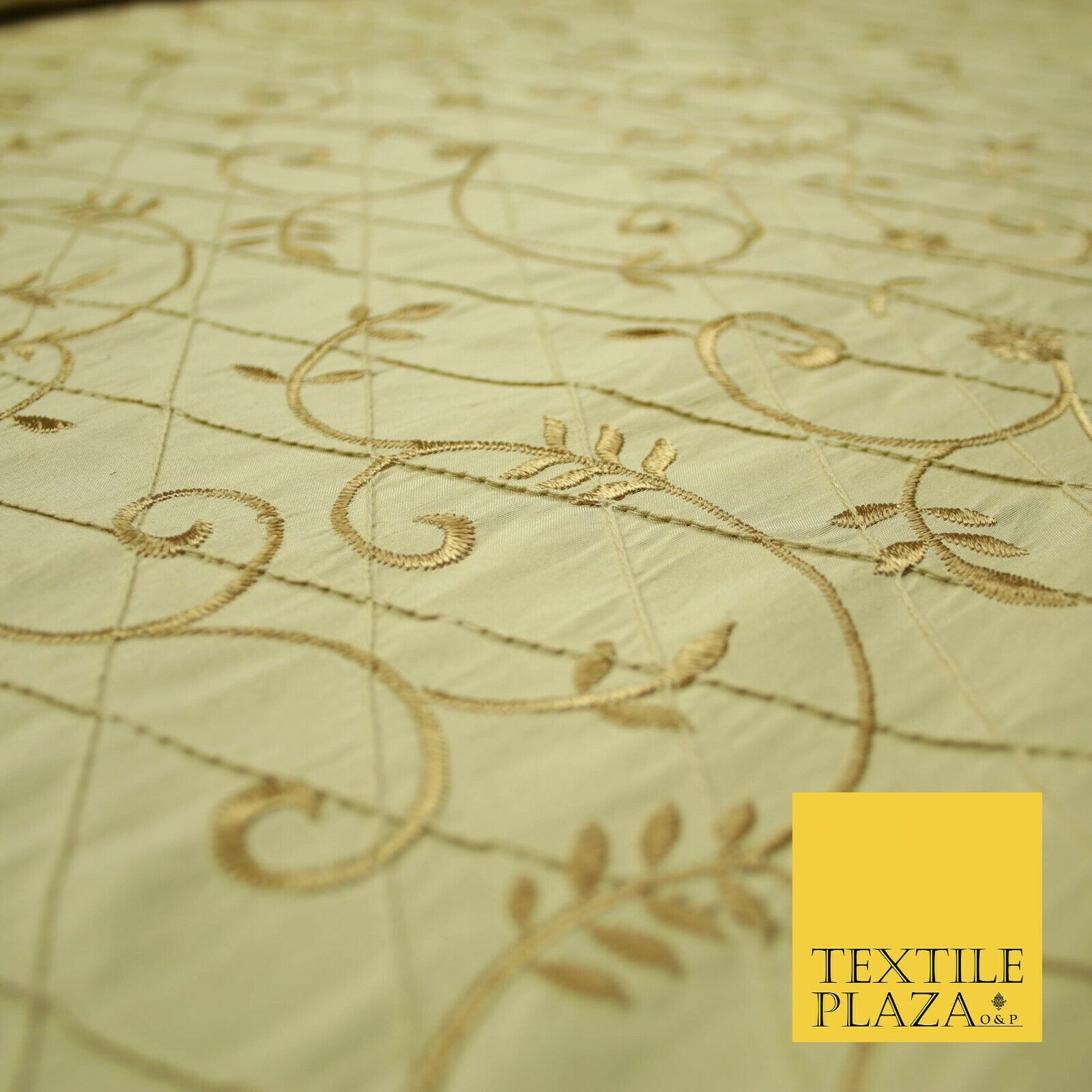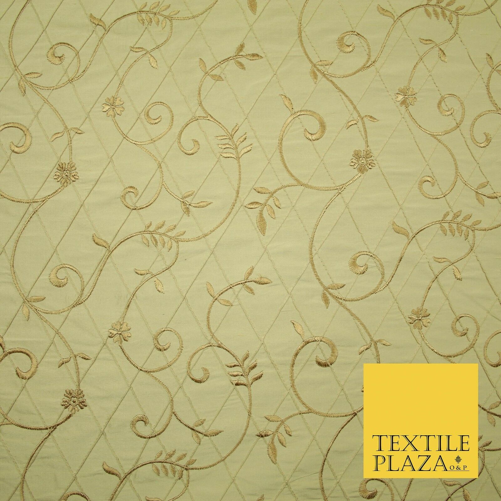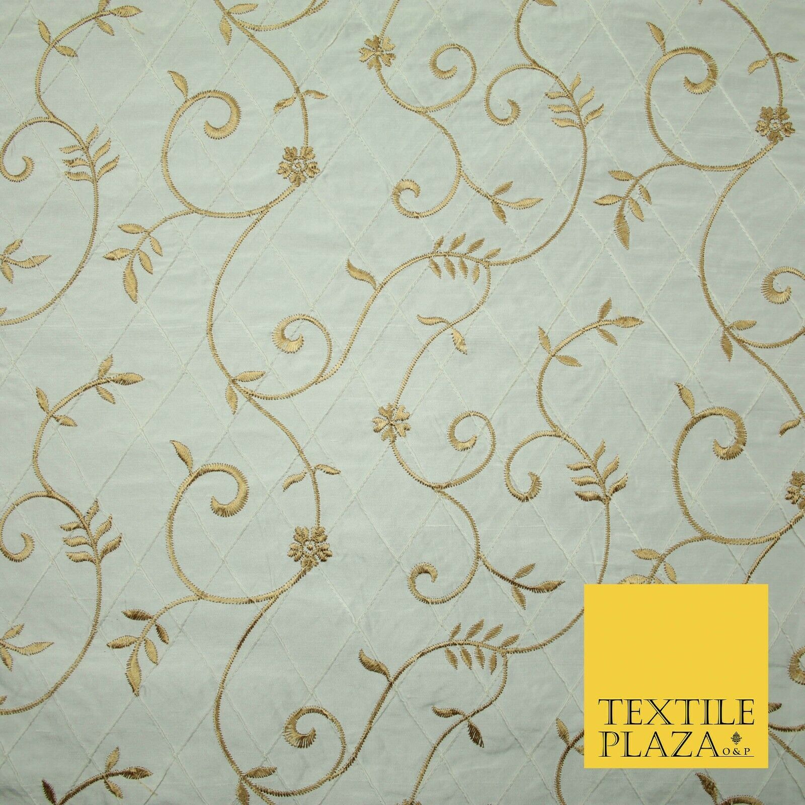 Luxury Floral Stem Embroidered Pintuck 100% PURE SILK Fabric Cushion Furnishing