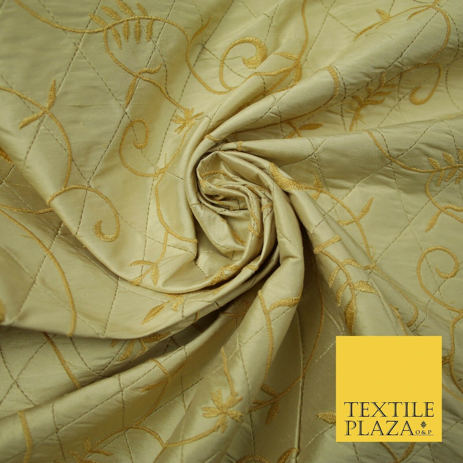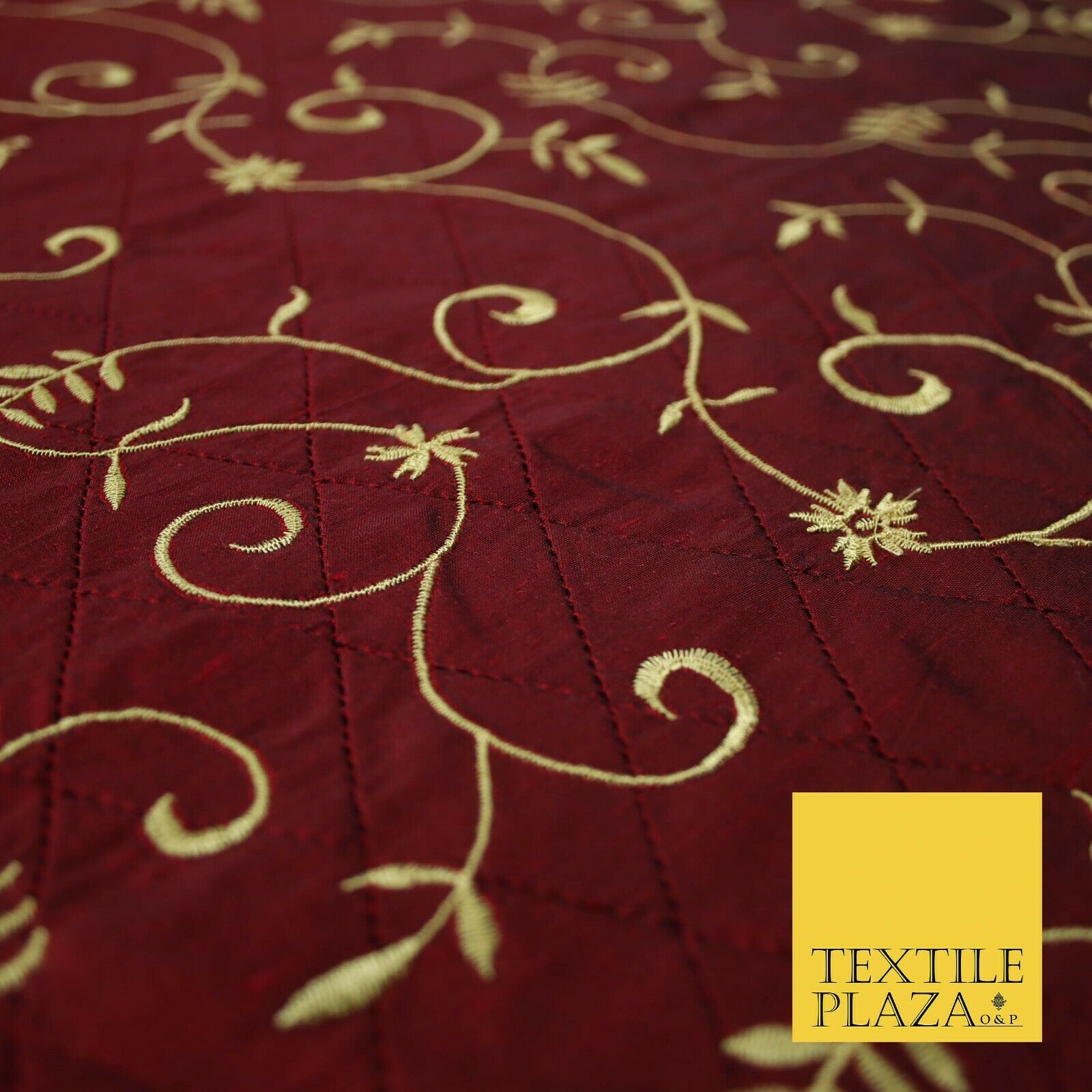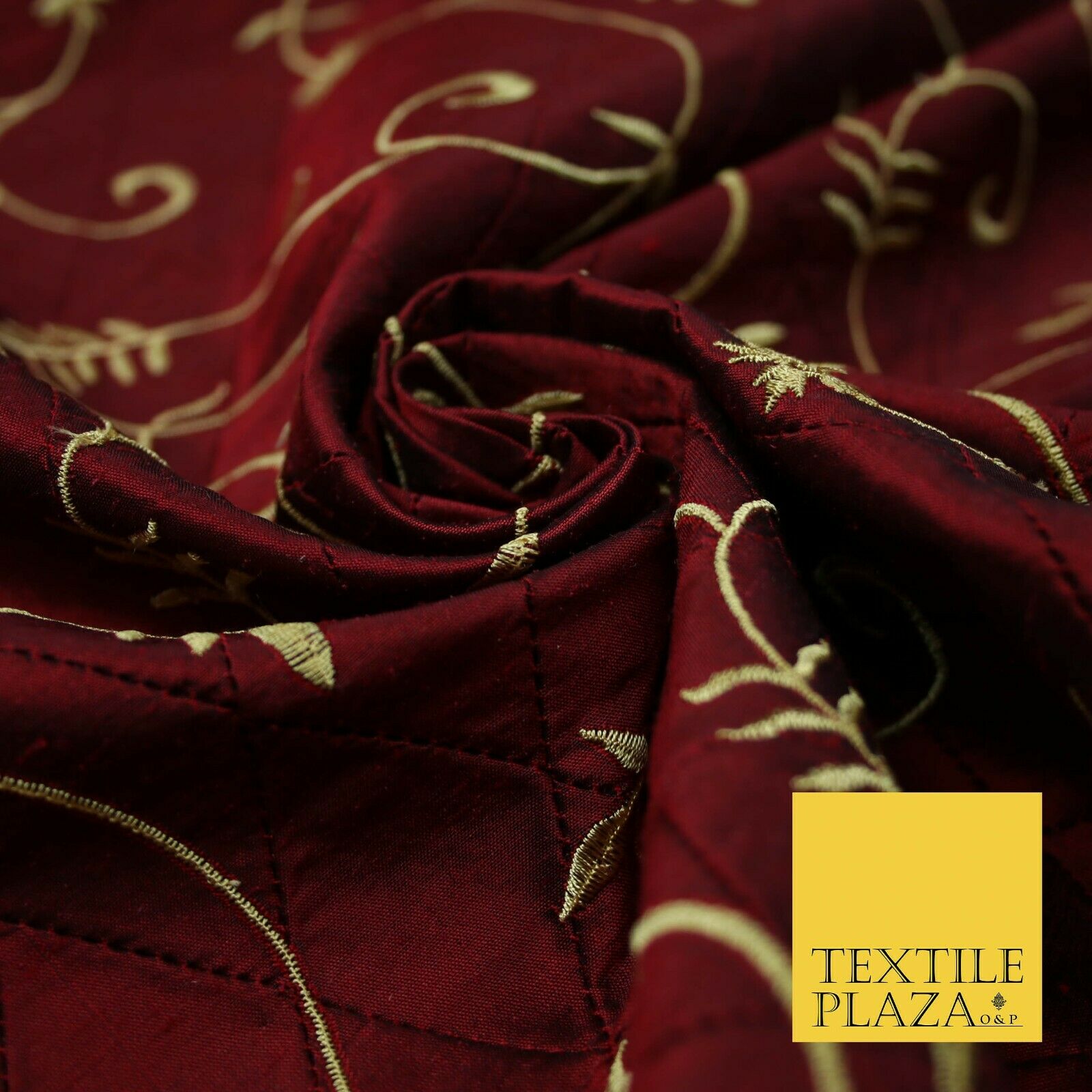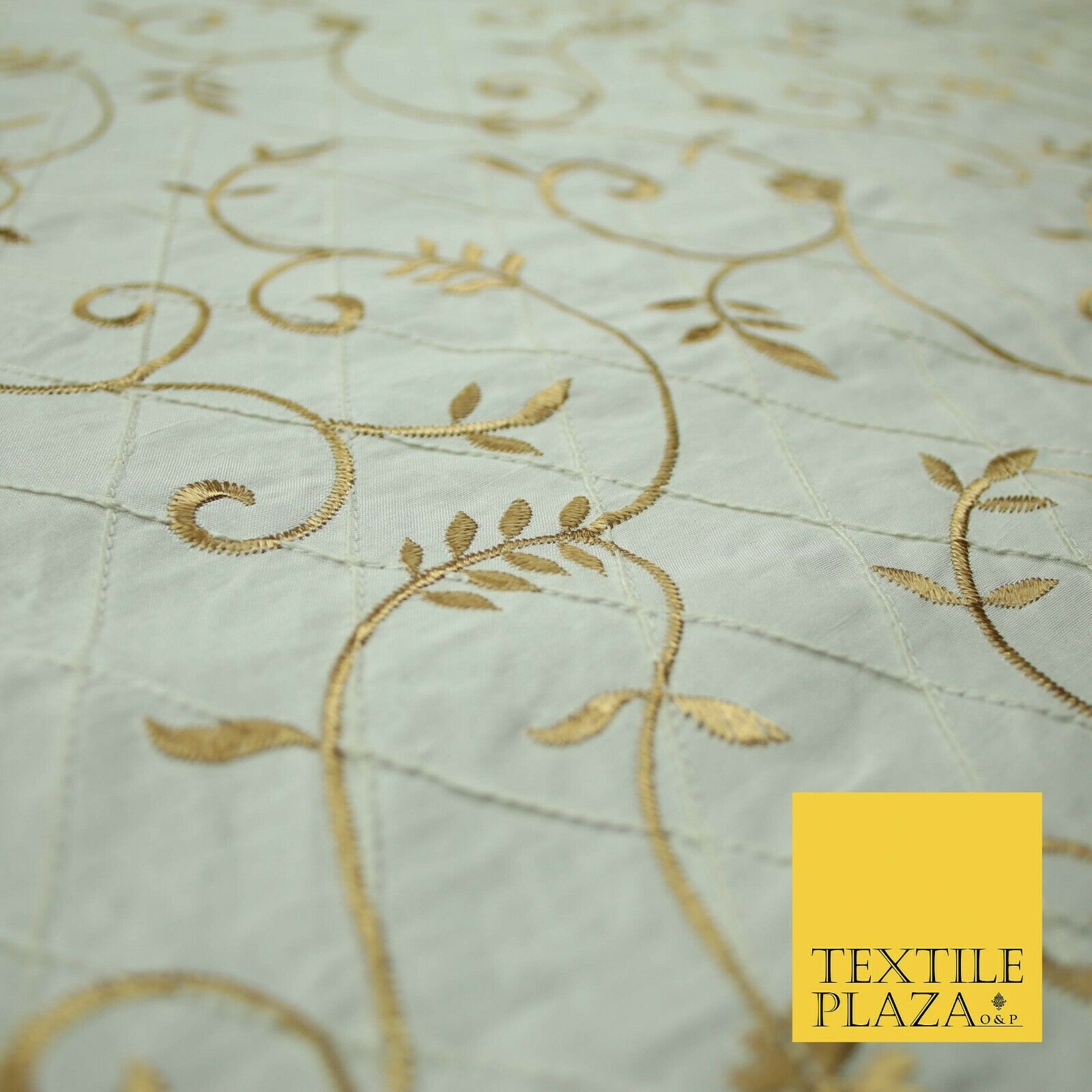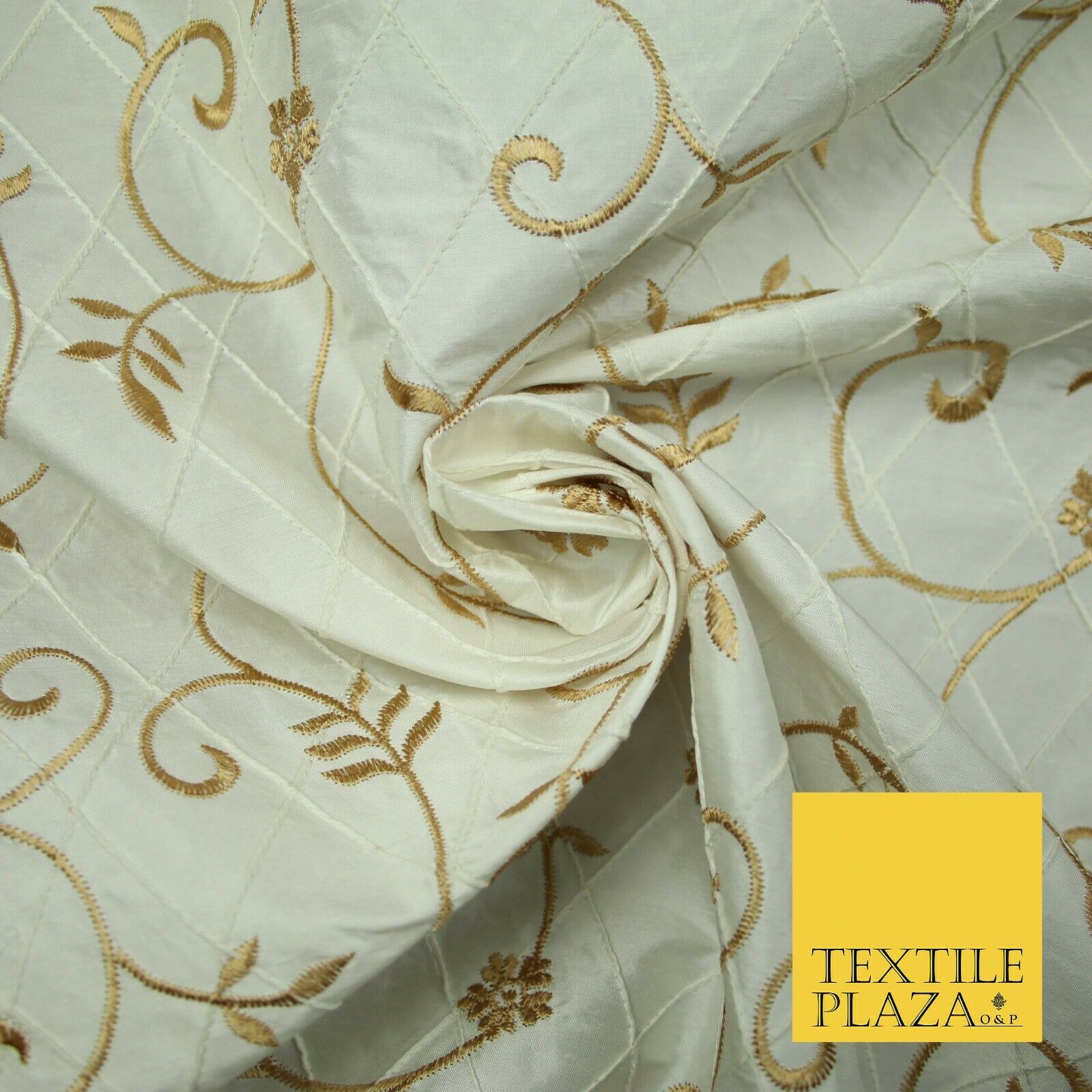 Luxury Floral Stem Embroidered Pintuck 100% PURE SILK Fabric Cushion Furnishing