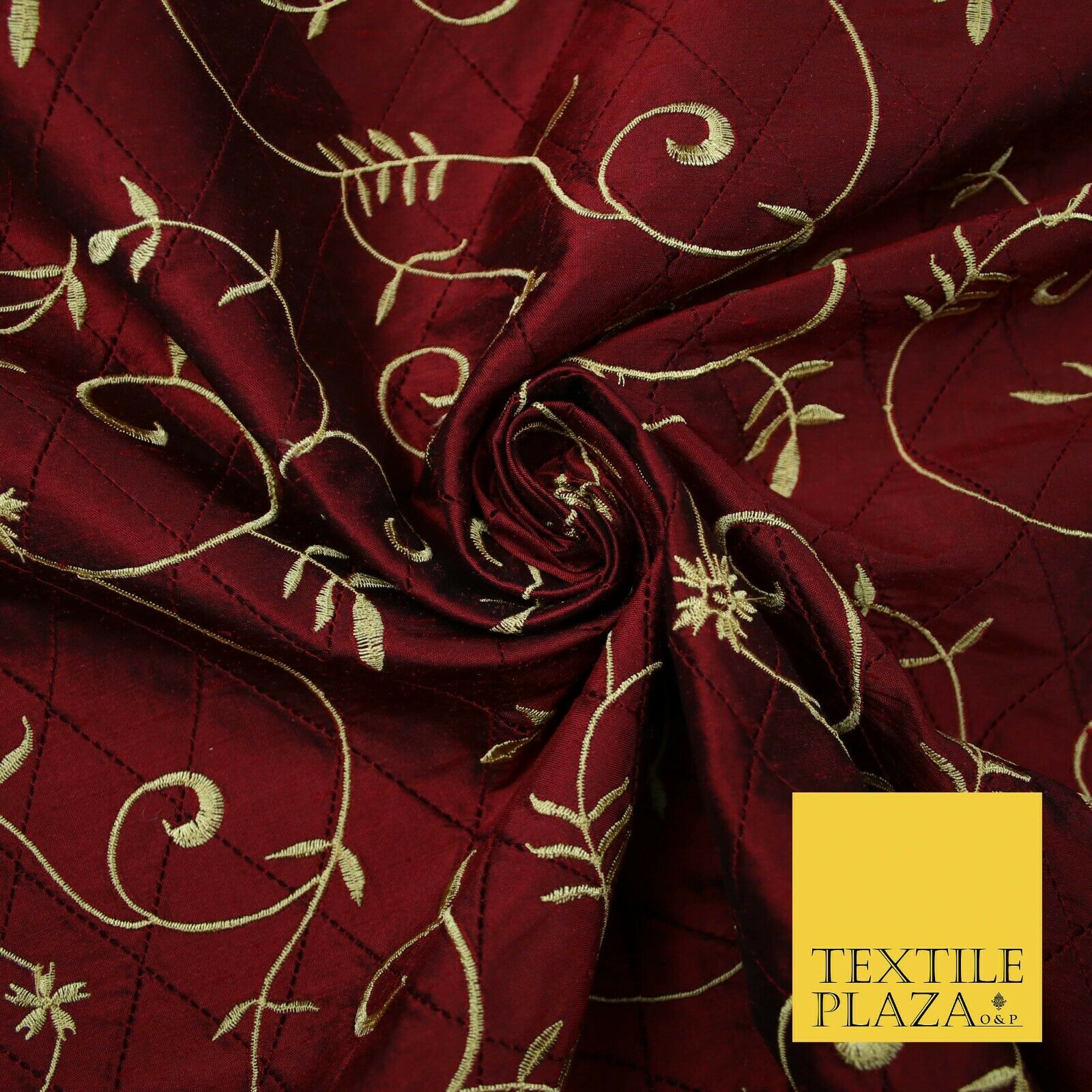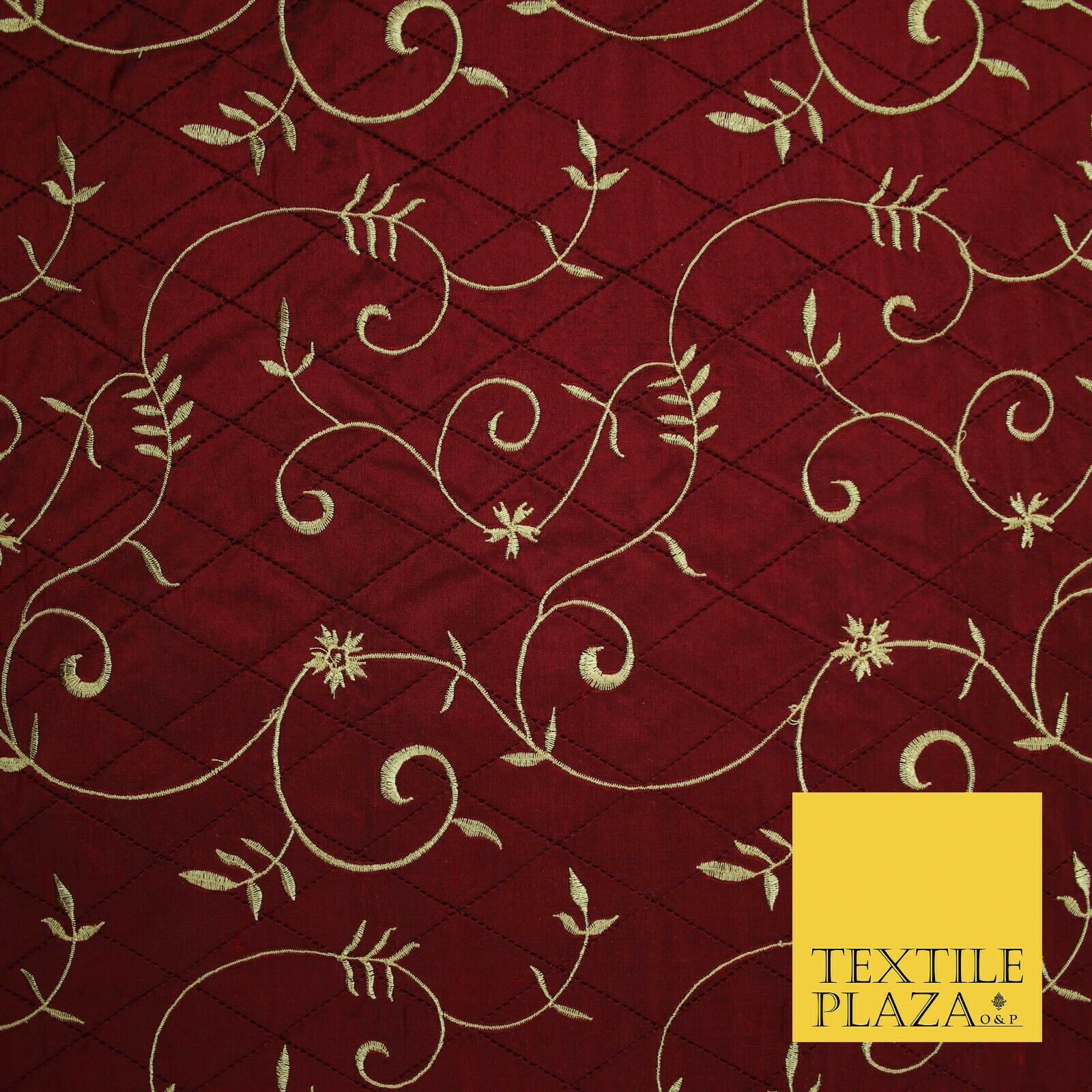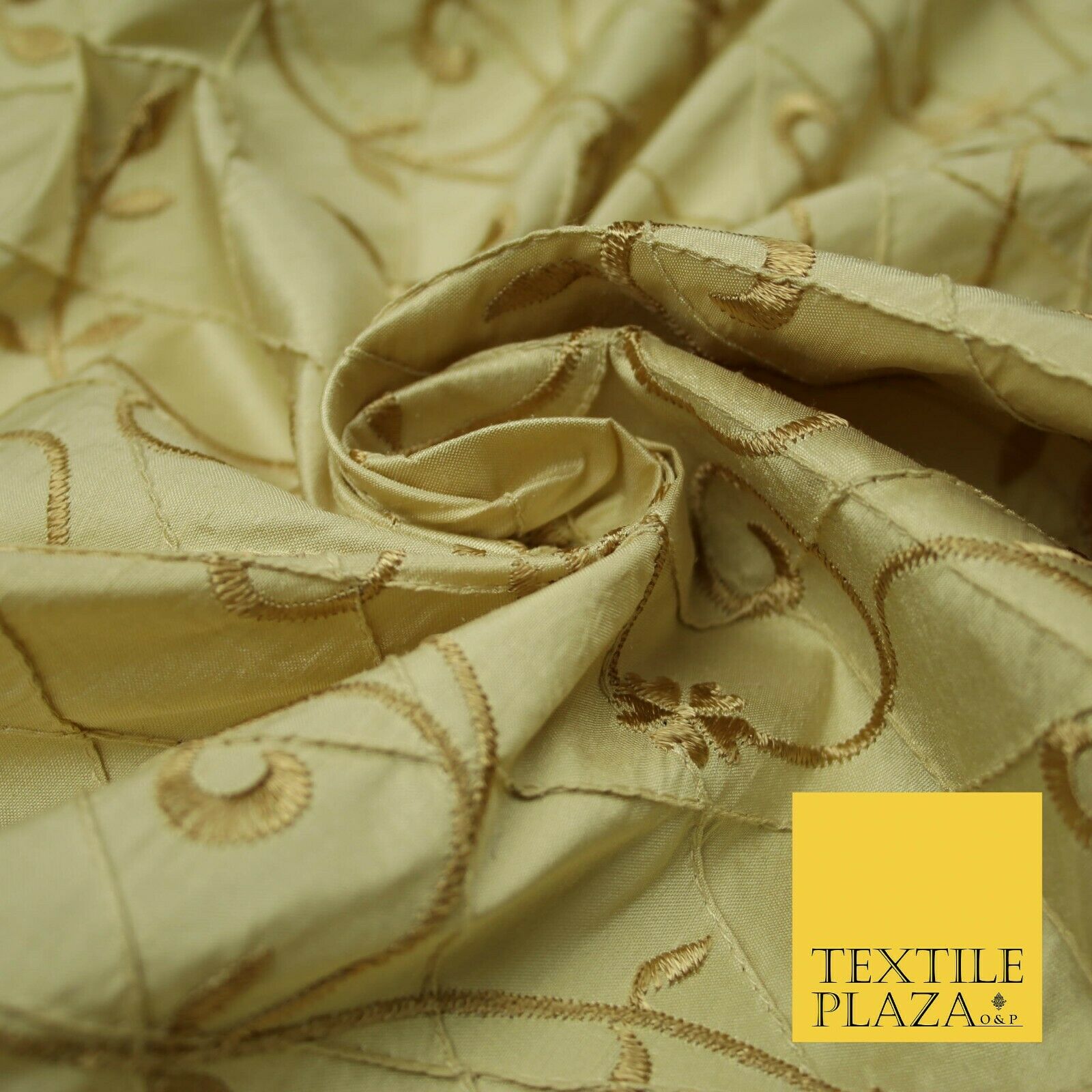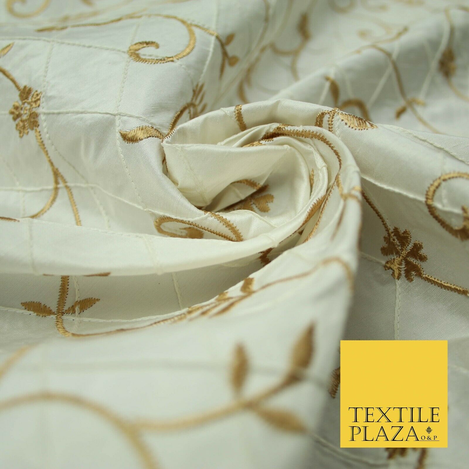 Luxury Floral Stem Embroidered Pintuck 100% PURE SILK Fabric Cushion Furnishing