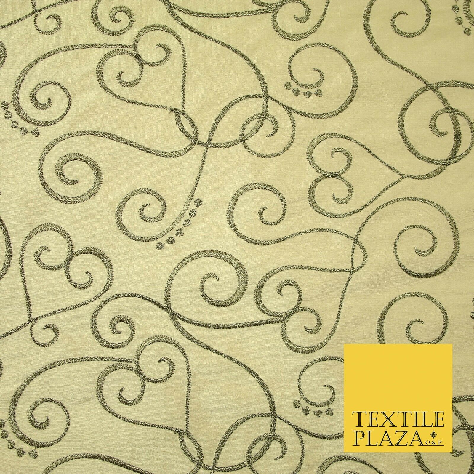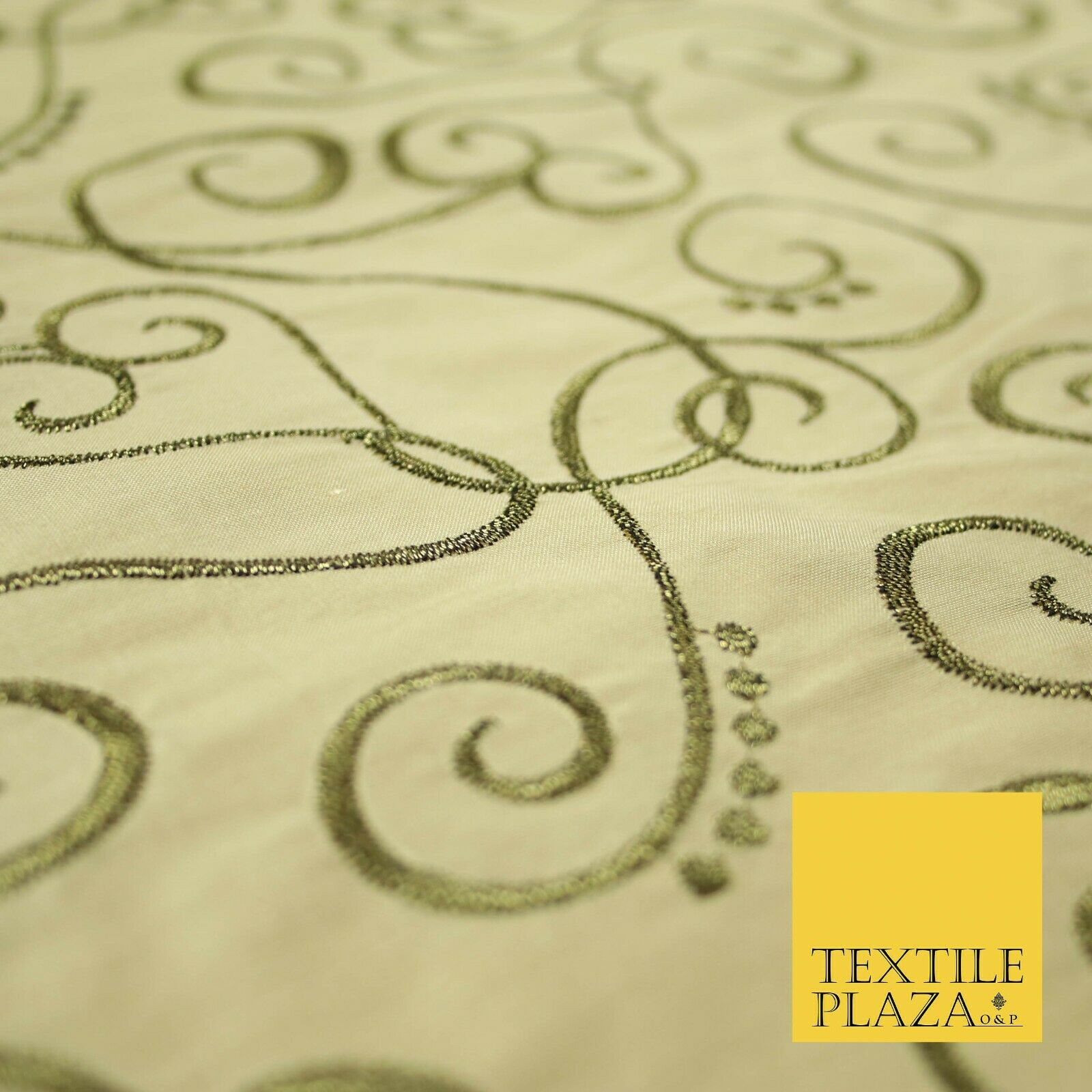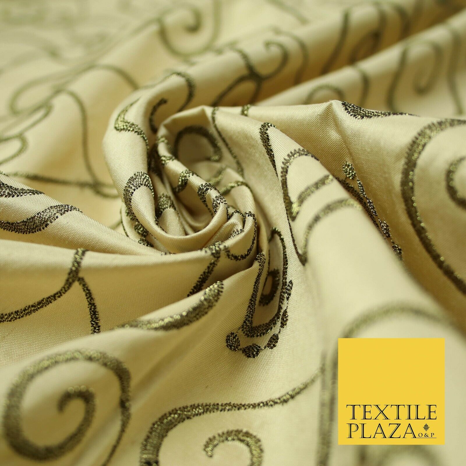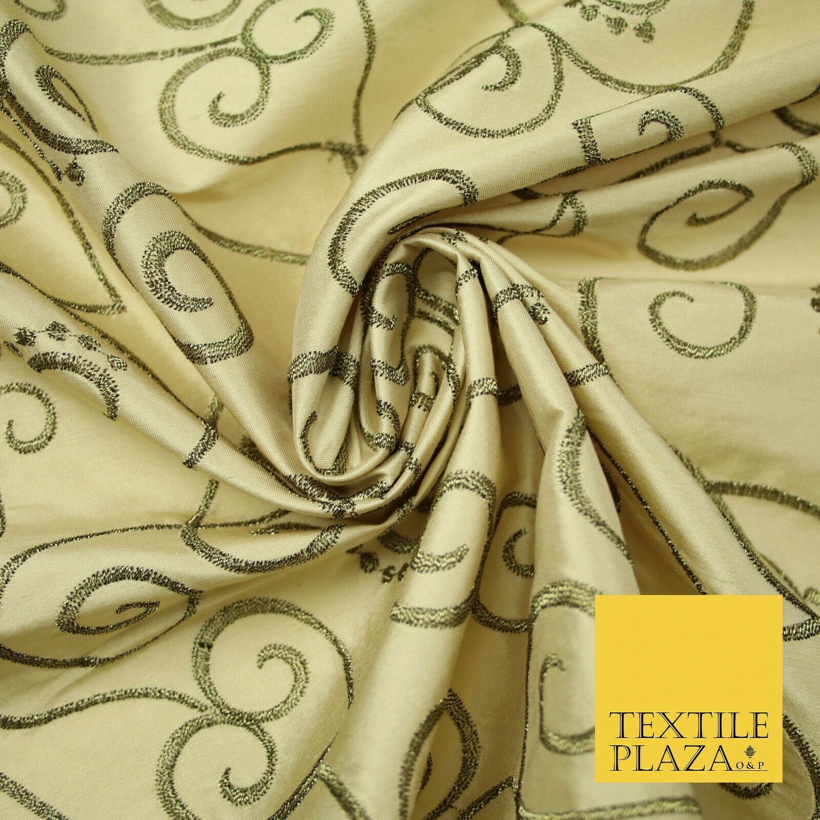 Luxury GOLD Ornate Swirl Hearts Embroidered 100% PURE SILK Fabric Furnishing4536