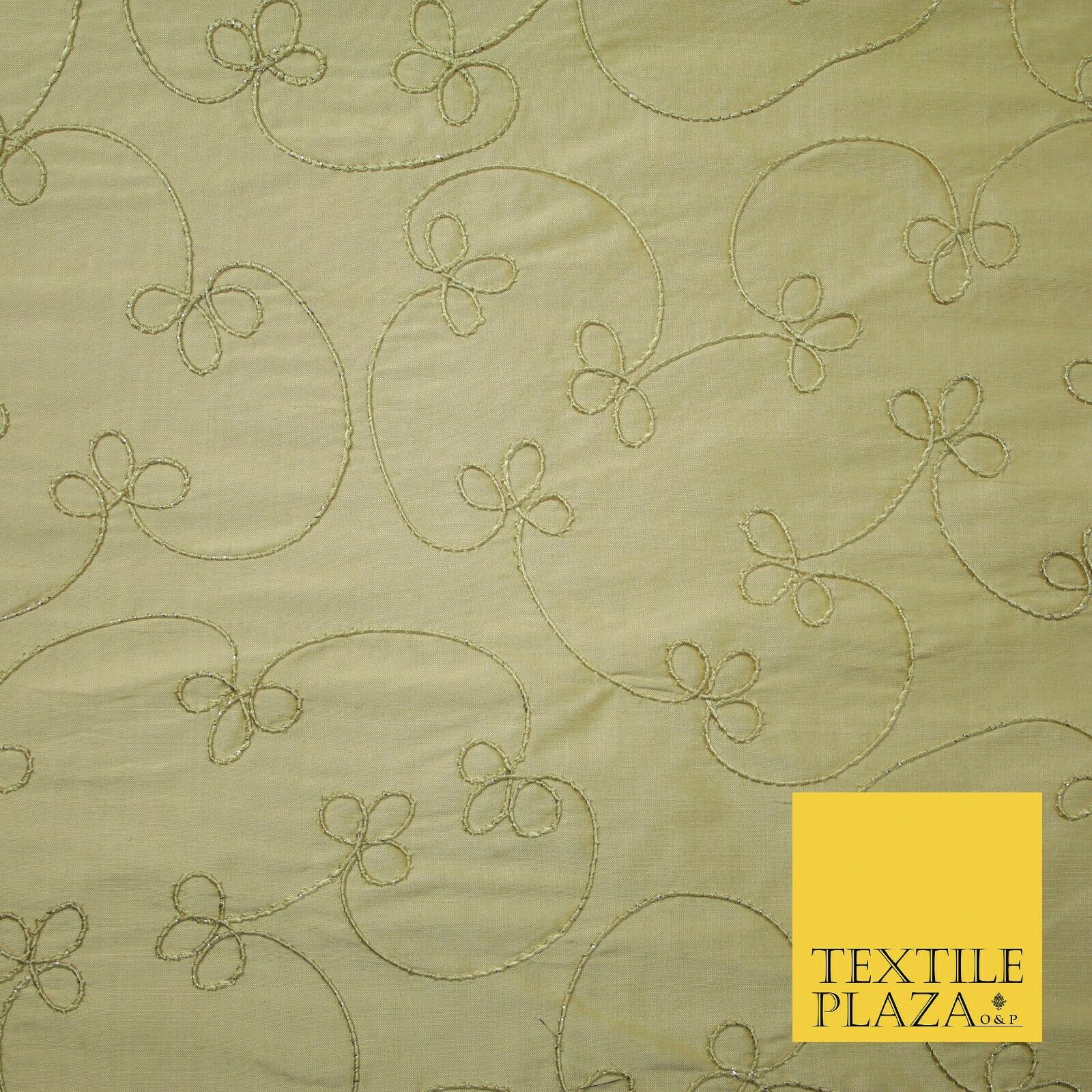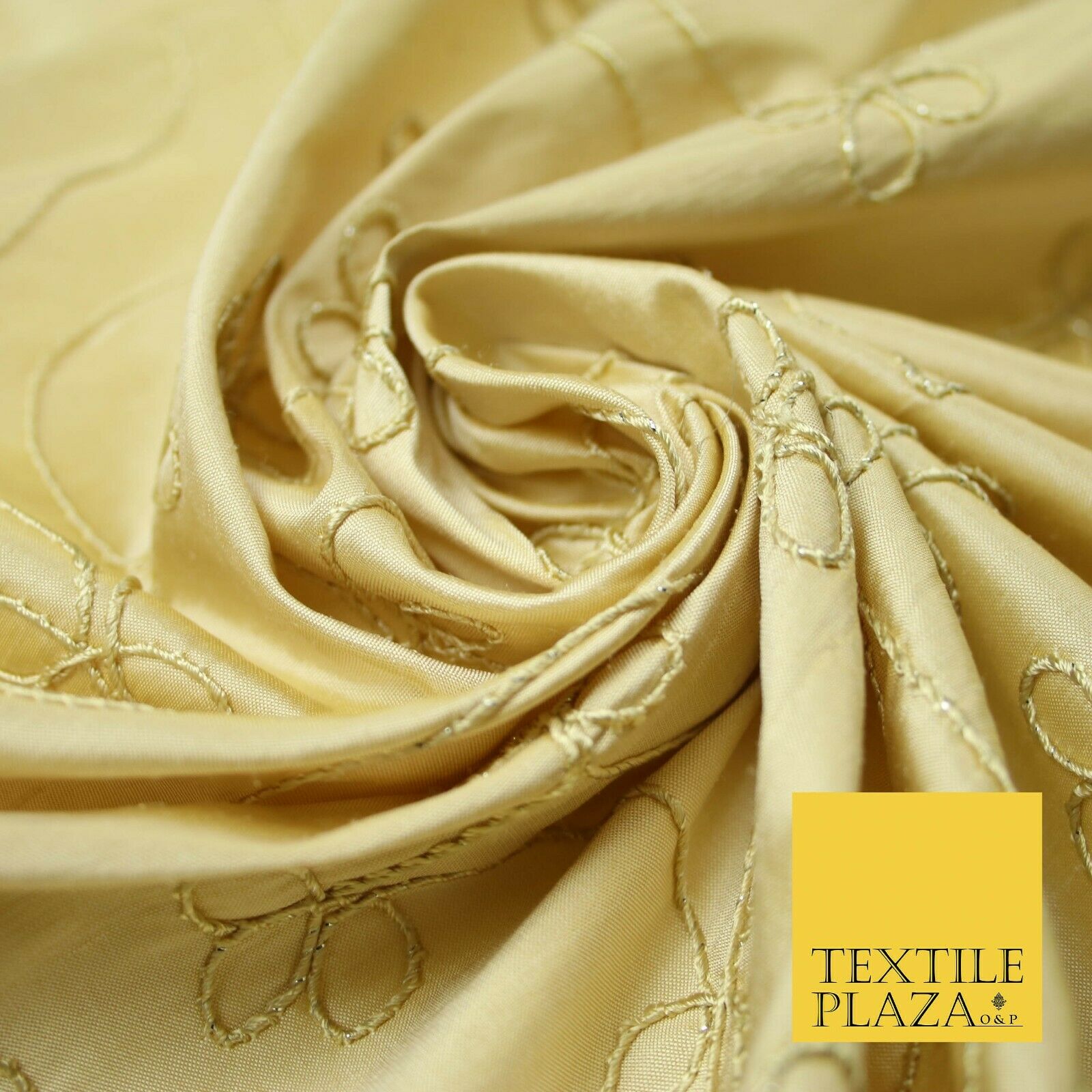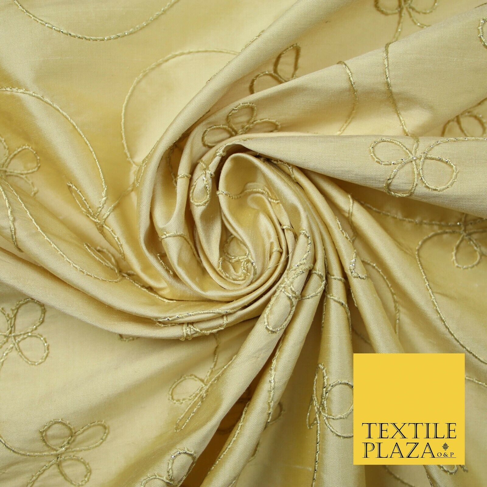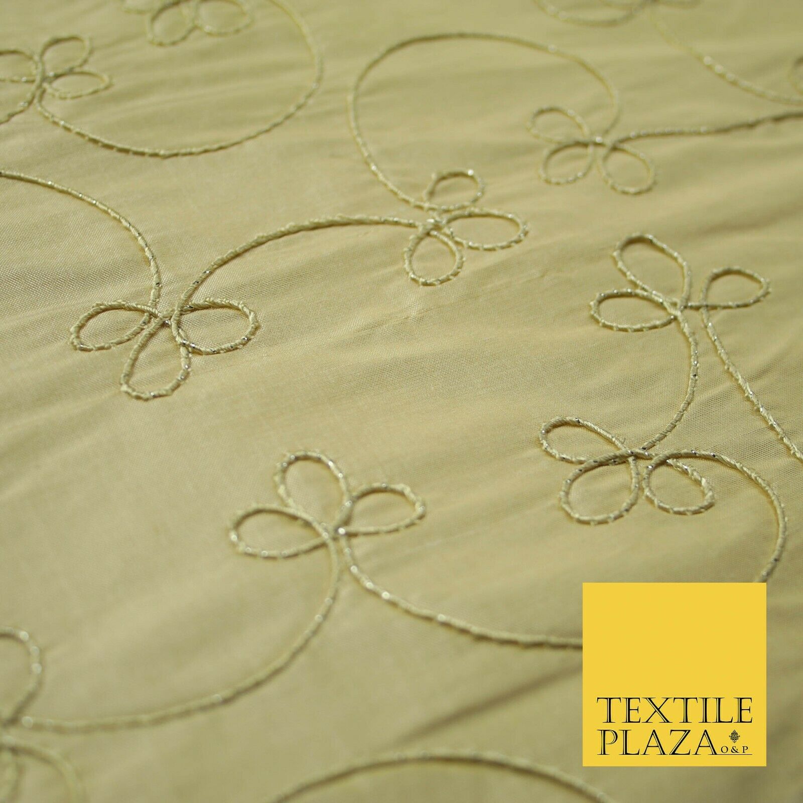 Luxury HONEY GOLD Corded Floral Vine Embroidered 100% PURE SILK Fabric 48" 4537