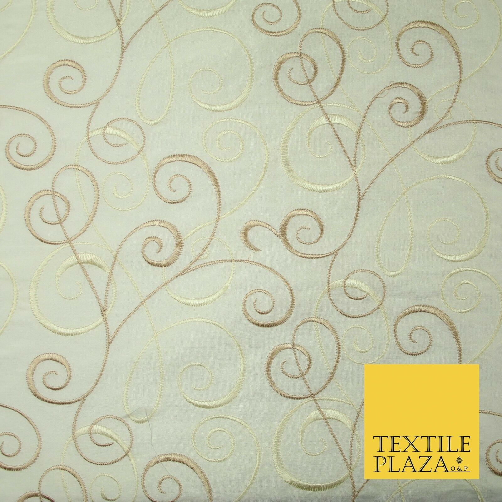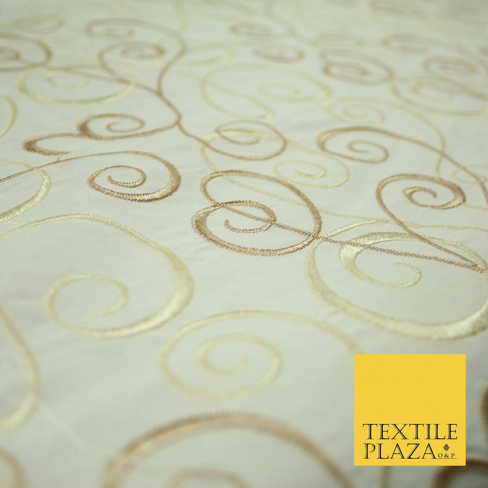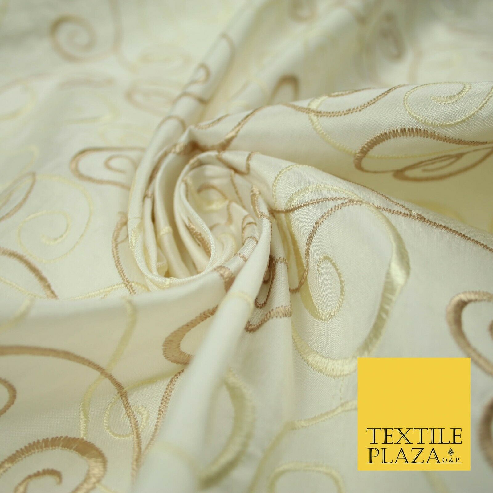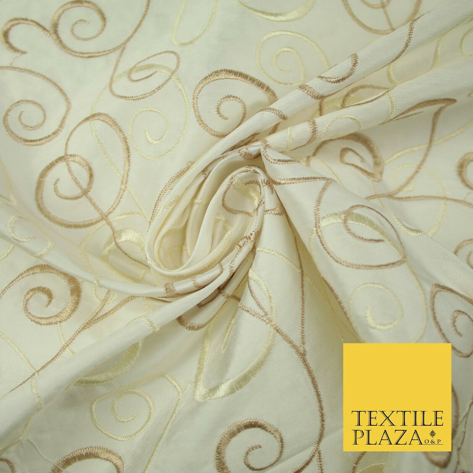 Luxury IVORY CREAM Ornamental Swirls Embroidered 100% PURE SILK Fabric 44" 4505