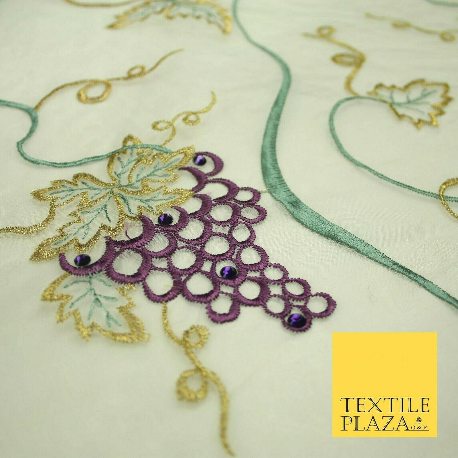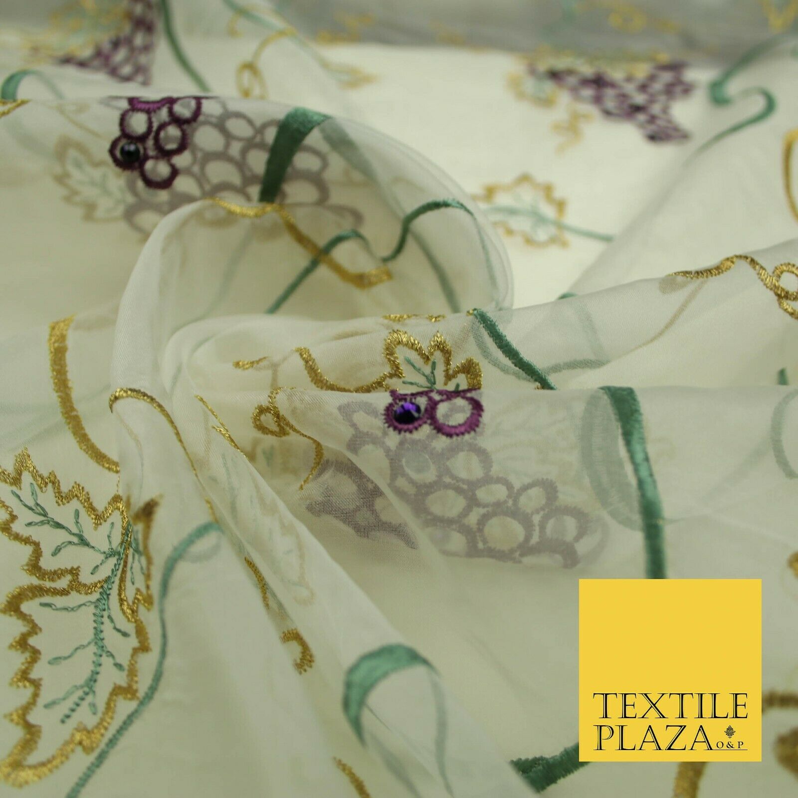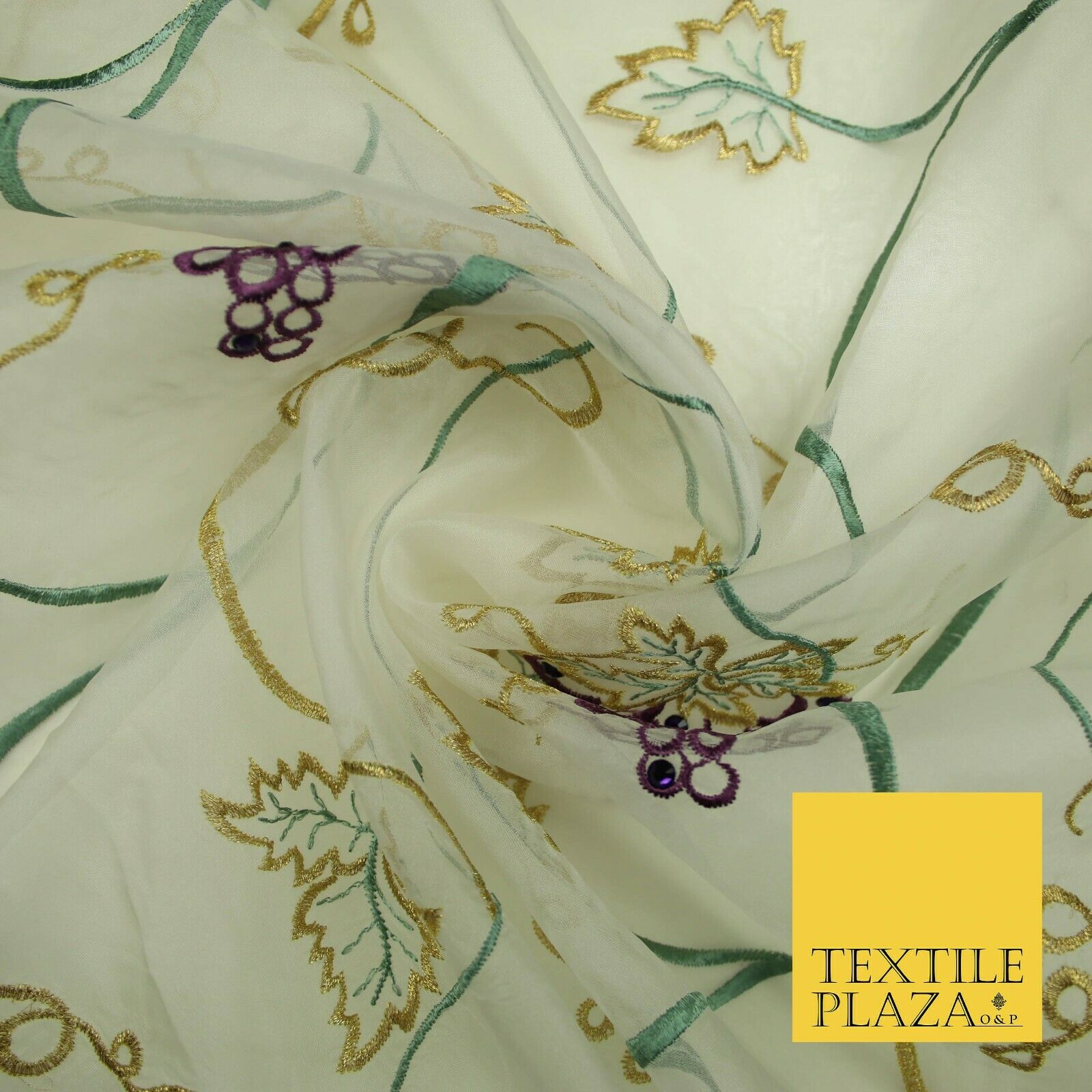 Luxury Ivory Floral Grapevine Stem Embroidered 100% SILK ORGANZA Fabric 45" 4631