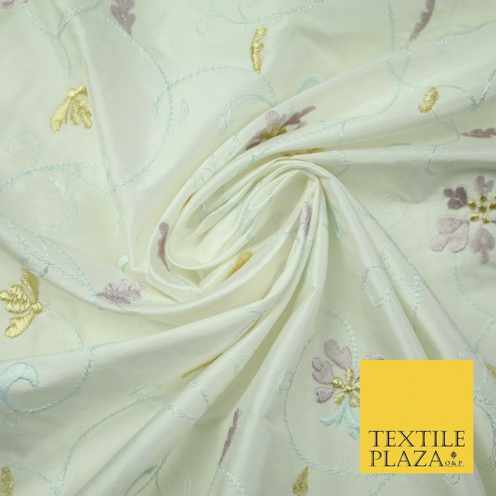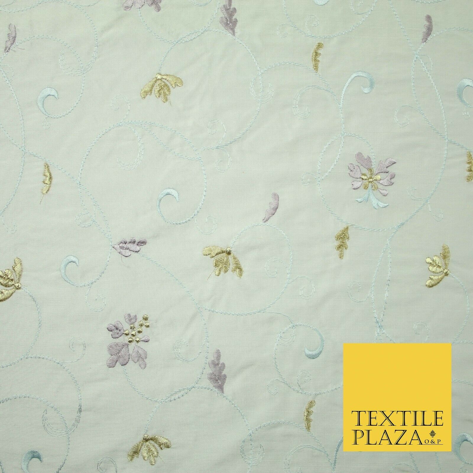 Luxury IVORY Floral Tropical Vine Embroidered 100% PURE SILK Fabric 44" 4530