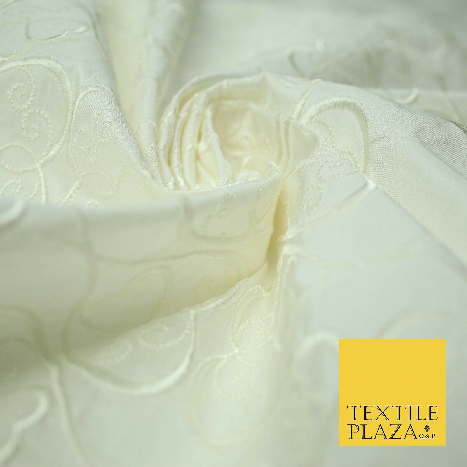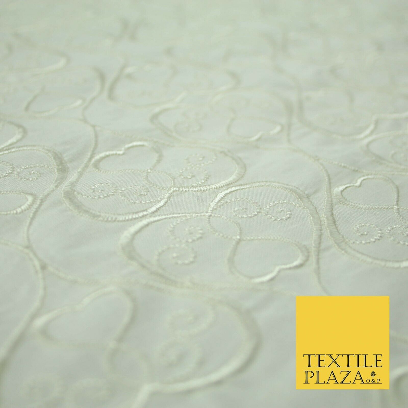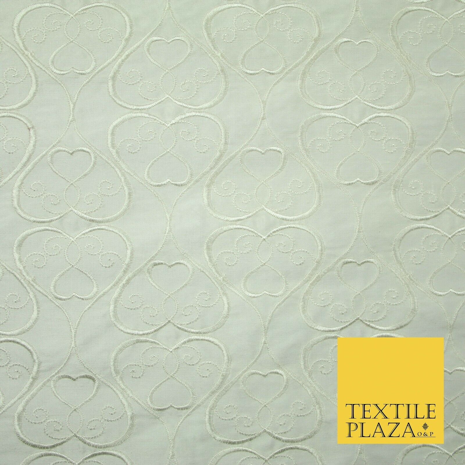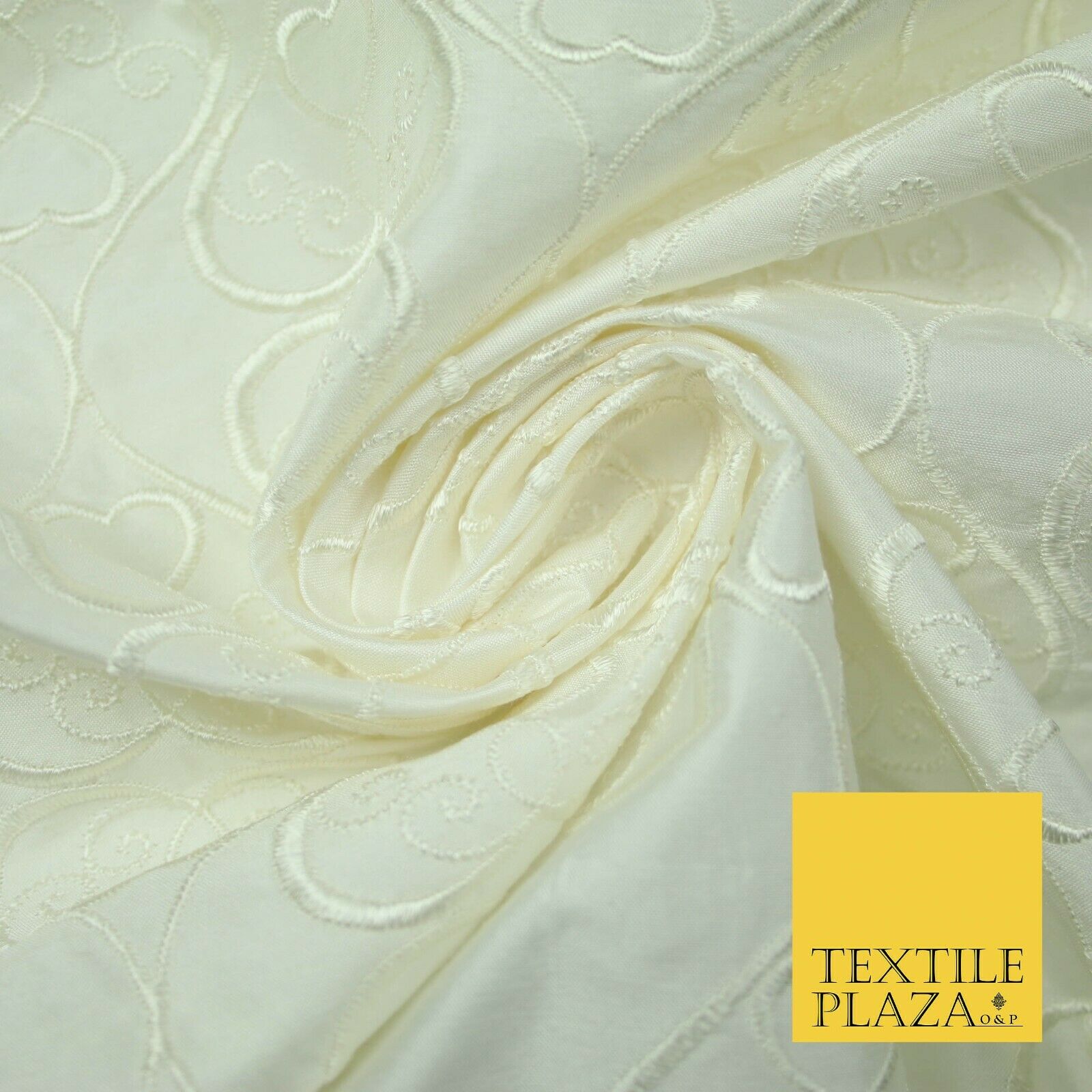 Luxury IVORY Ornate Hearts Design Embroidered 100% PURE SILK Fabric 44" 4521