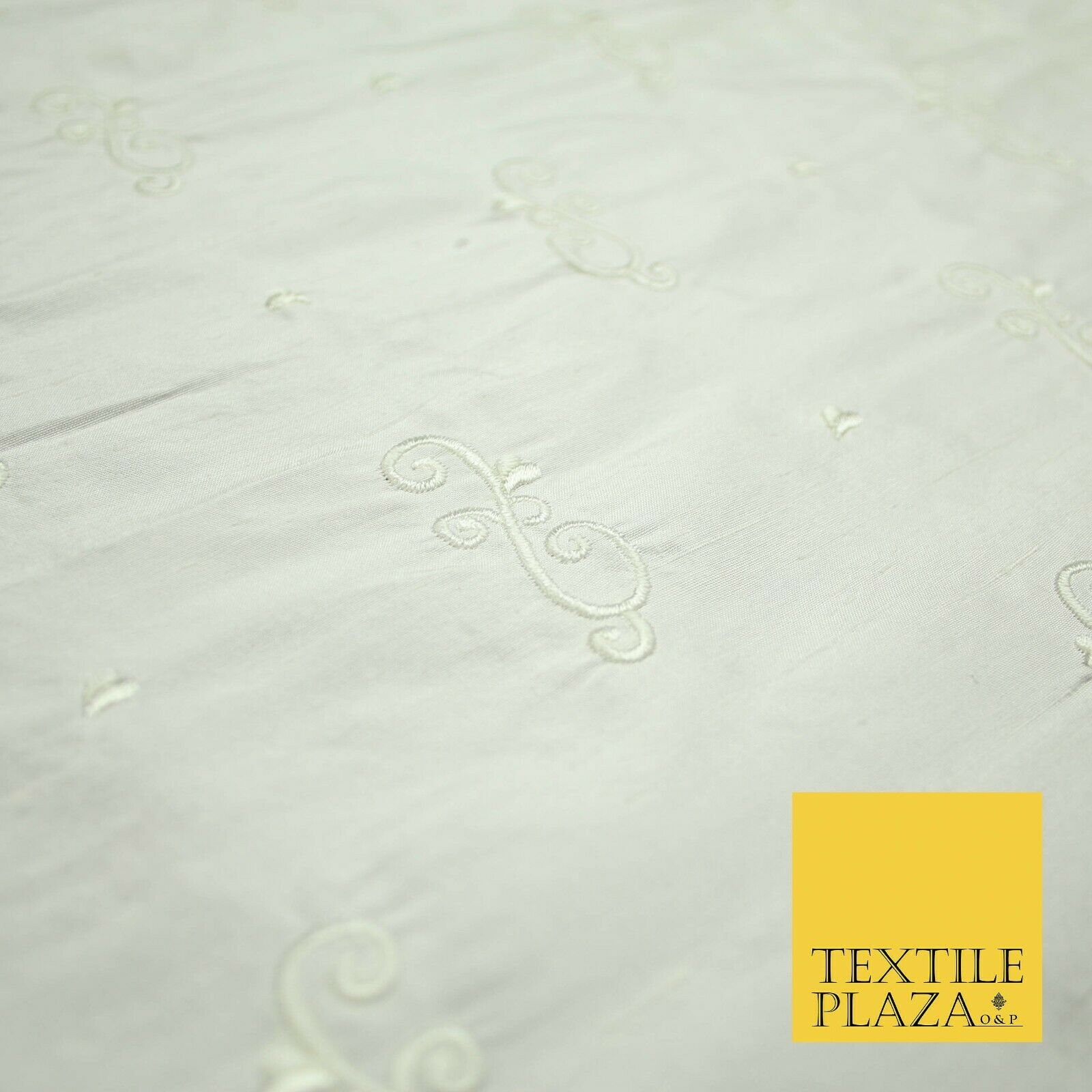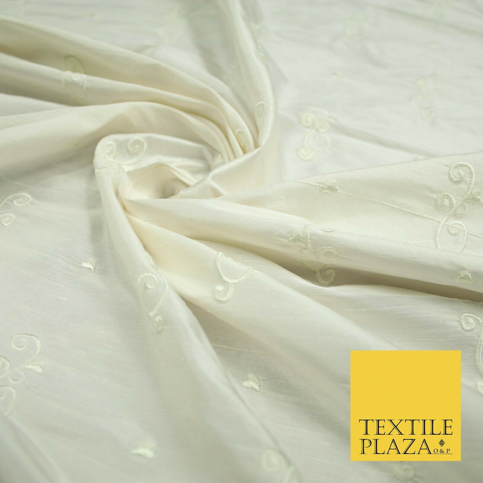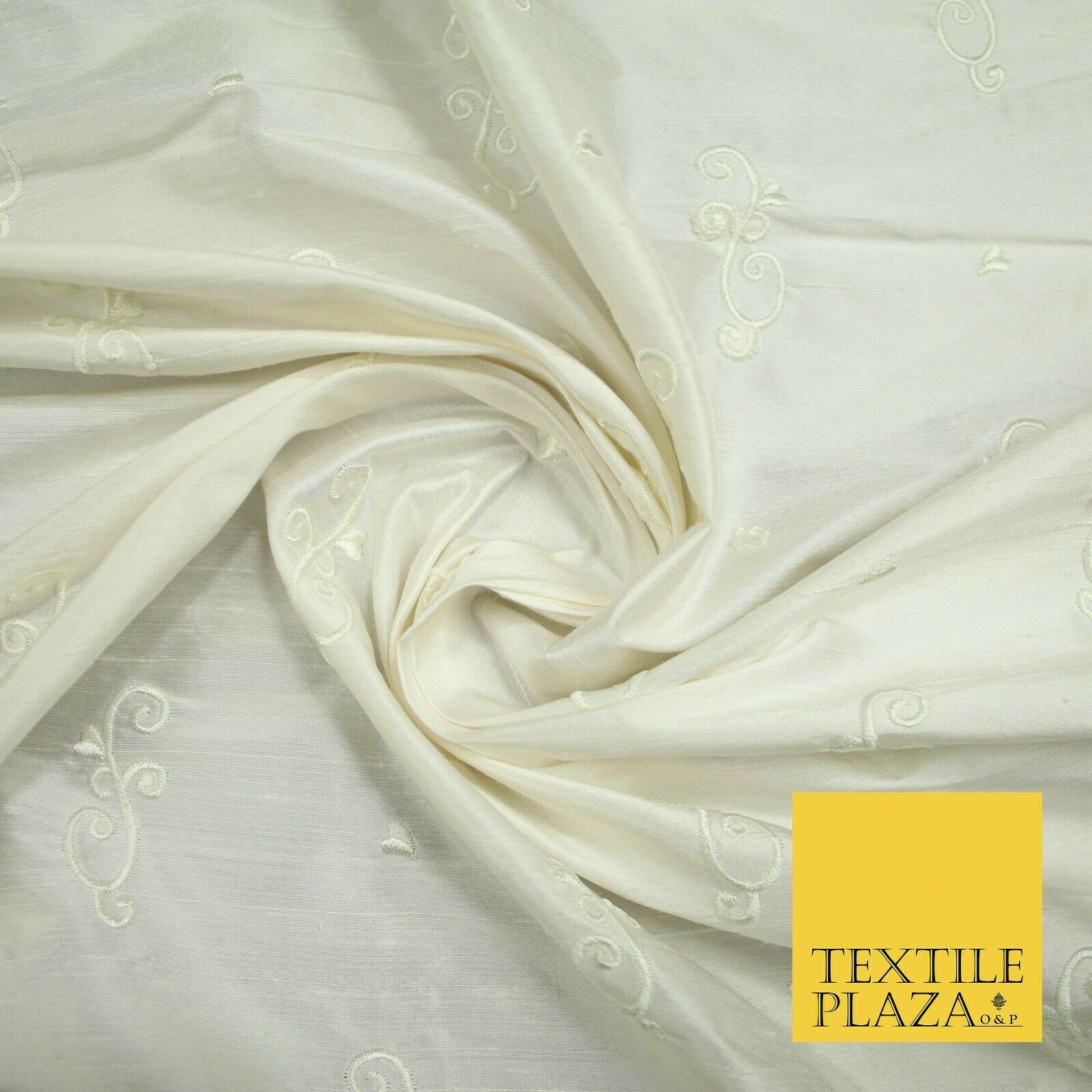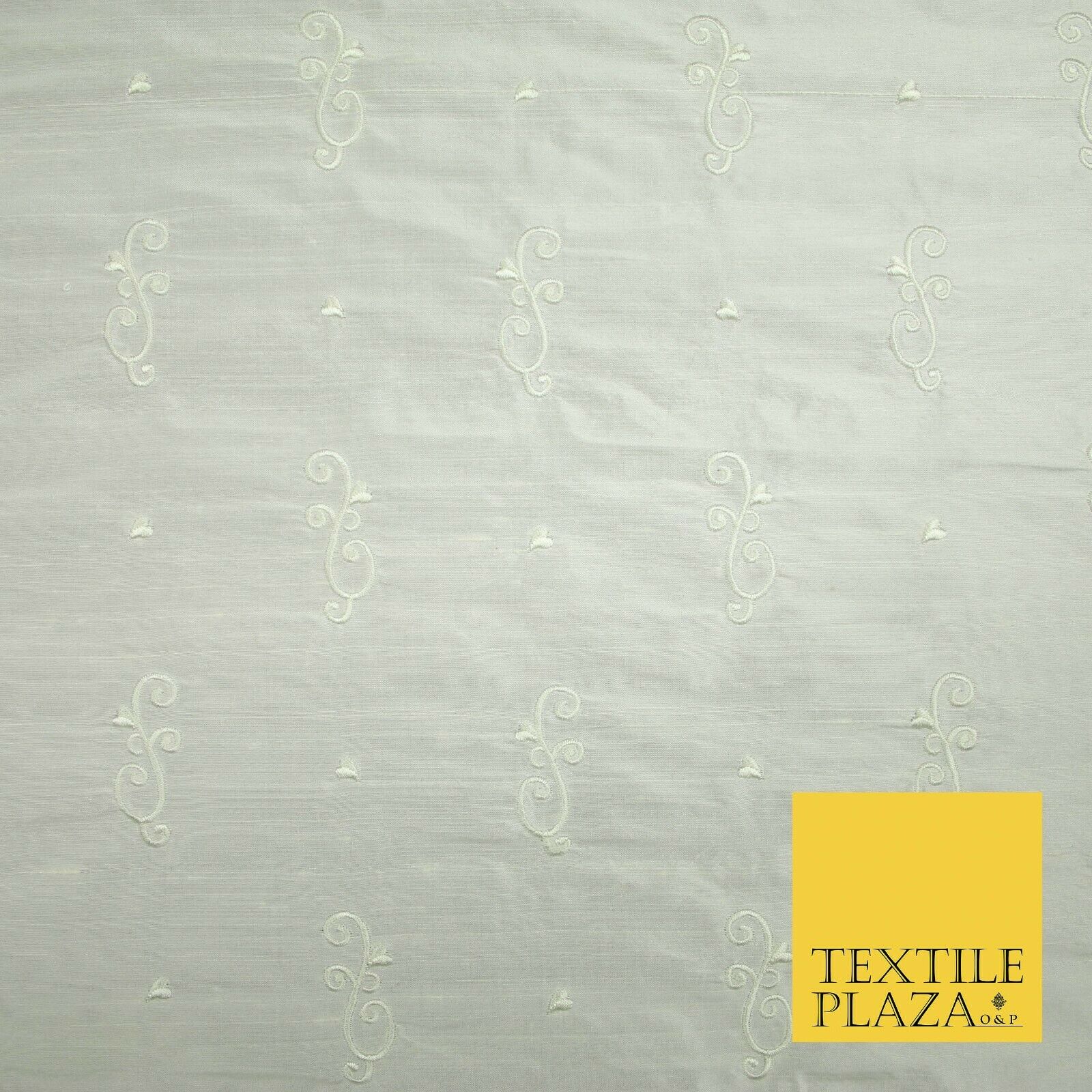 Luxury Ivory Scroll Motif Design Embroidered 100% PURE SILK Fabric 45" Wide 4648
