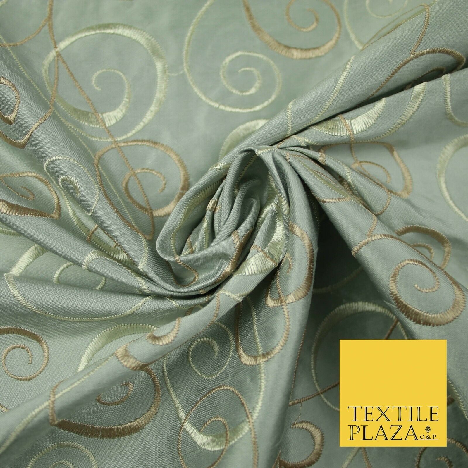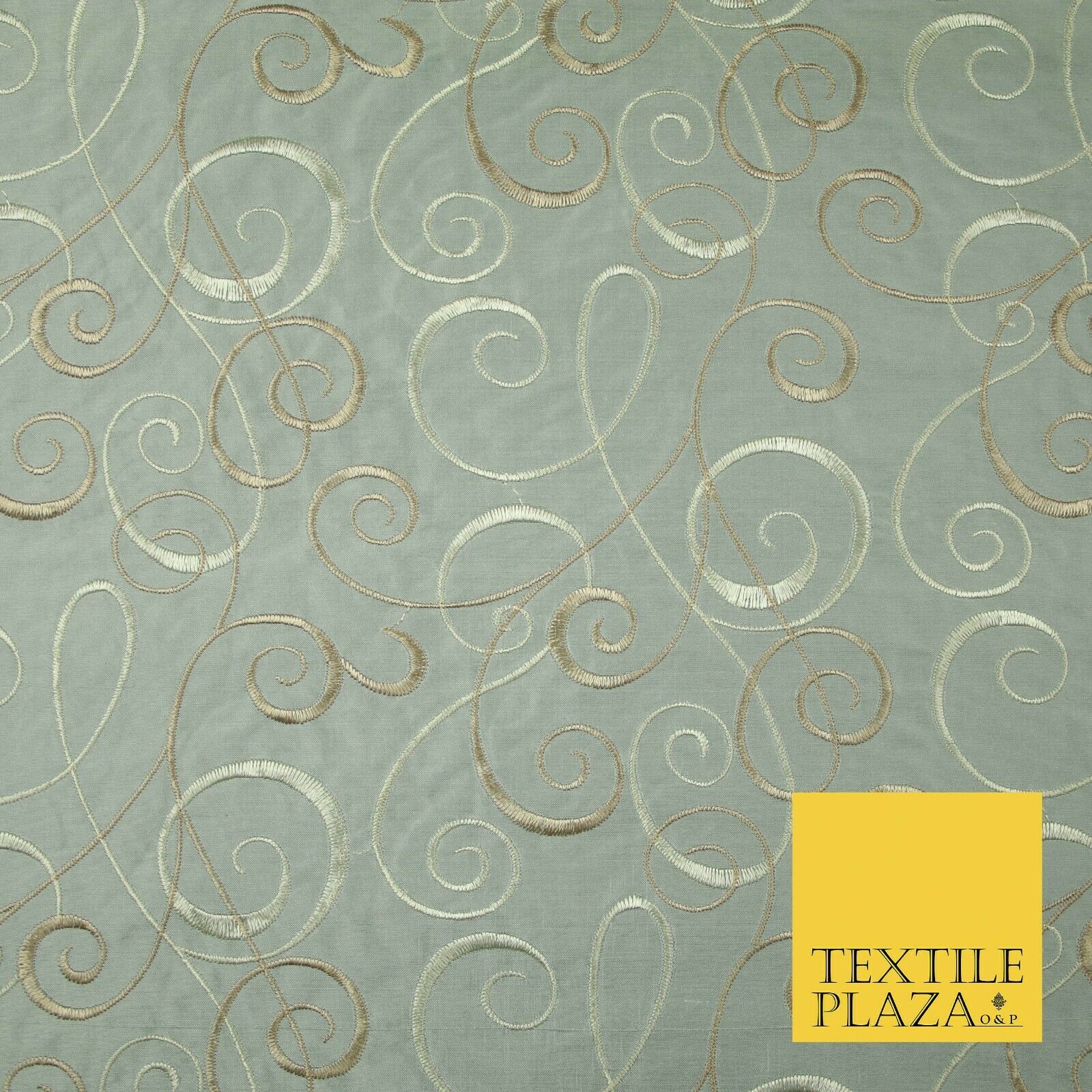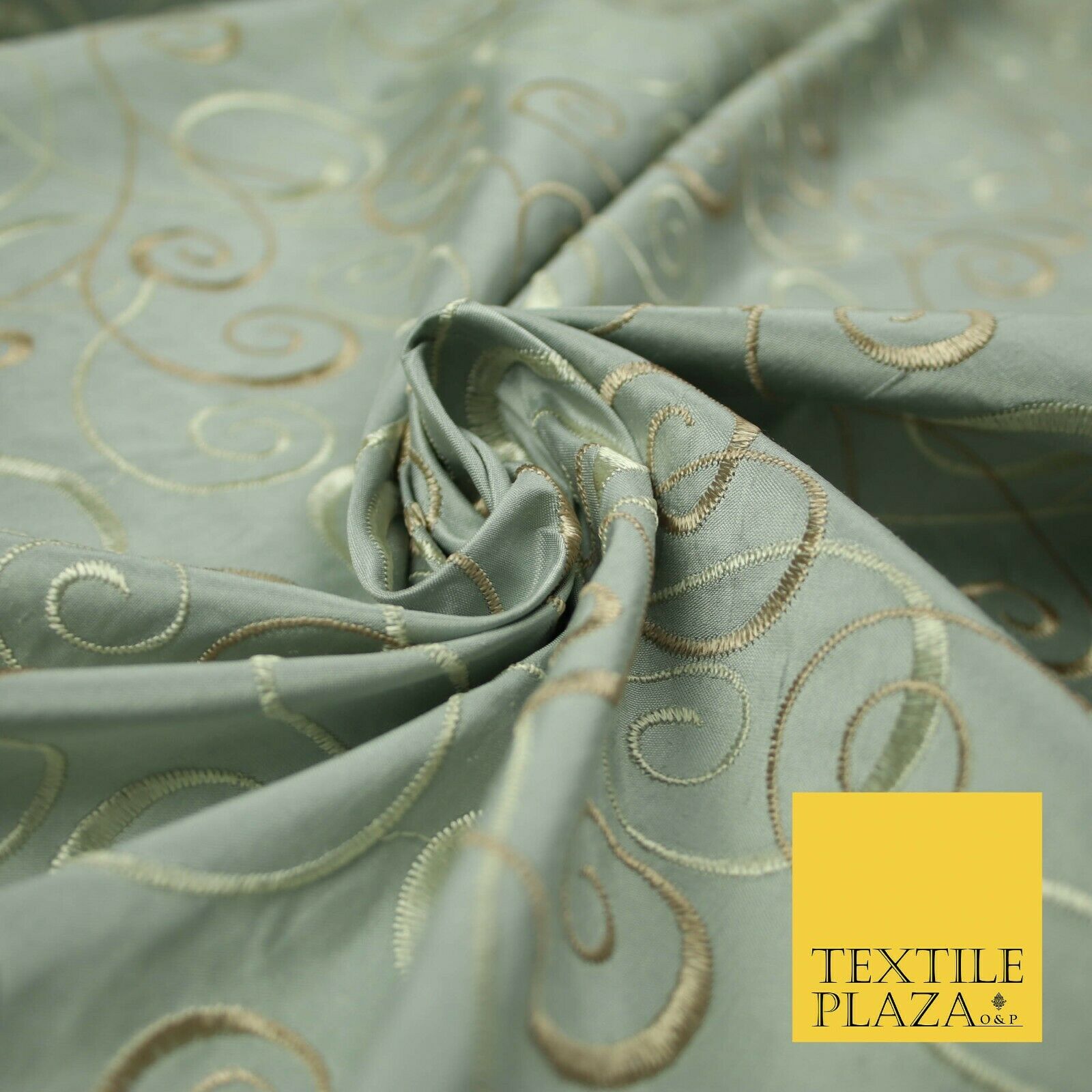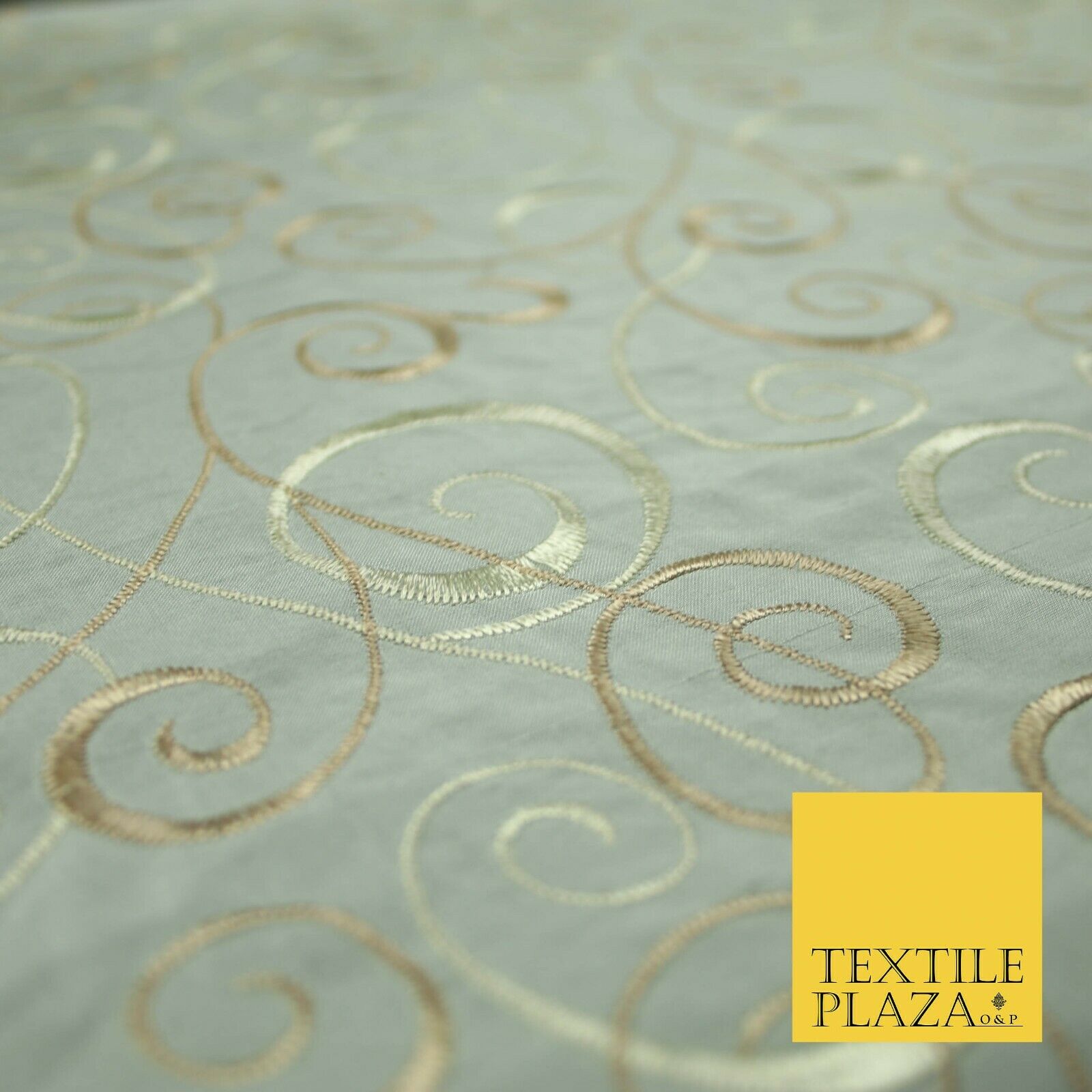 Luxury MARBLE GREY Ornamental Swirls Embroidered 100% PURE SILK Fabric 48" 4506