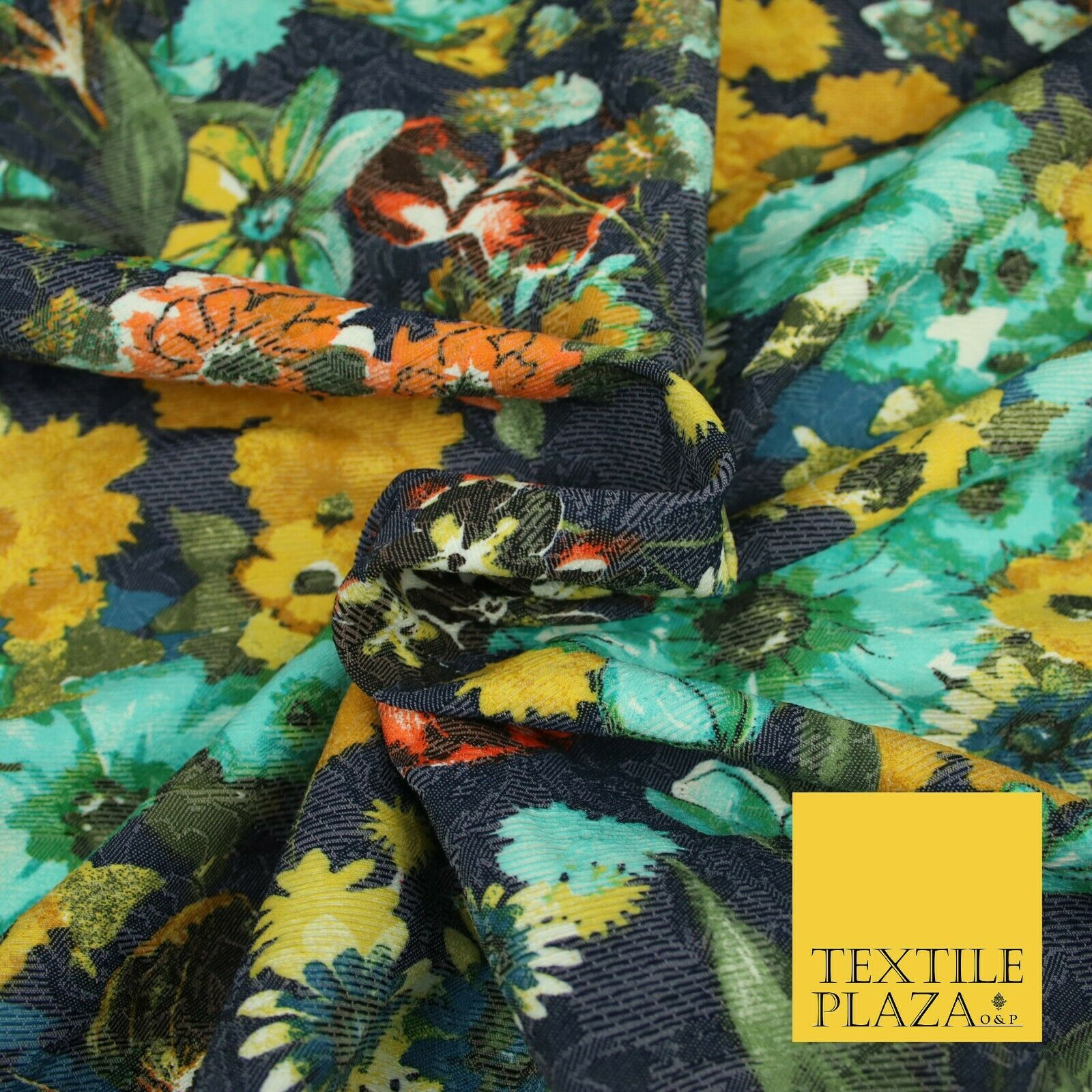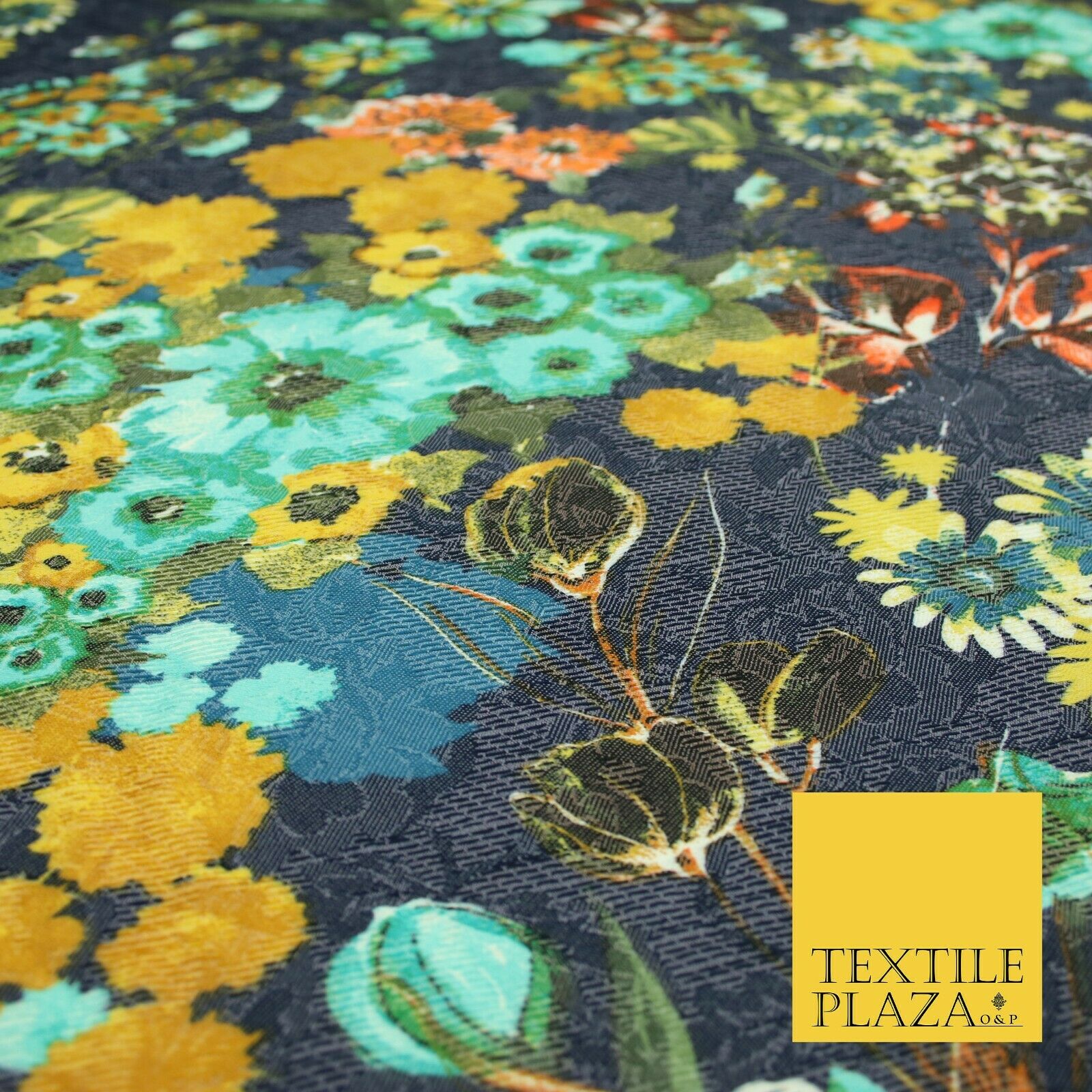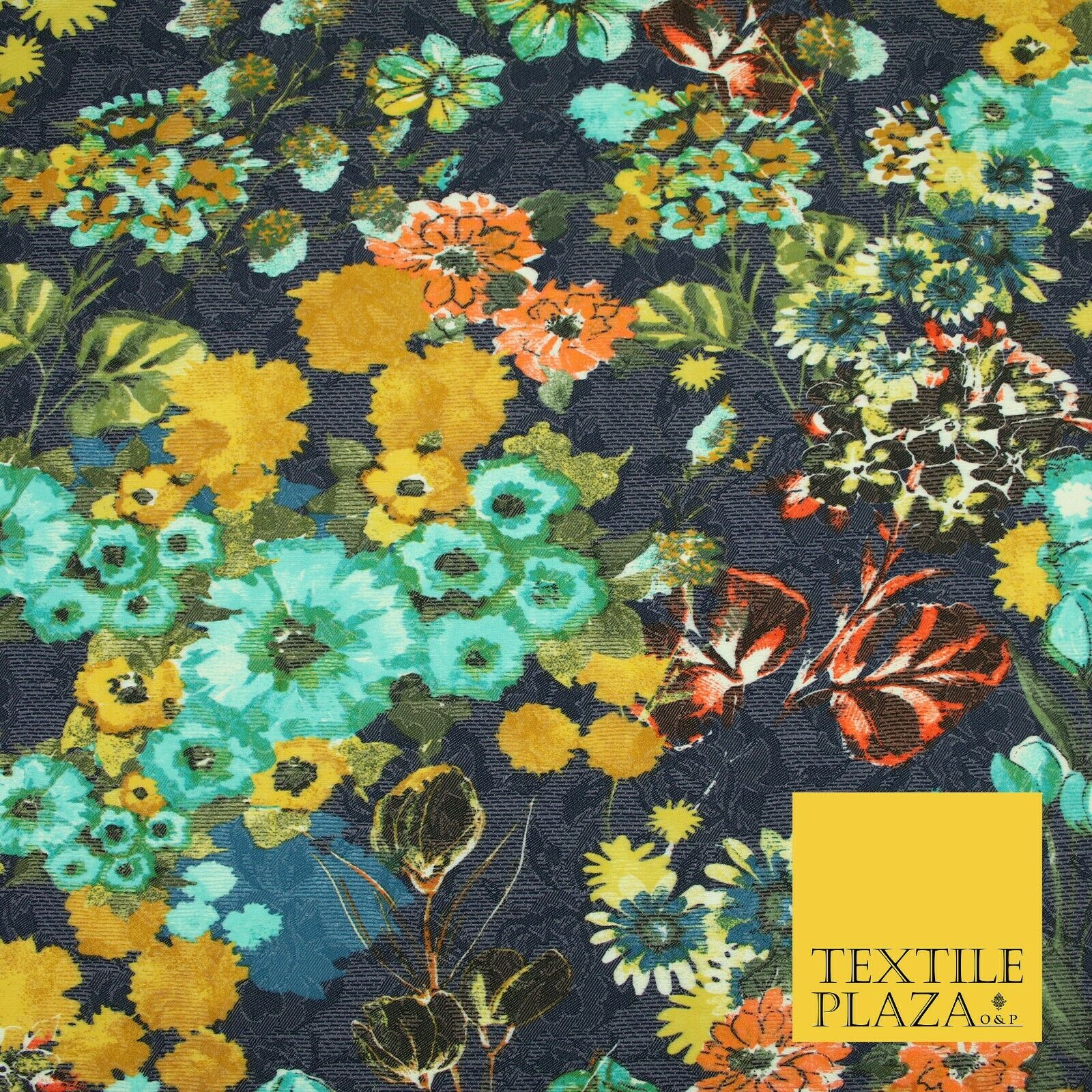 Luxury Navy Blue Flower Garden Stretch Floral Jacquard Dress Fabric 1879