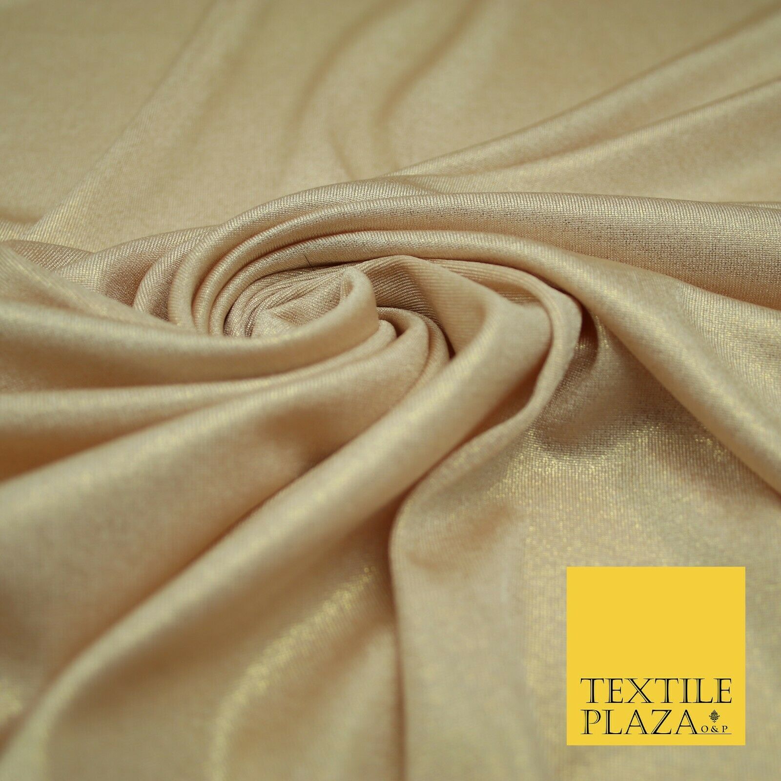 Luxury Nude Peach Champagne Gold Foil Slinky Stretch JerseyDress Fabric Backdrop