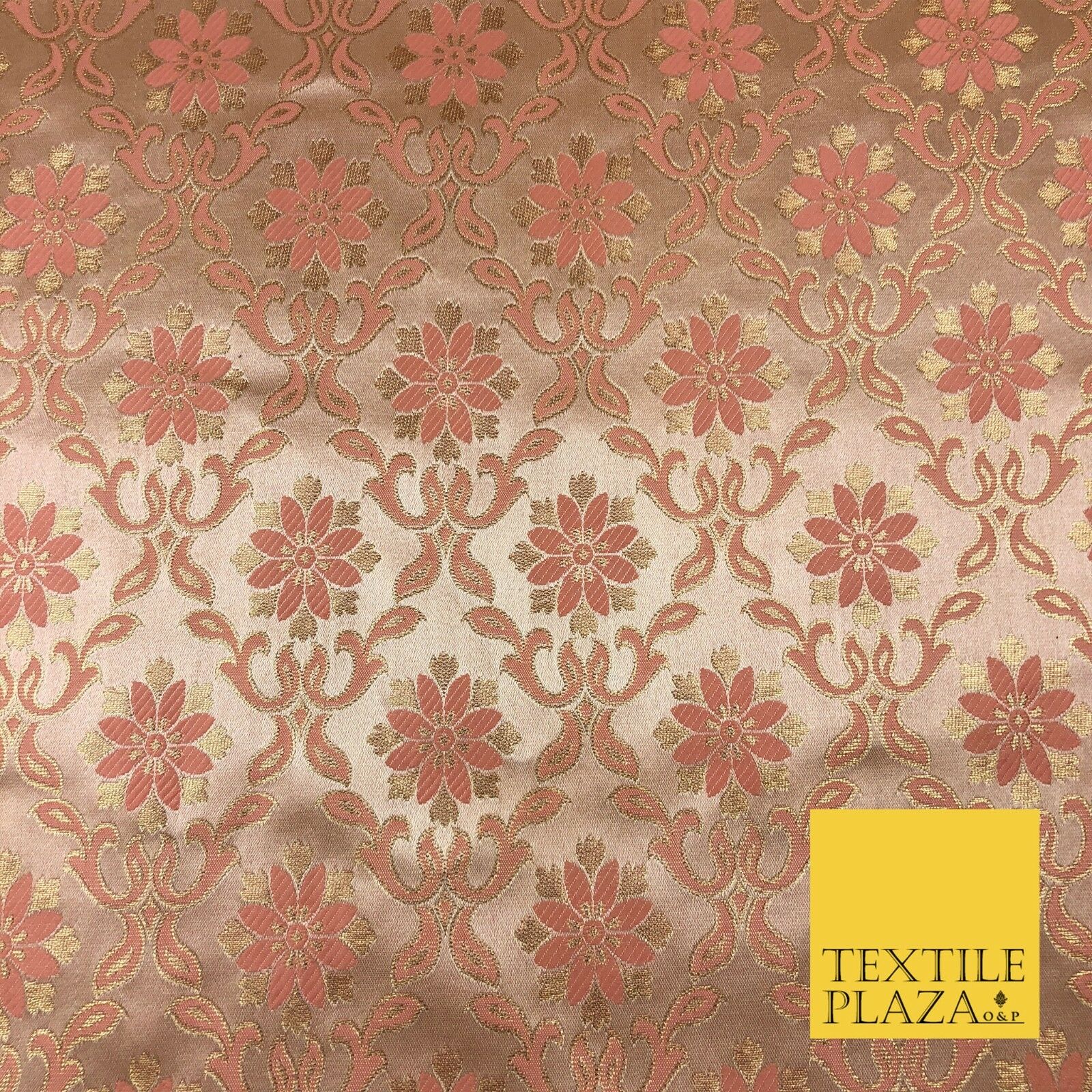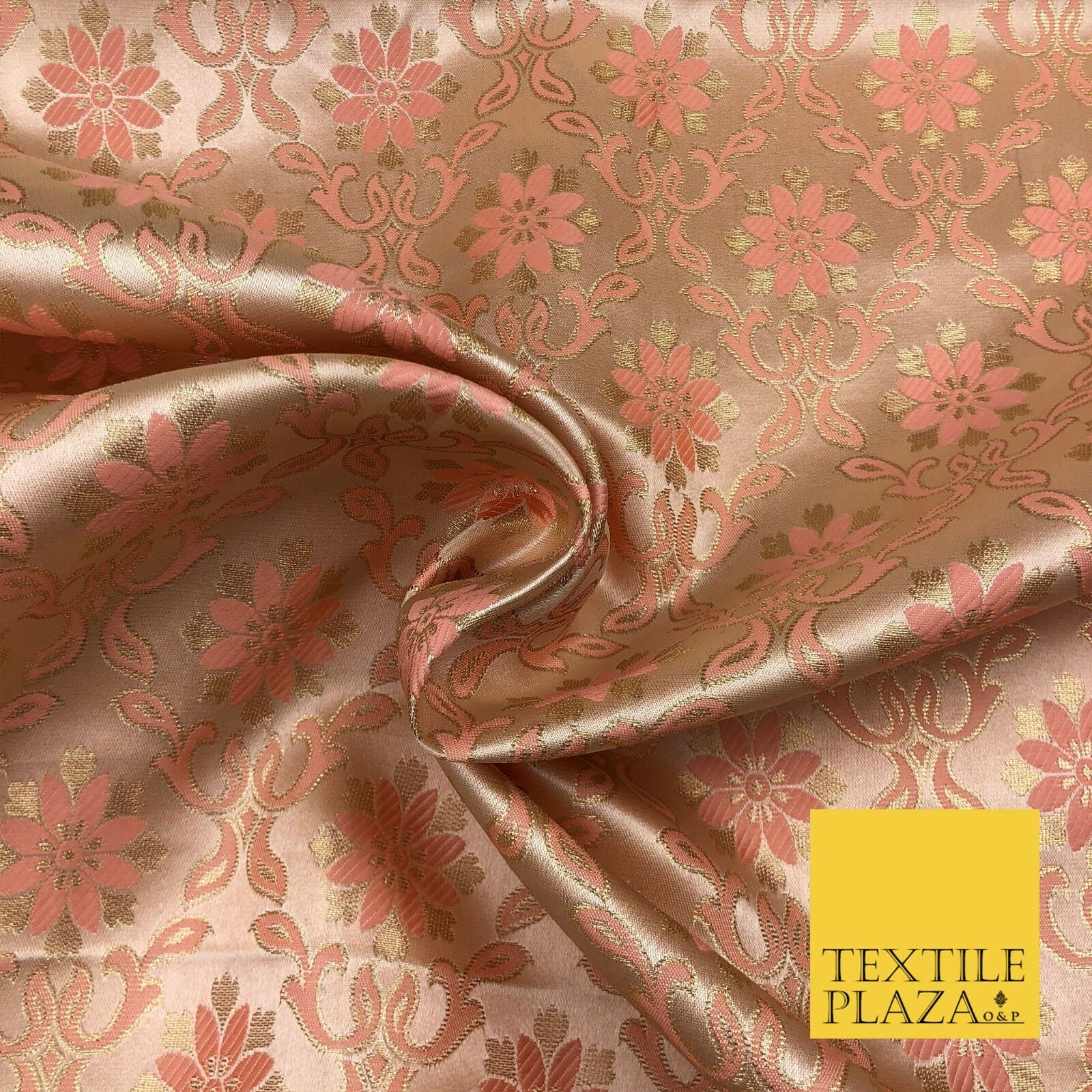 Luxury PEACH Ornate Vintage Satin Jacquard Fabric Fancy Waistcoats Jackets LA868