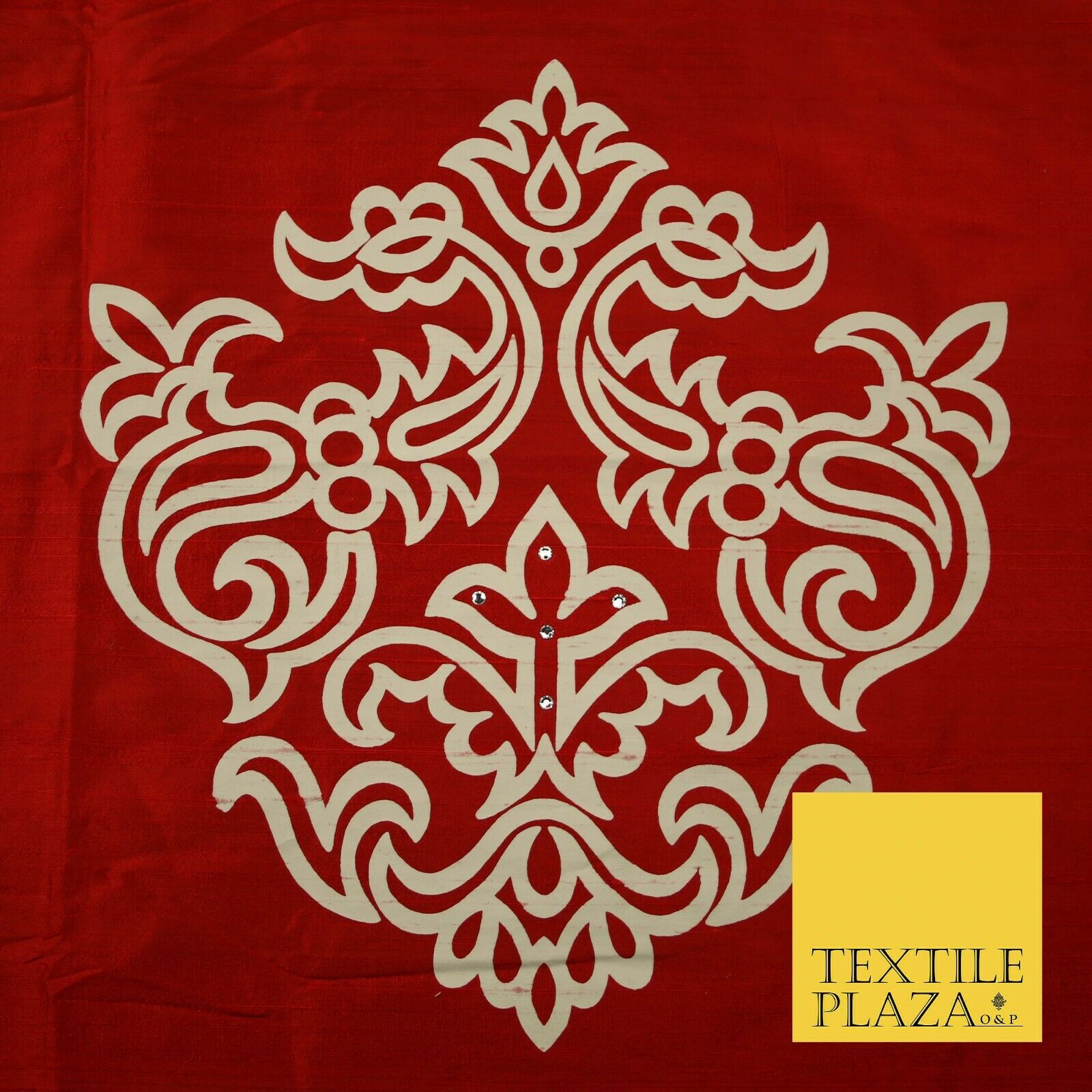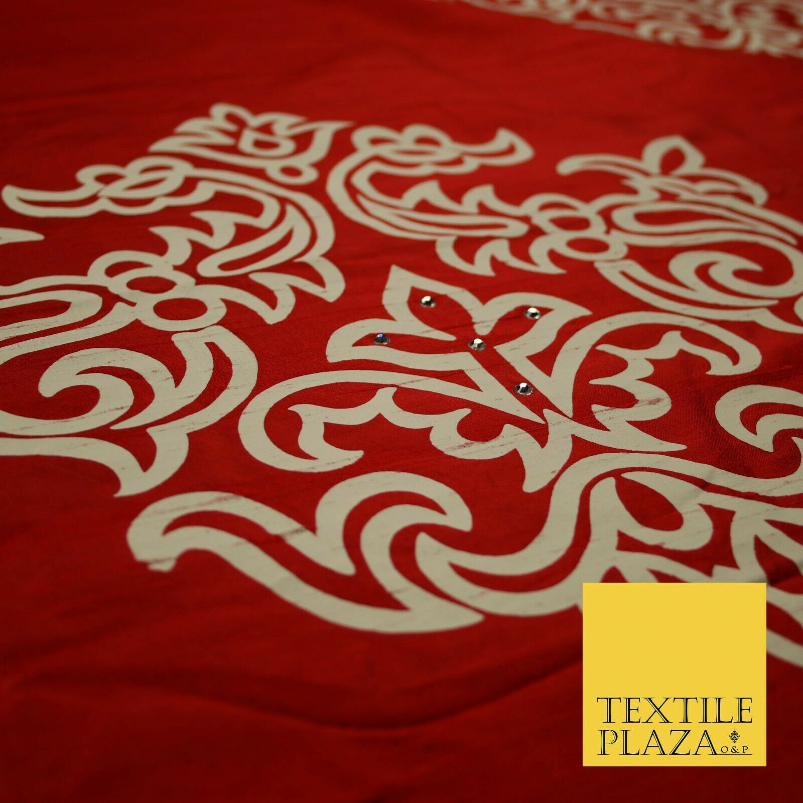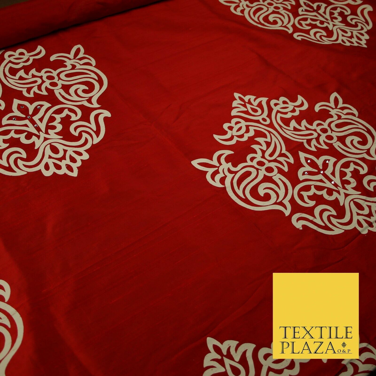 Luxury Red Large Swarovski Printed Damask 100% PURE SILK Fabric Furnishing 4552