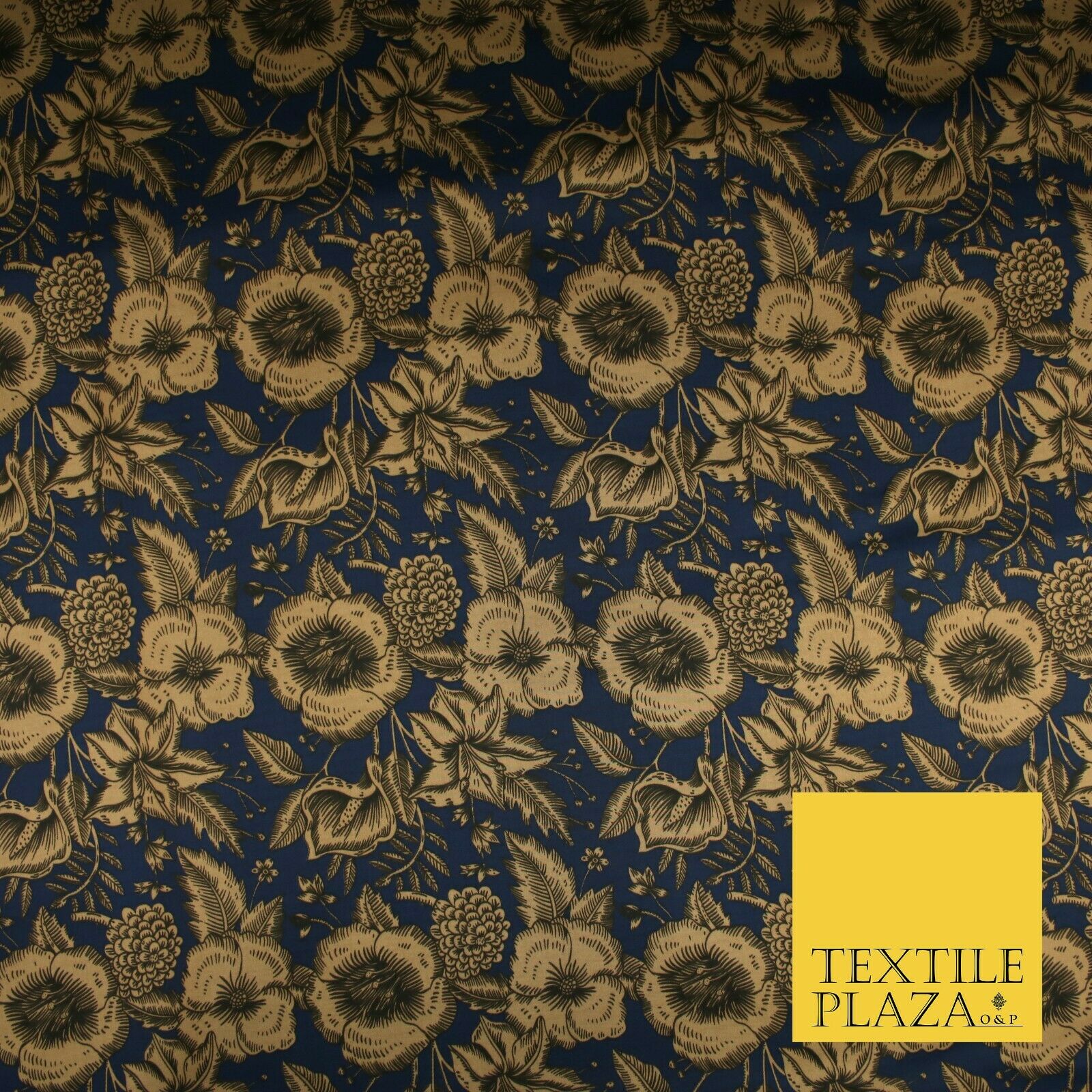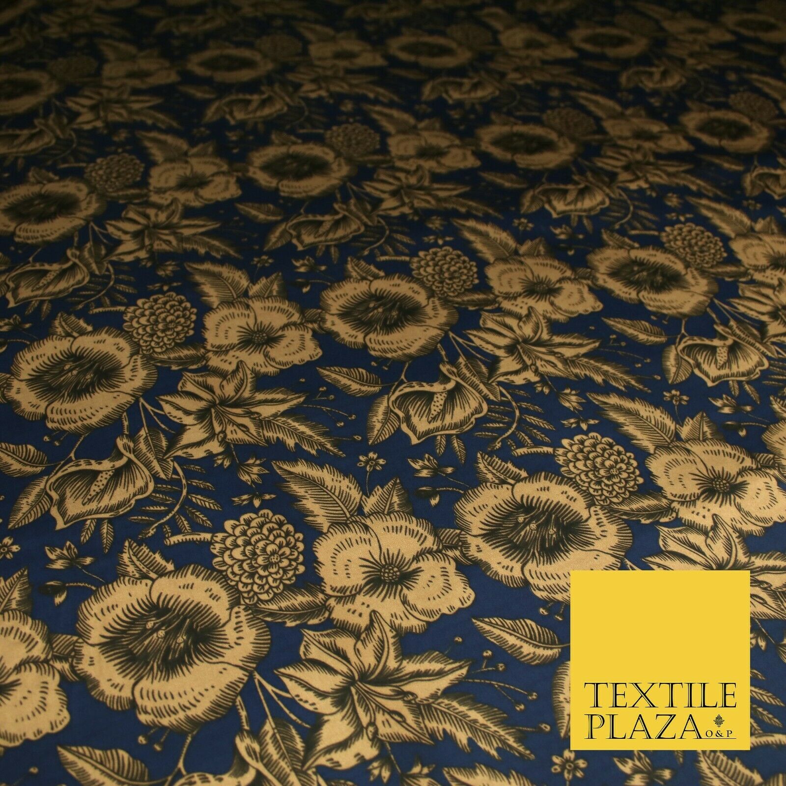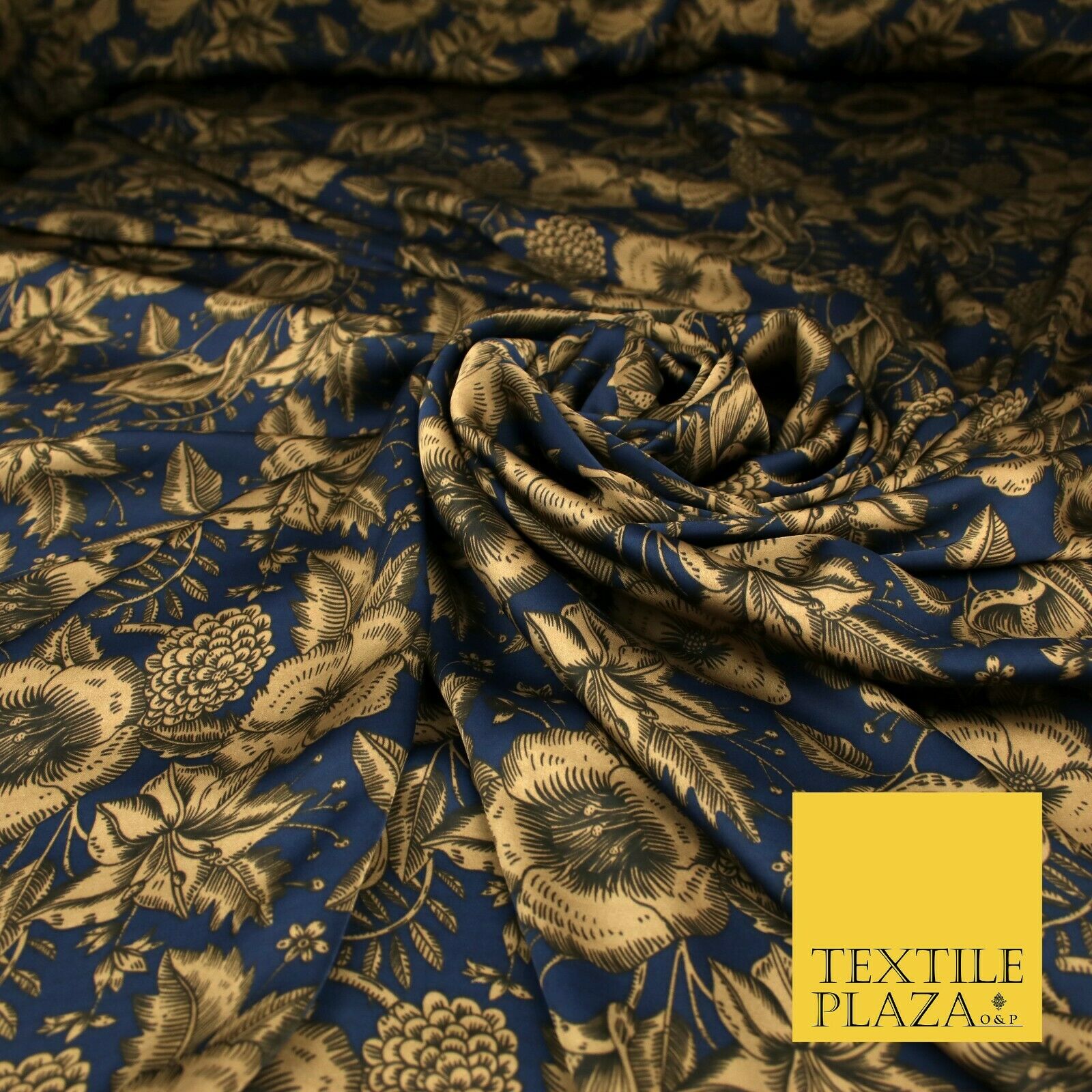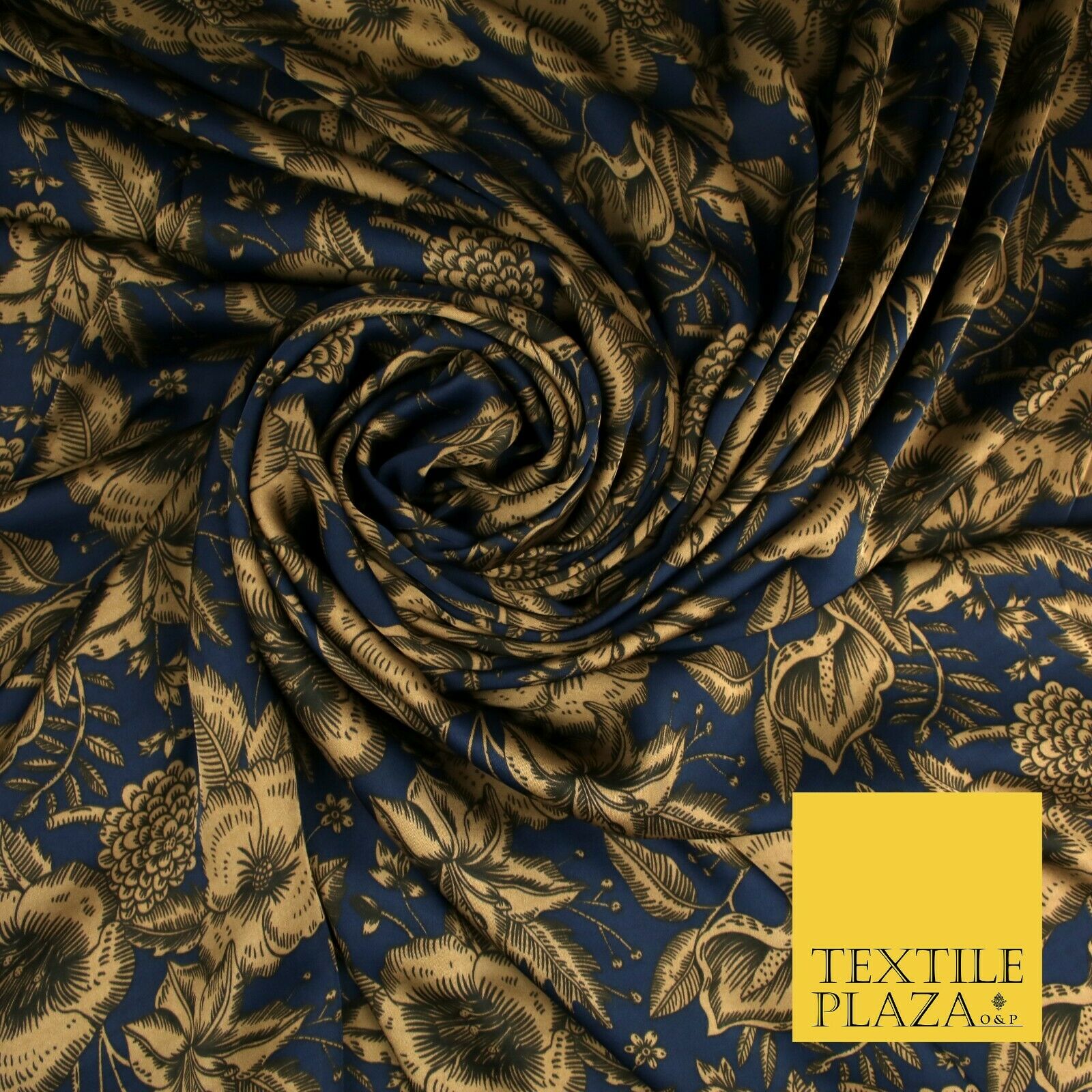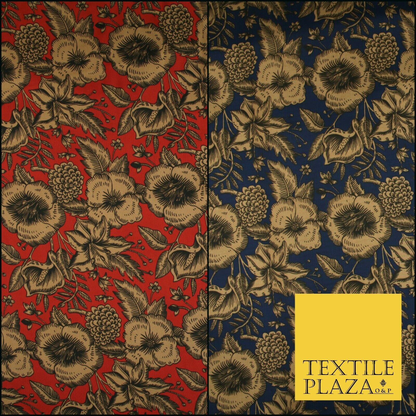 Luxury Red / Navy Antique Floral Woodland Printed Charmeuse Satin Dress Fabric