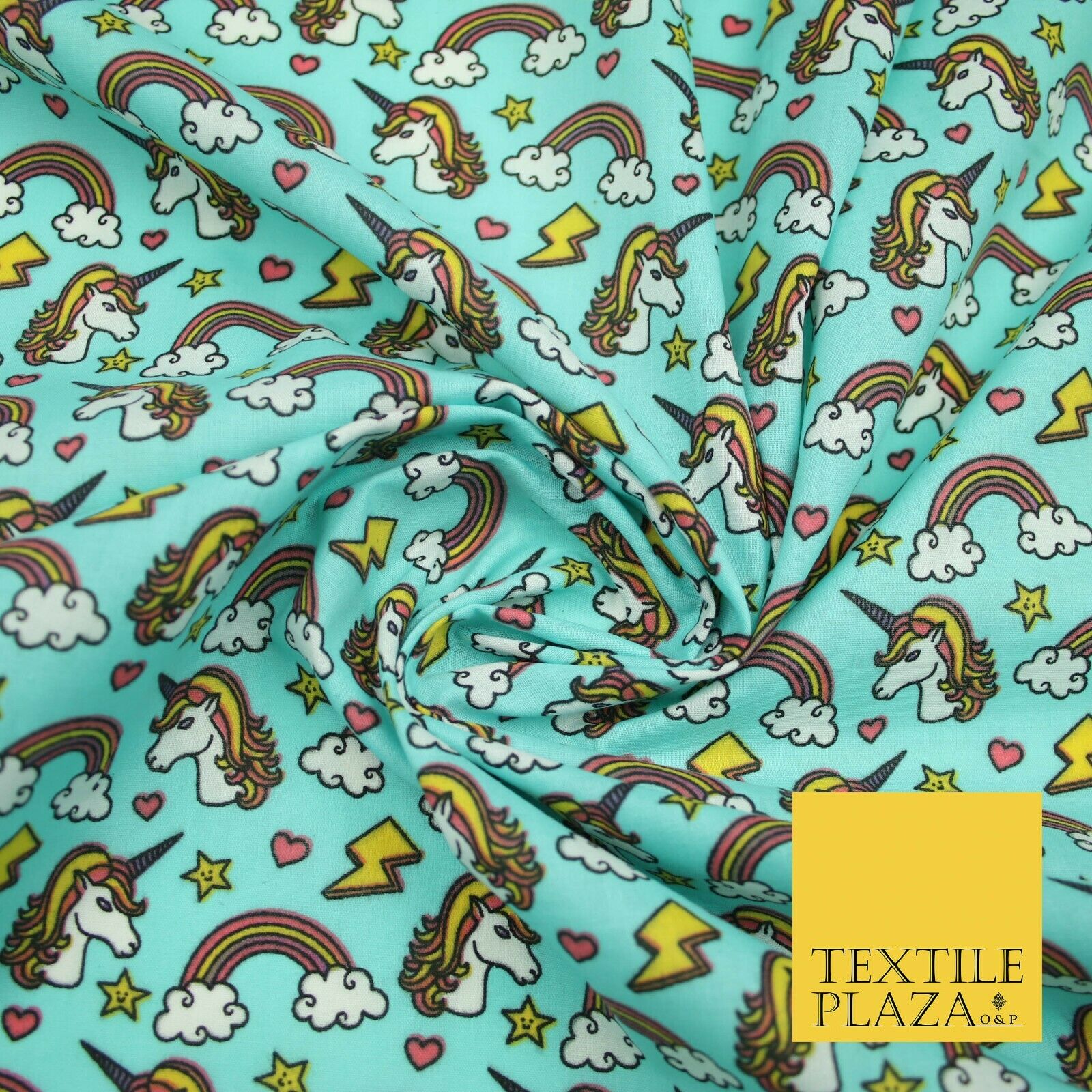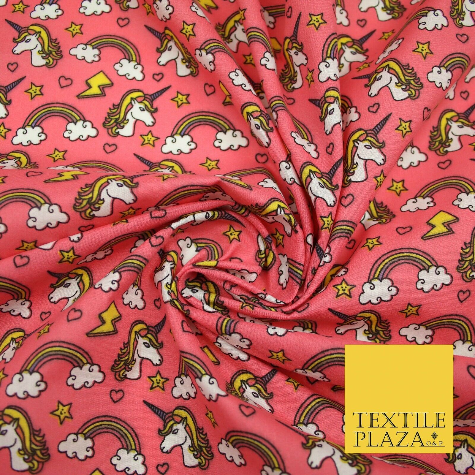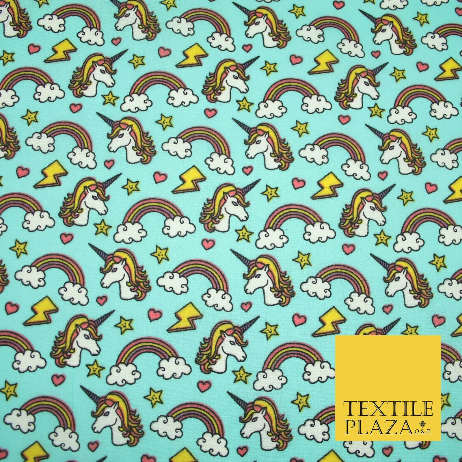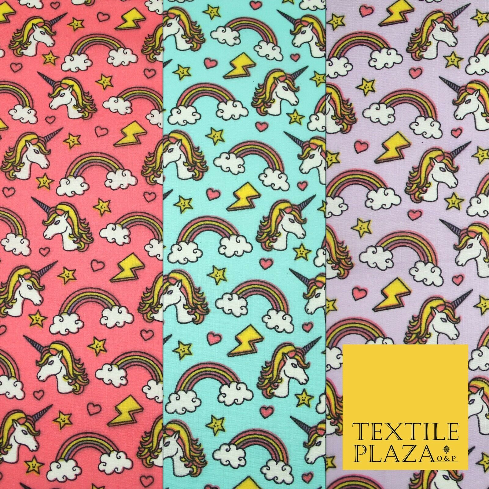 Magical Unicorns Rainbows Printed Polycotton Dress Craft Fabric 44" 3 COLOURS