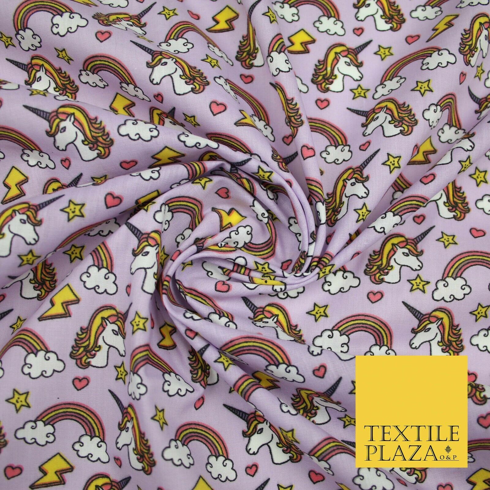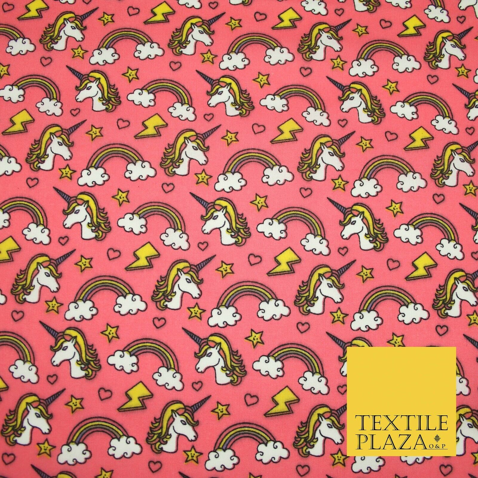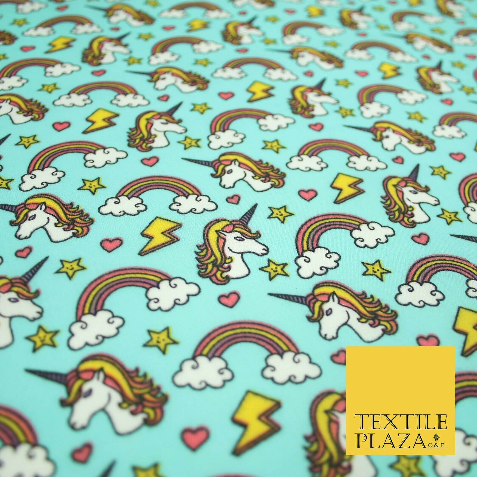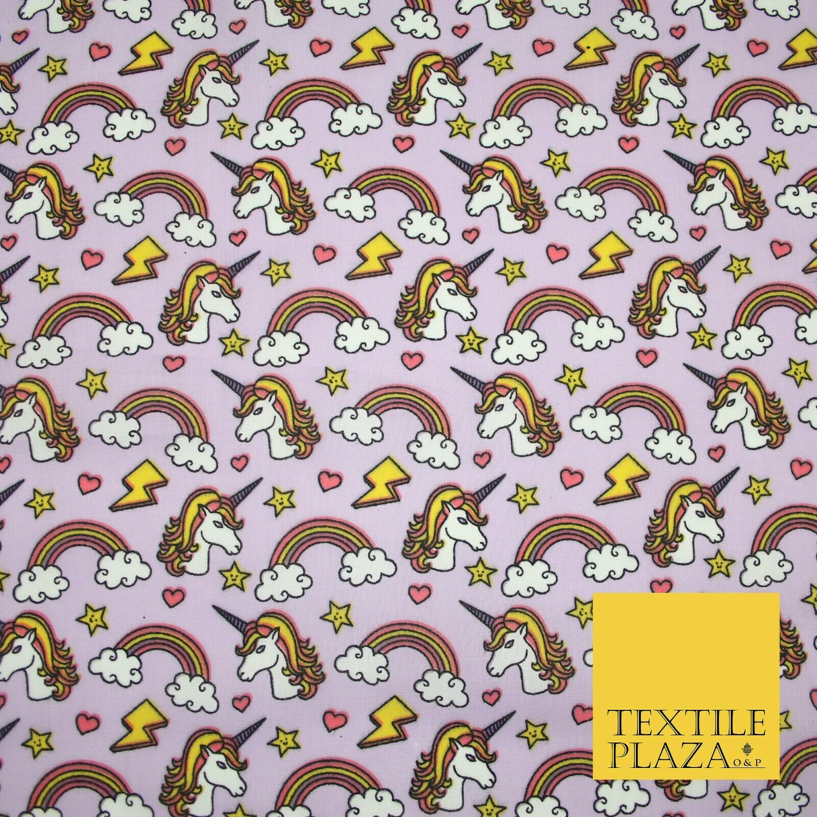 Magical Unicorns Rainbows Printed Polycotton Dress Craft Fabric 44" 3 COLOURS