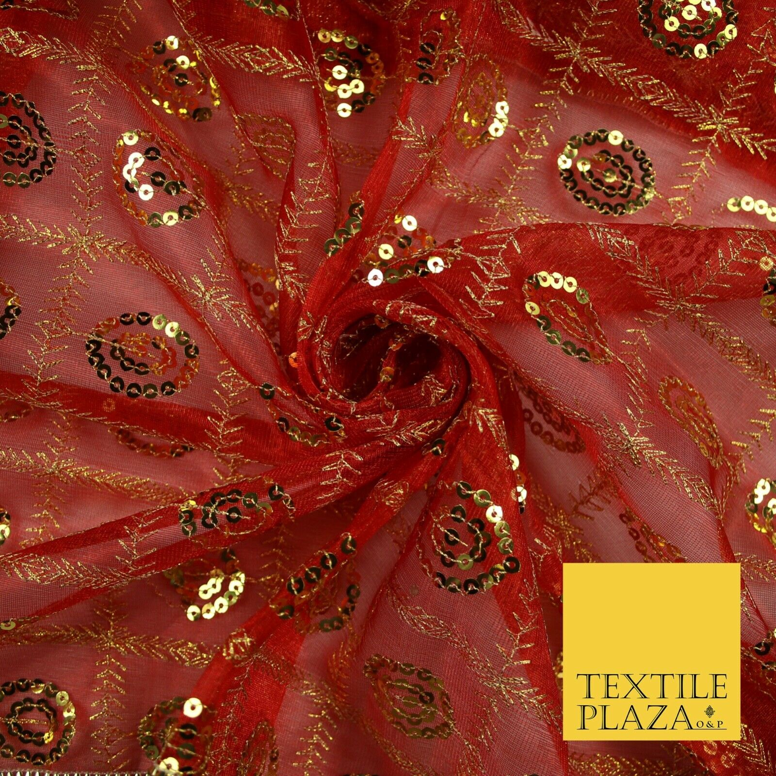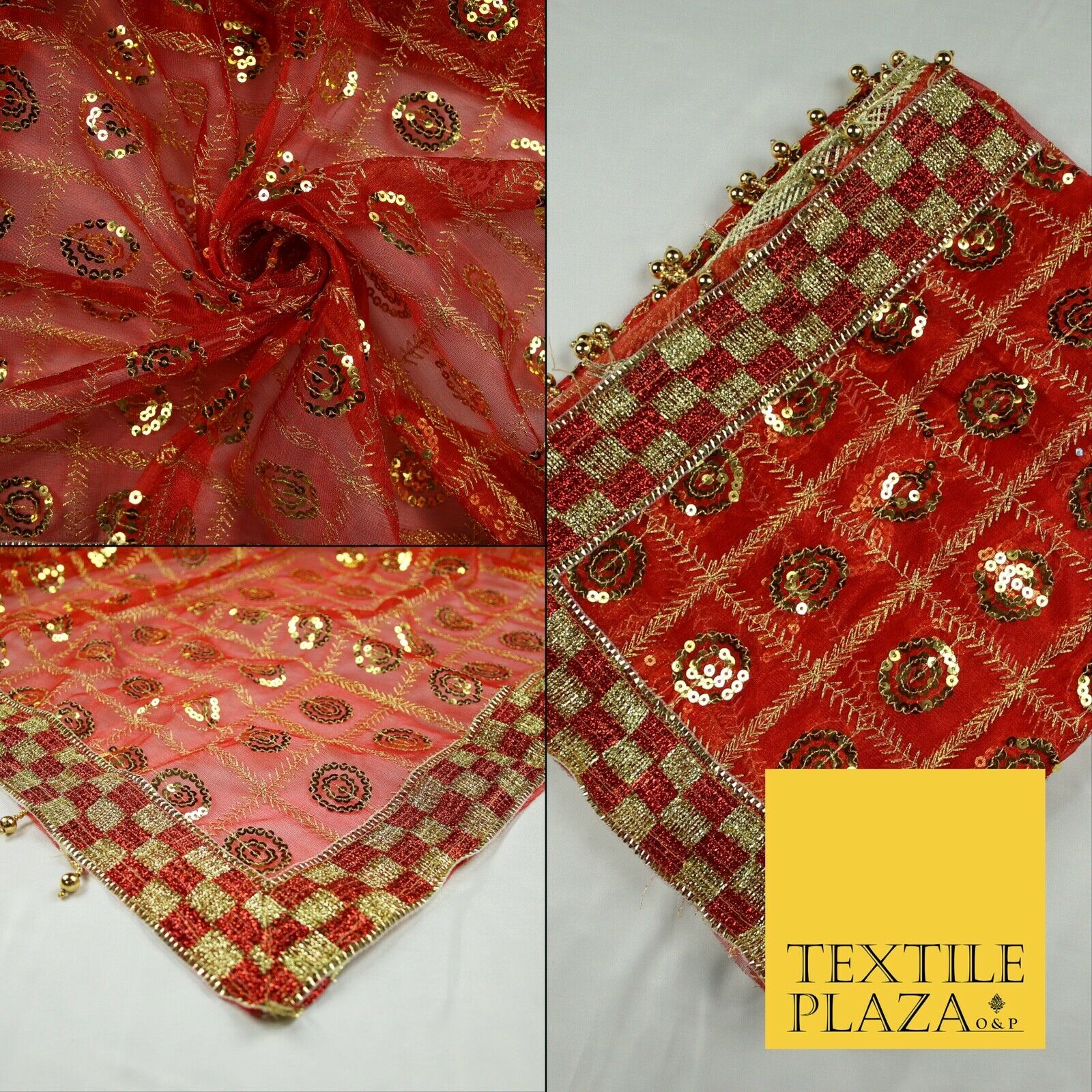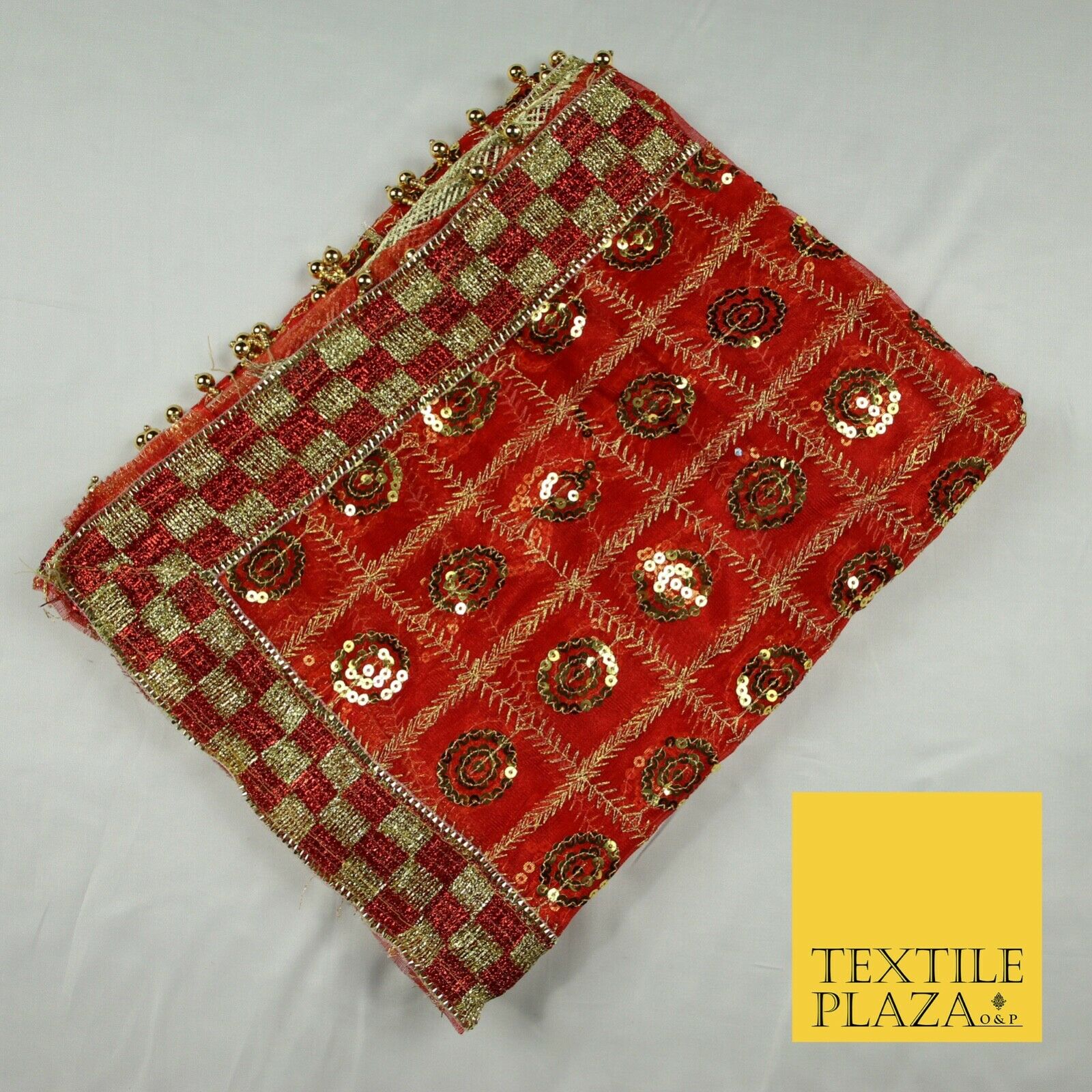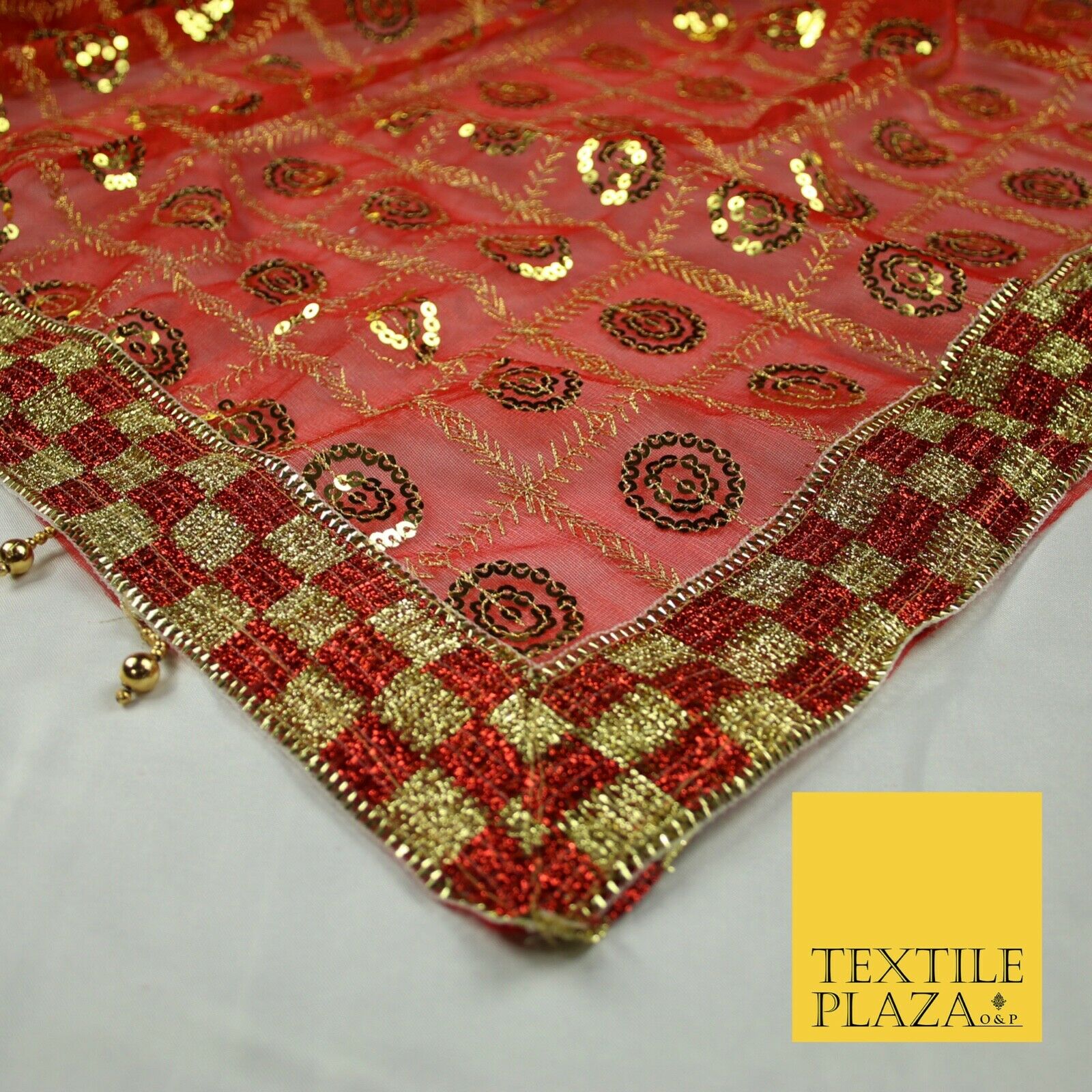 Mata Ki Chunni Embroidery Golden Border Devi Mata Pooja Chunari Chunri Puja Red Geometric Check Sequin Mesh Net Fabric with...