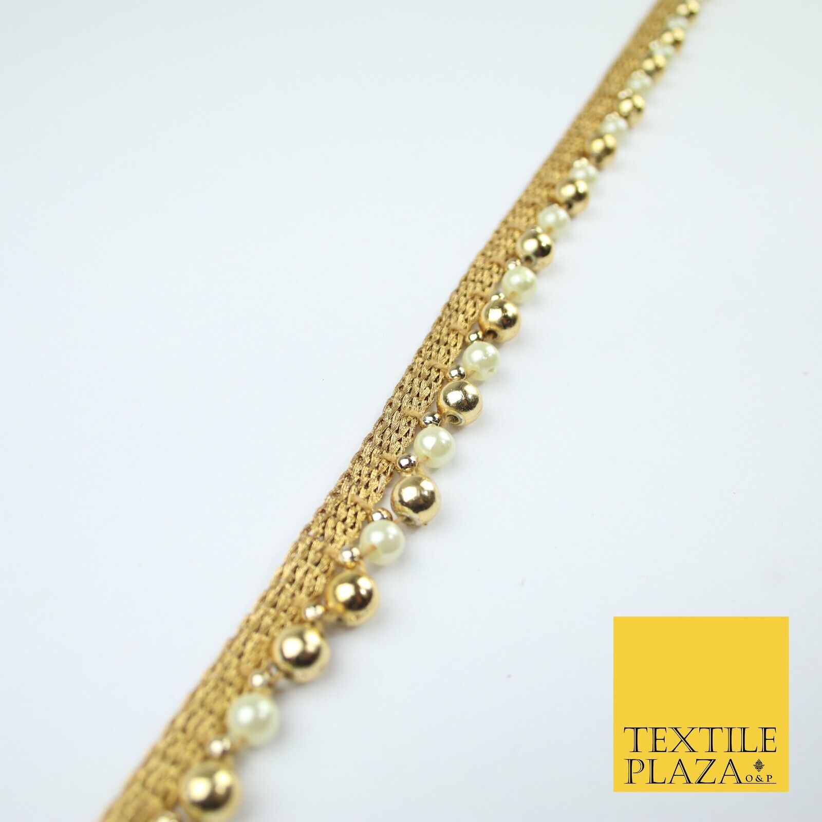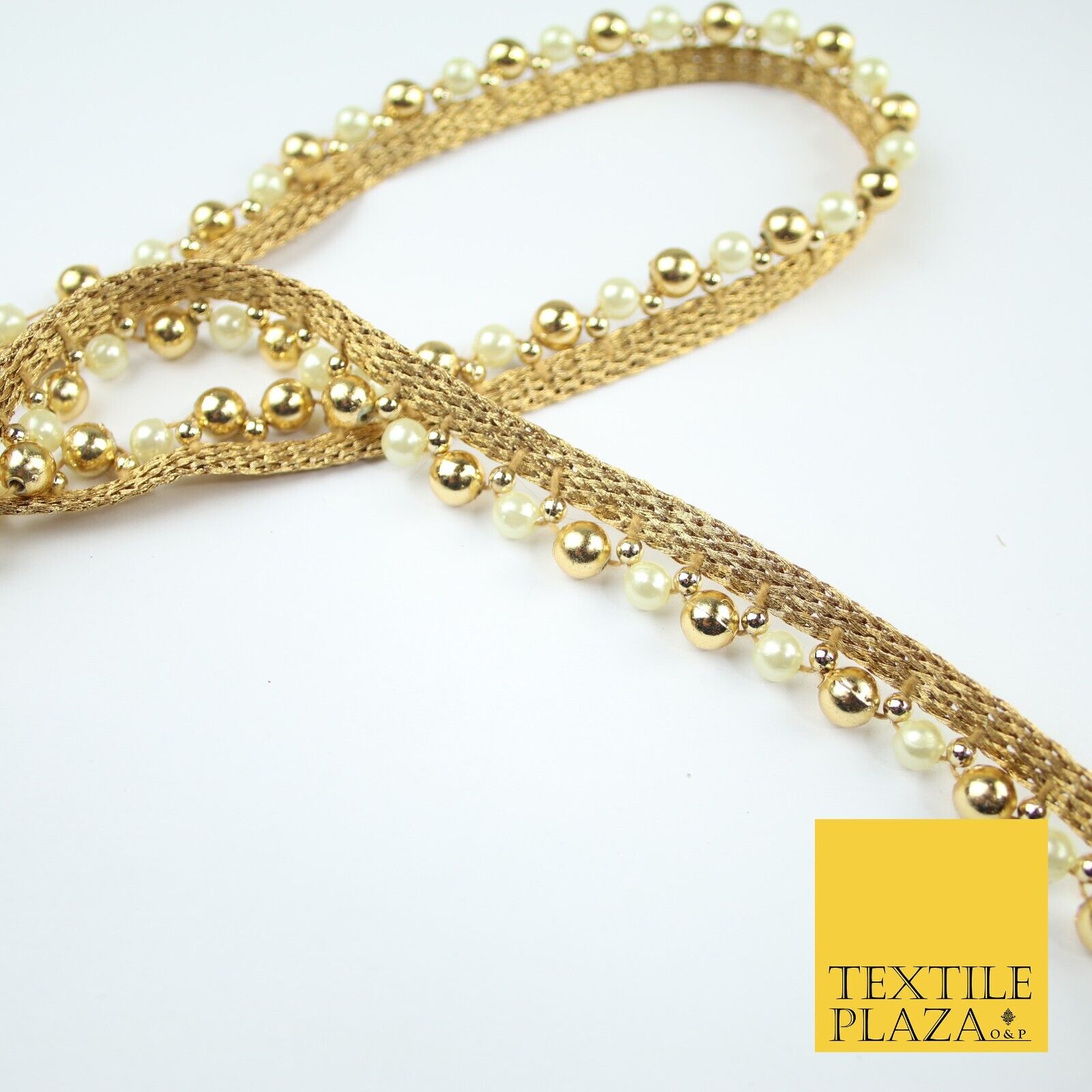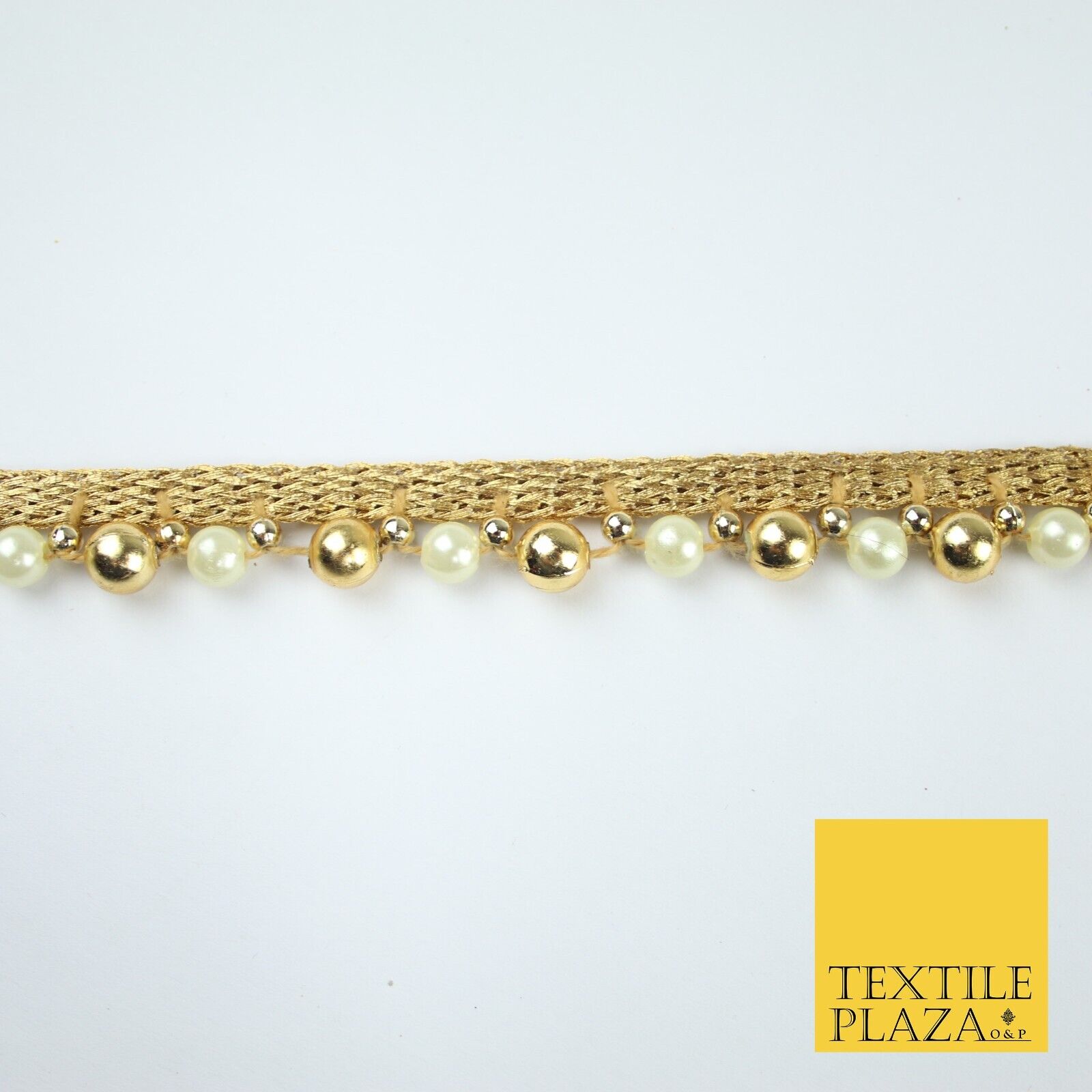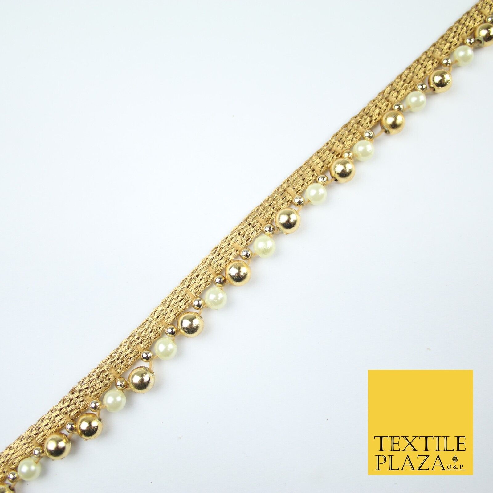 Matt Gold / Ivory Cream Pearl Beaded Ribbon Trim Border Lace - 1.5cm Wide - X585