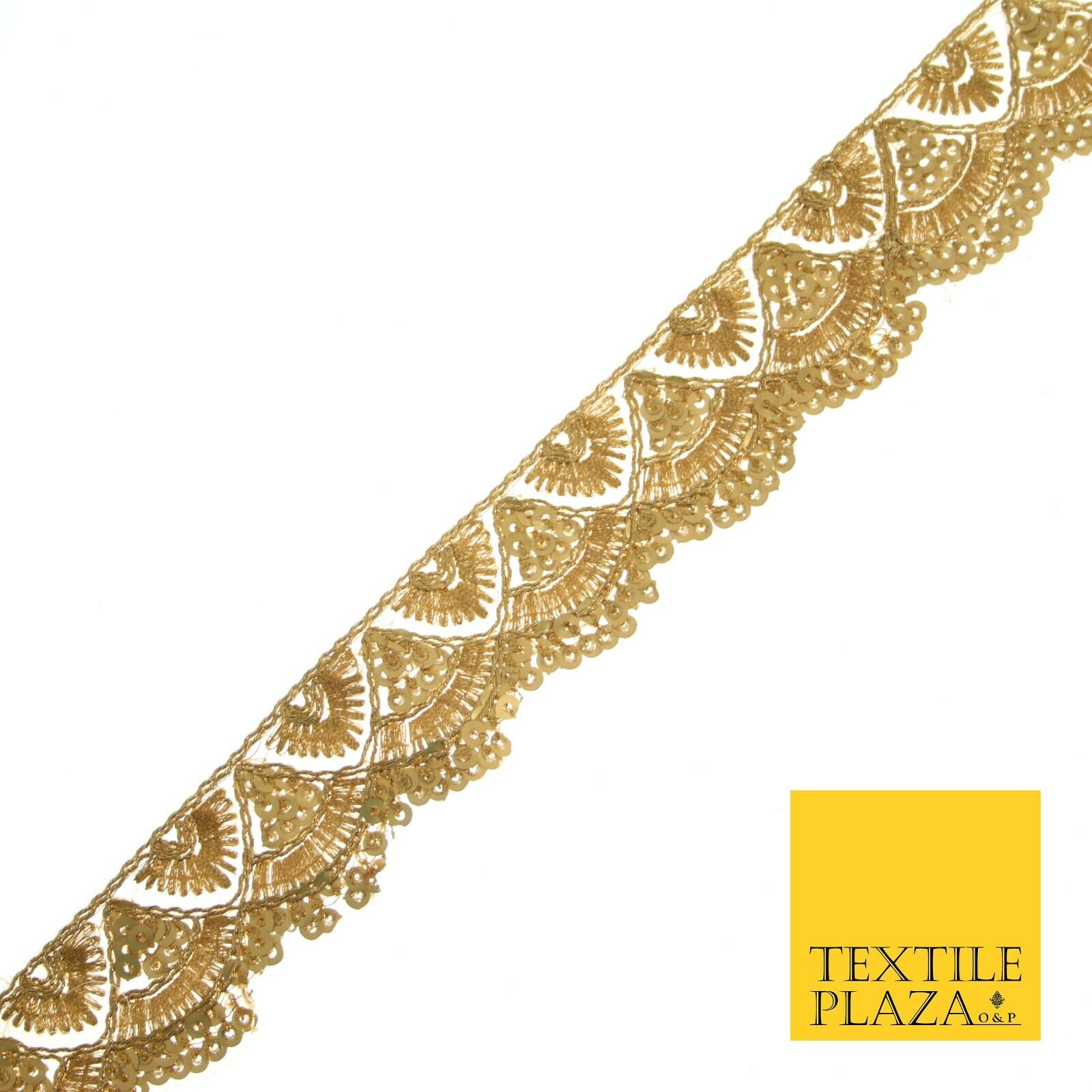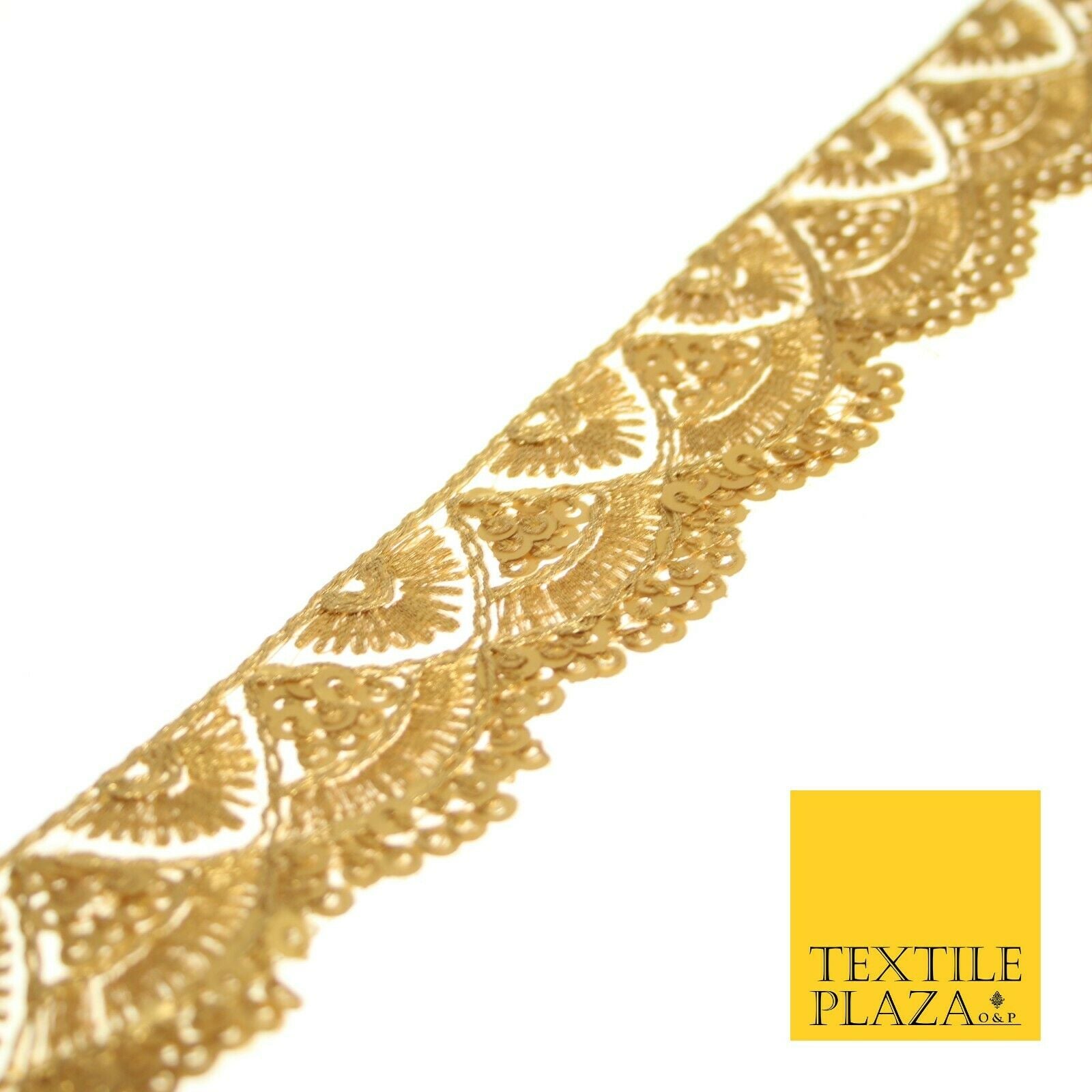 Matt Gold Sequin Threadwork Scalloped Net Gota Trim Border Ribbon Lace X550
