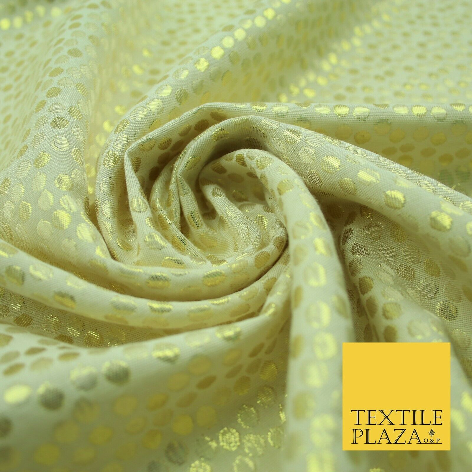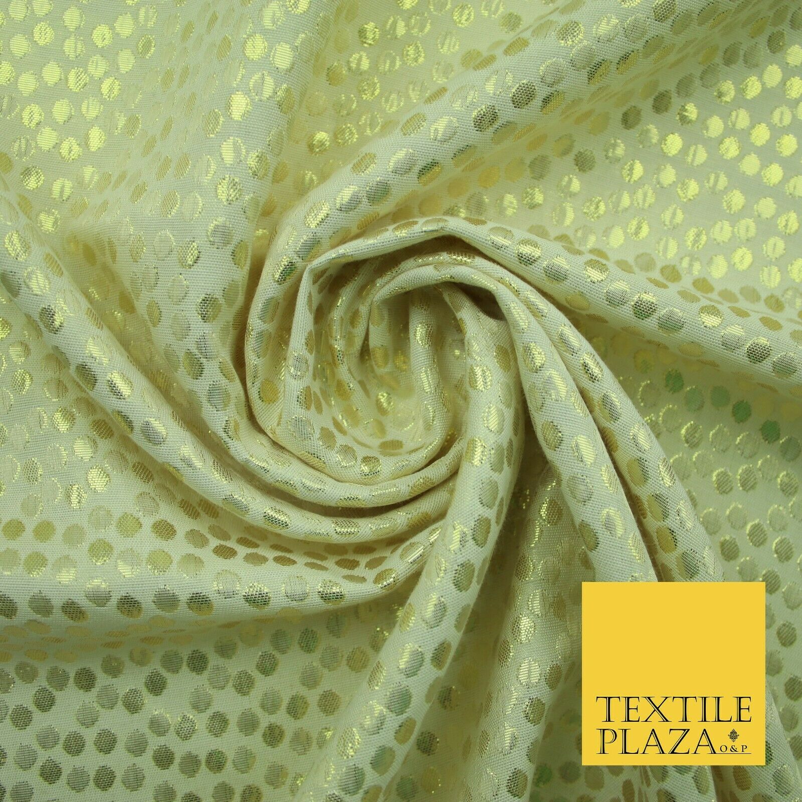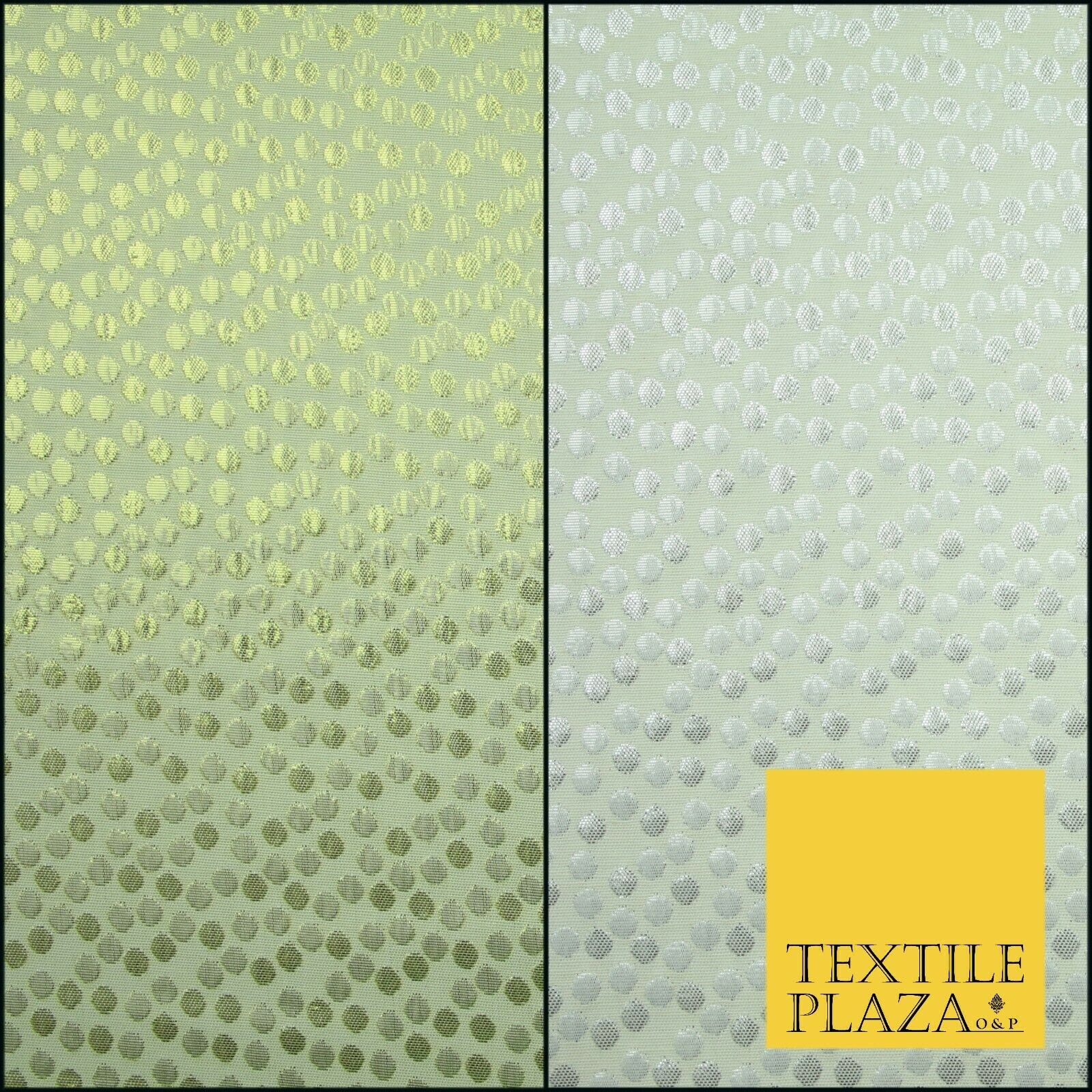 Metallic Gold Silver Spotted Circles Textured Brocade Jacquard Dress Fabric