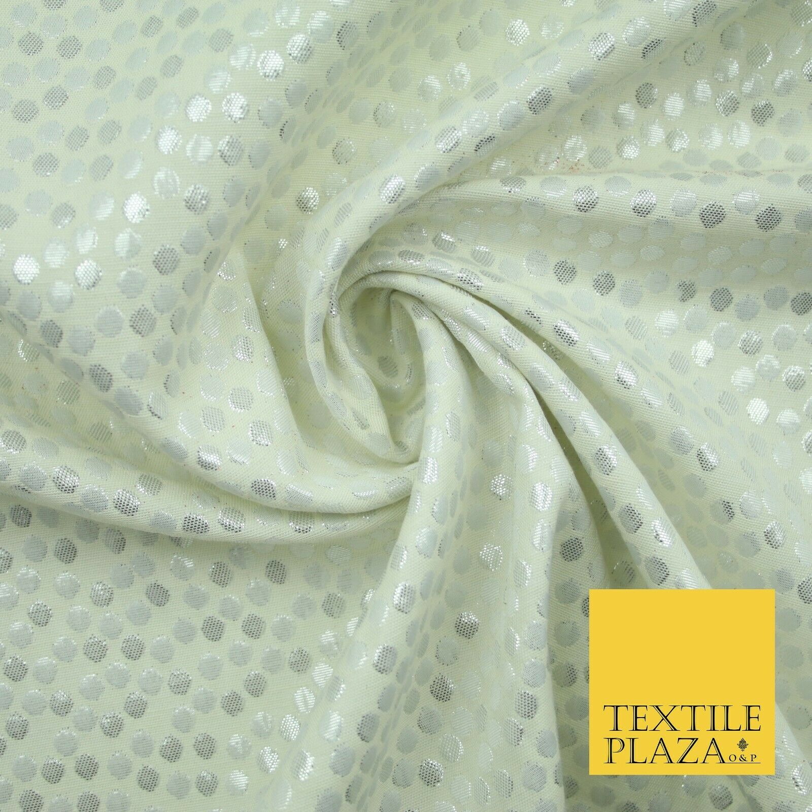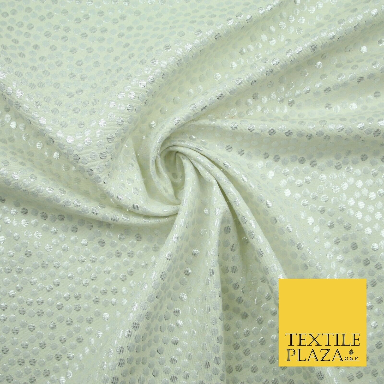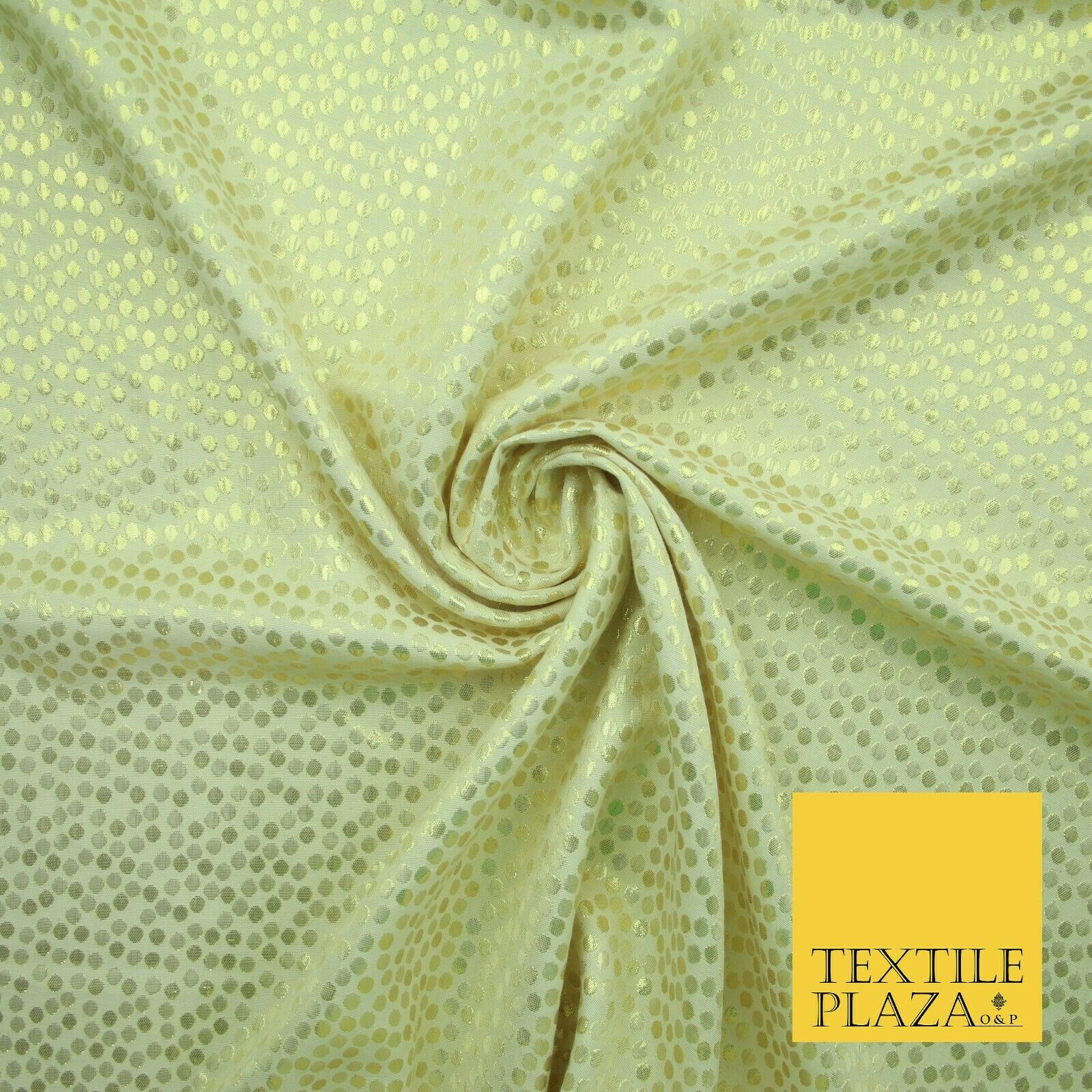 Metallic Gold Silver Spotted Circles Textured Brocade Jacquard Dress Fabric