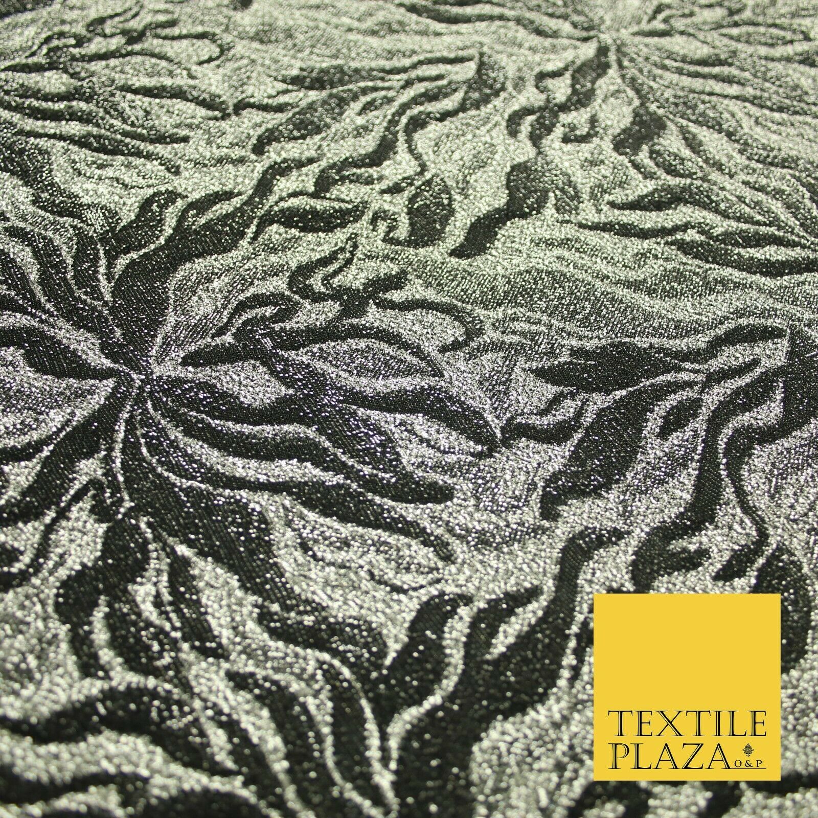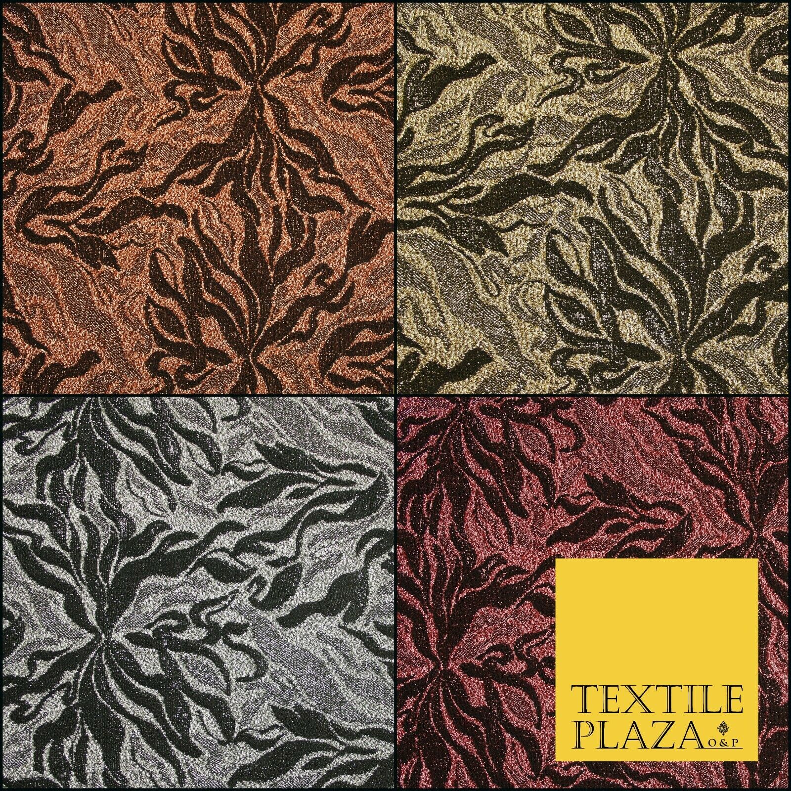 Metallic Weave Botanical Waves Shimmer Stretch Jersey Dress Fabric Backdrop