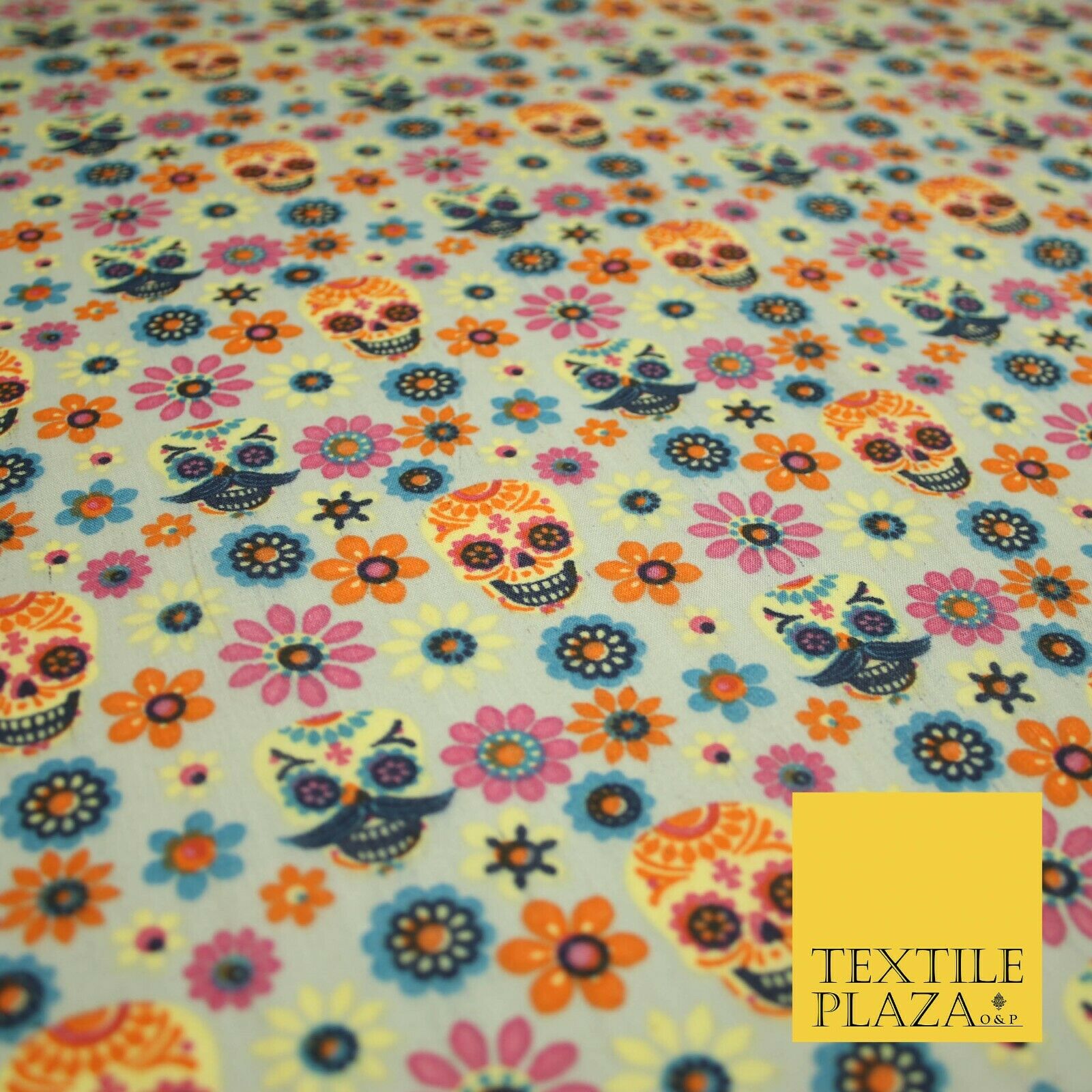 Mexican Ornate Floral Skulls Printed Polycotton Dress Craft Fabric 44" 3 COLOURS
