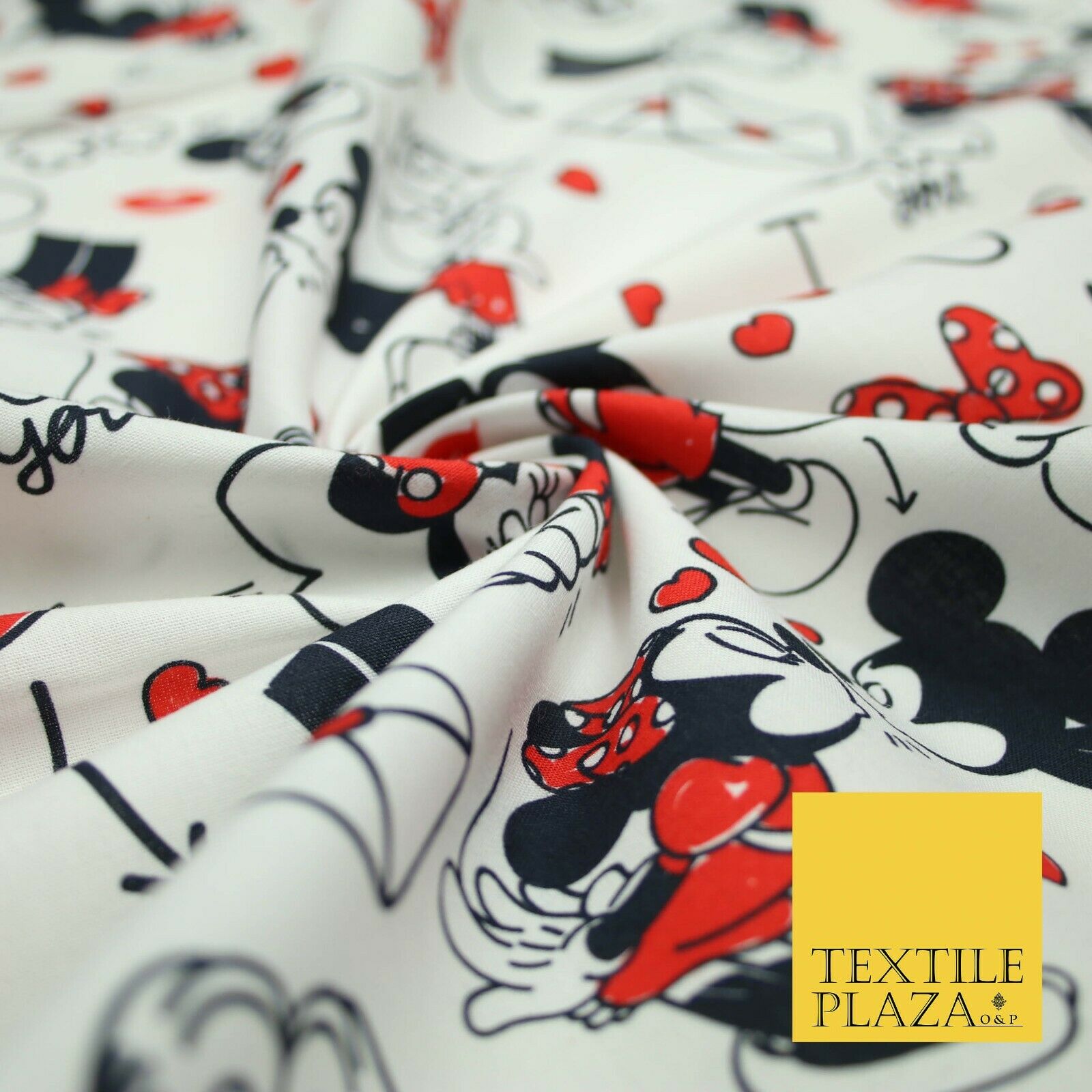 Mickey Minnie Mouse Love Letters Valentine Disney Print Fabric 100% Cotton 4965