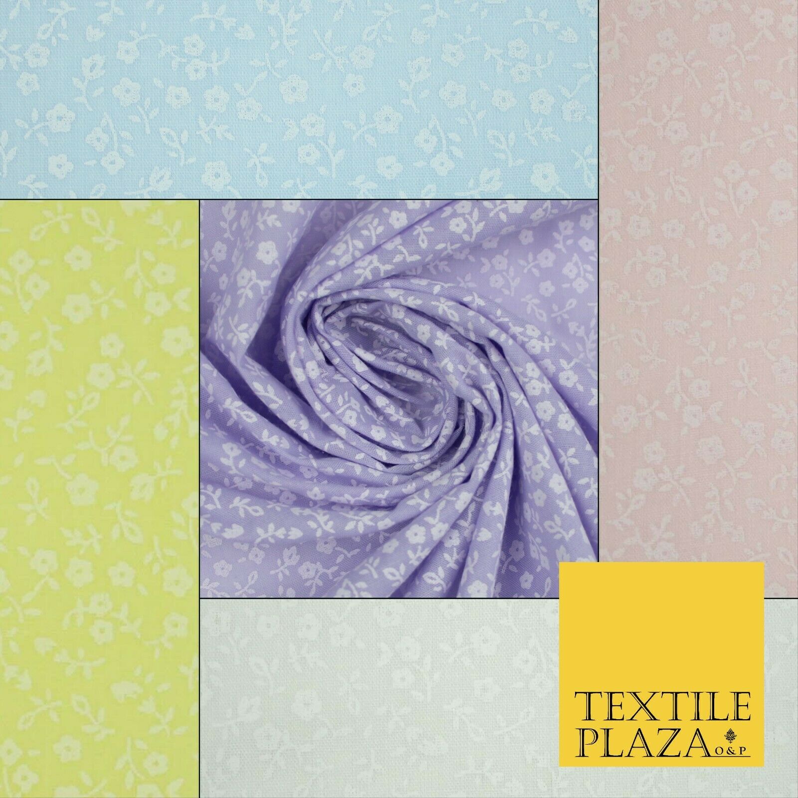Mini Petunia Ditsy Flower Printed Pastel Poly Cotton Fabric Polycotton Craft 45"