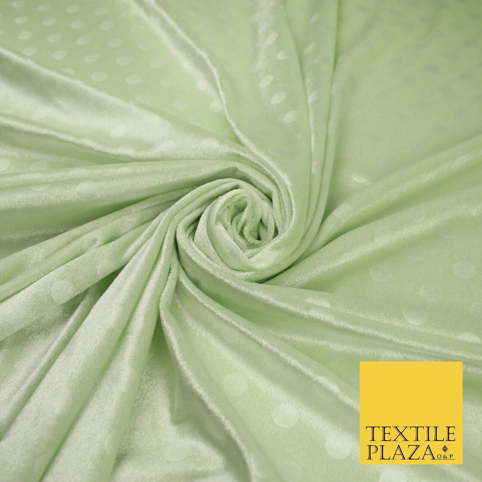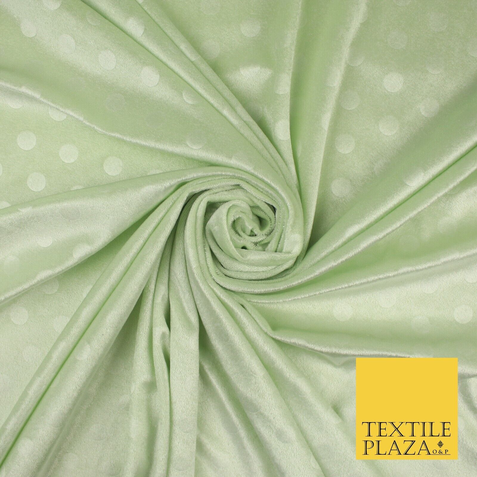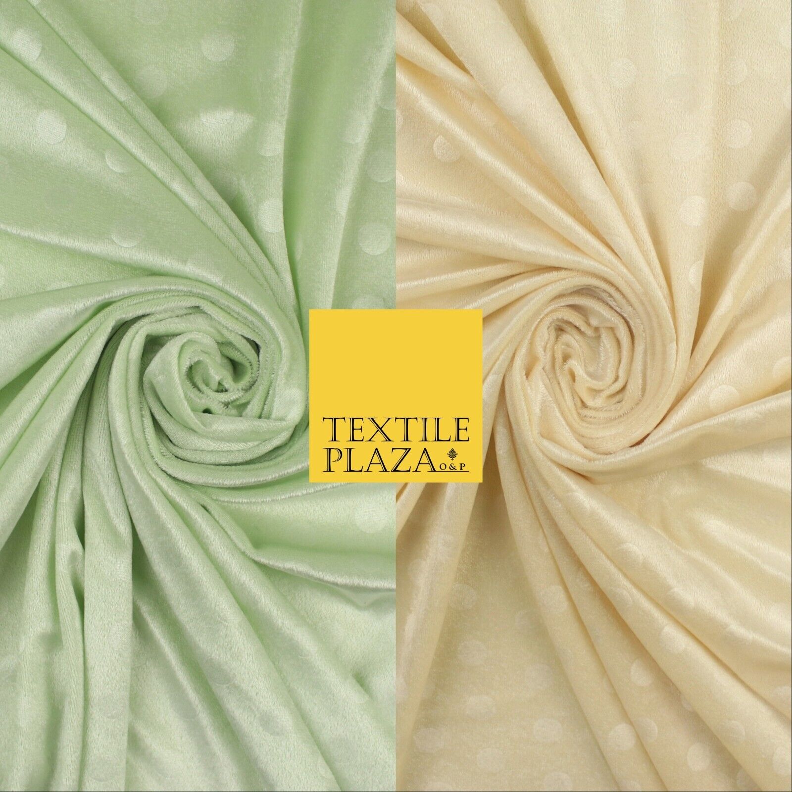 MINT / CREAM 1.5cm Spotted Polka Dot Velvet Velour Fabric Stretch Dress Material