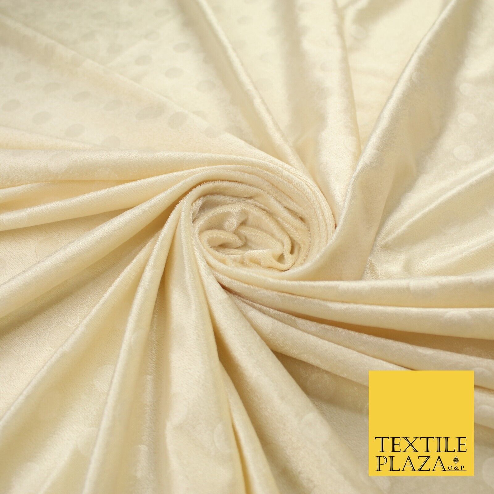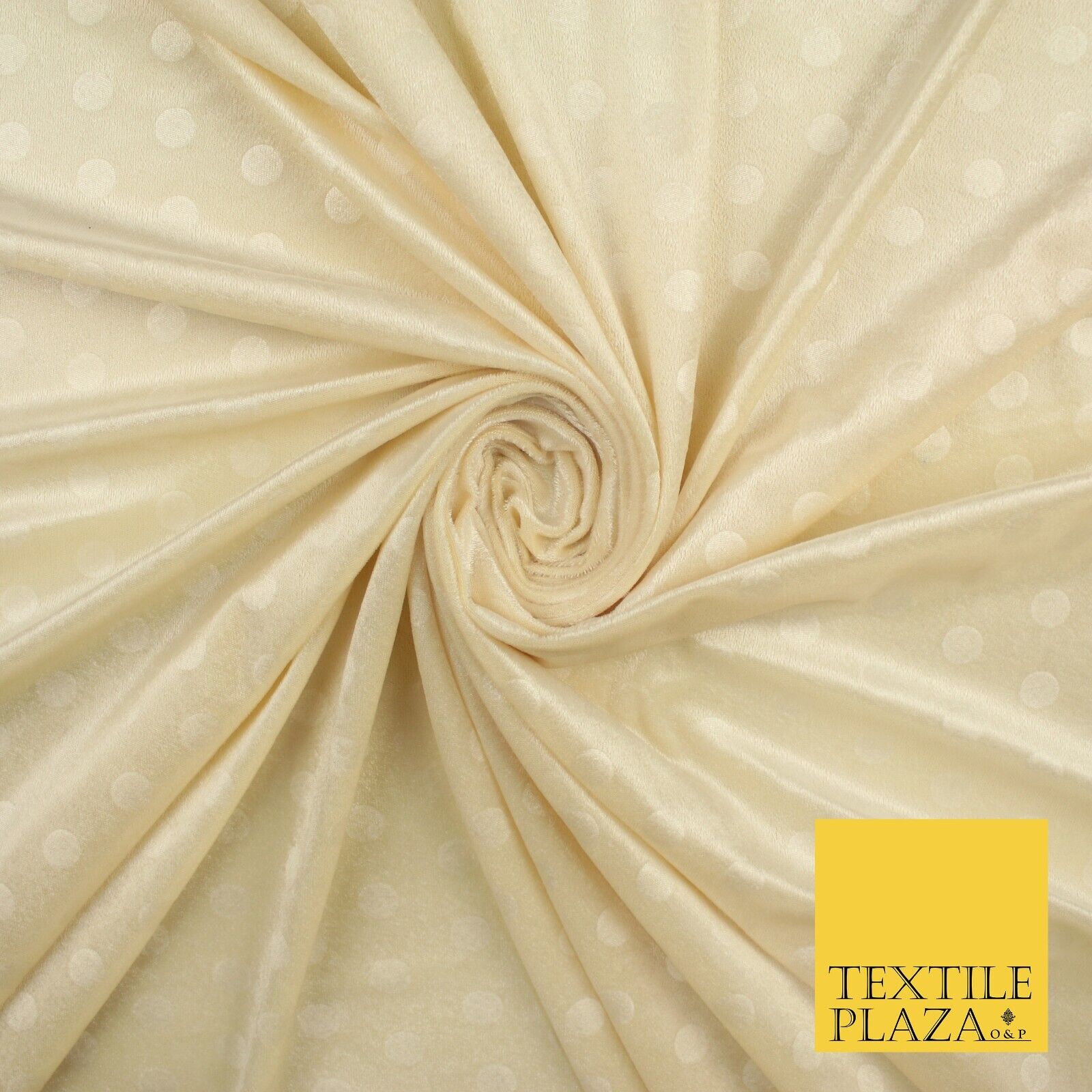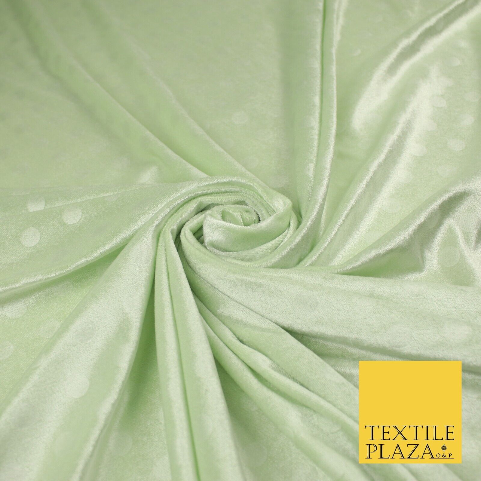 MINT / CREAM 1.5cm Spotted Polka Dot Velvet Velour Fabric Stretch Dress Material
