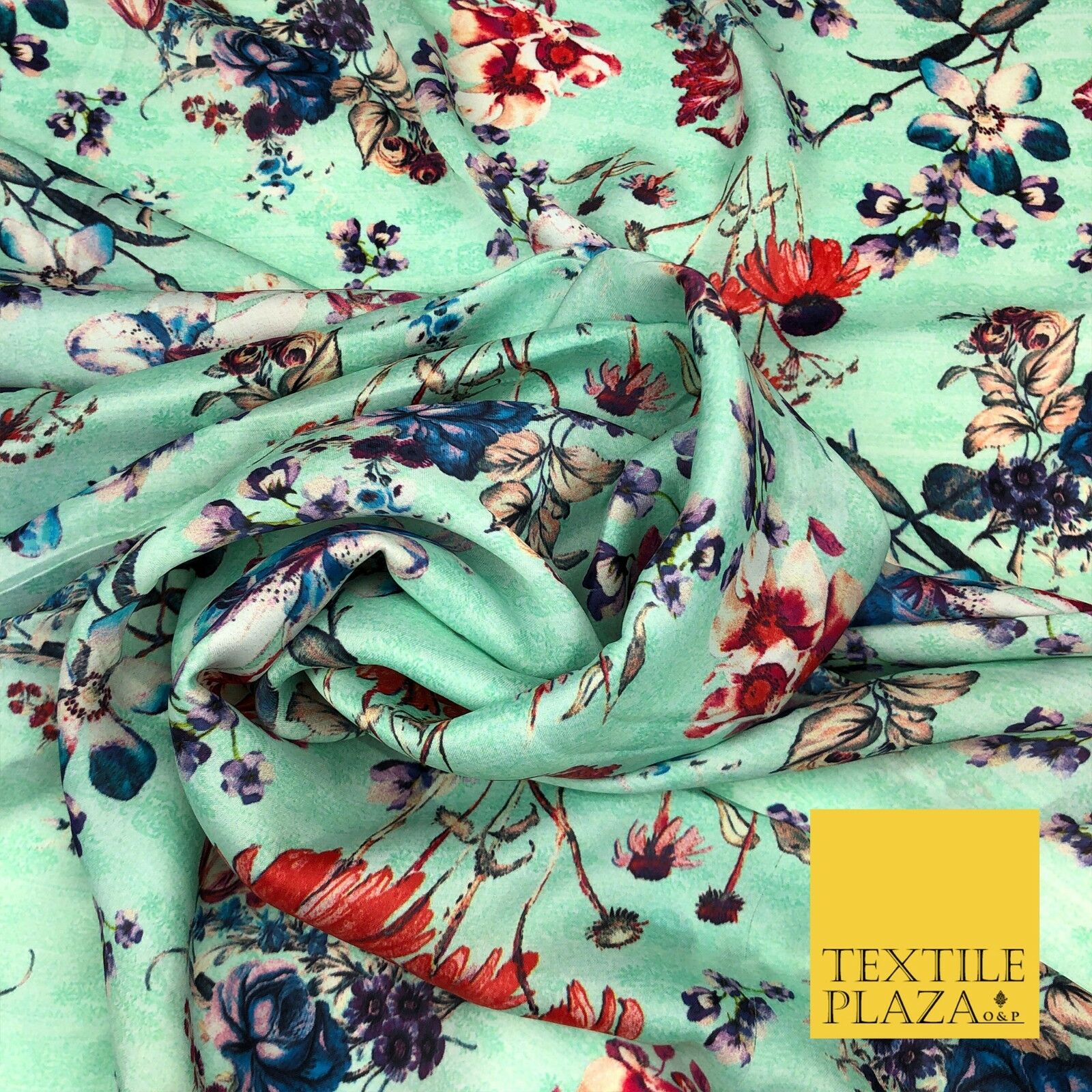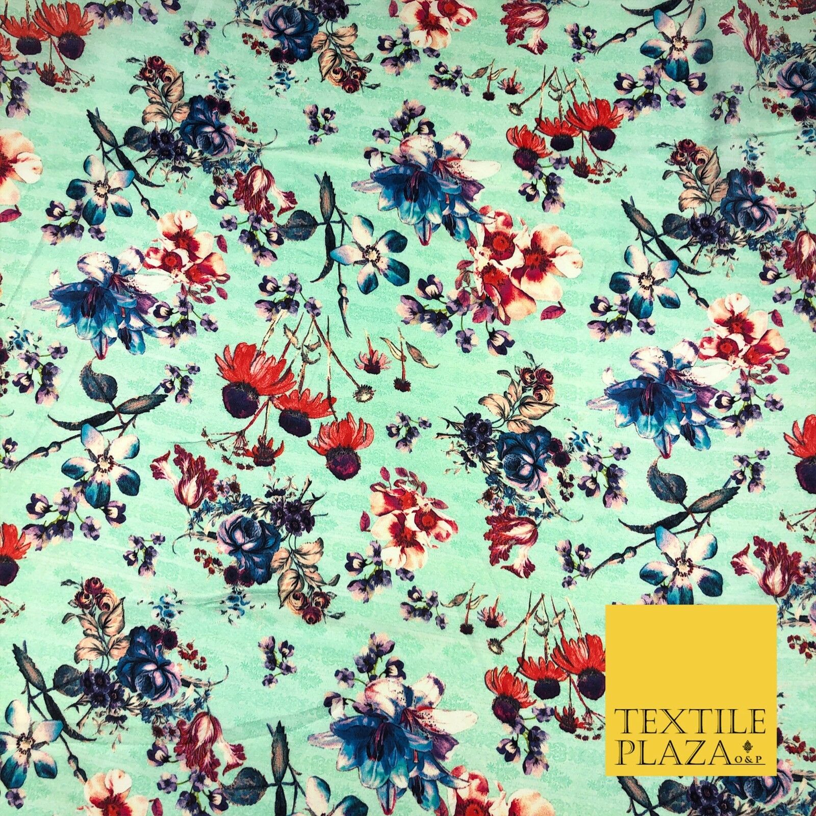 Mint Floral Watercolour Silky DigitalPrint Satin Crepe Dress Fabric Trendy I1080