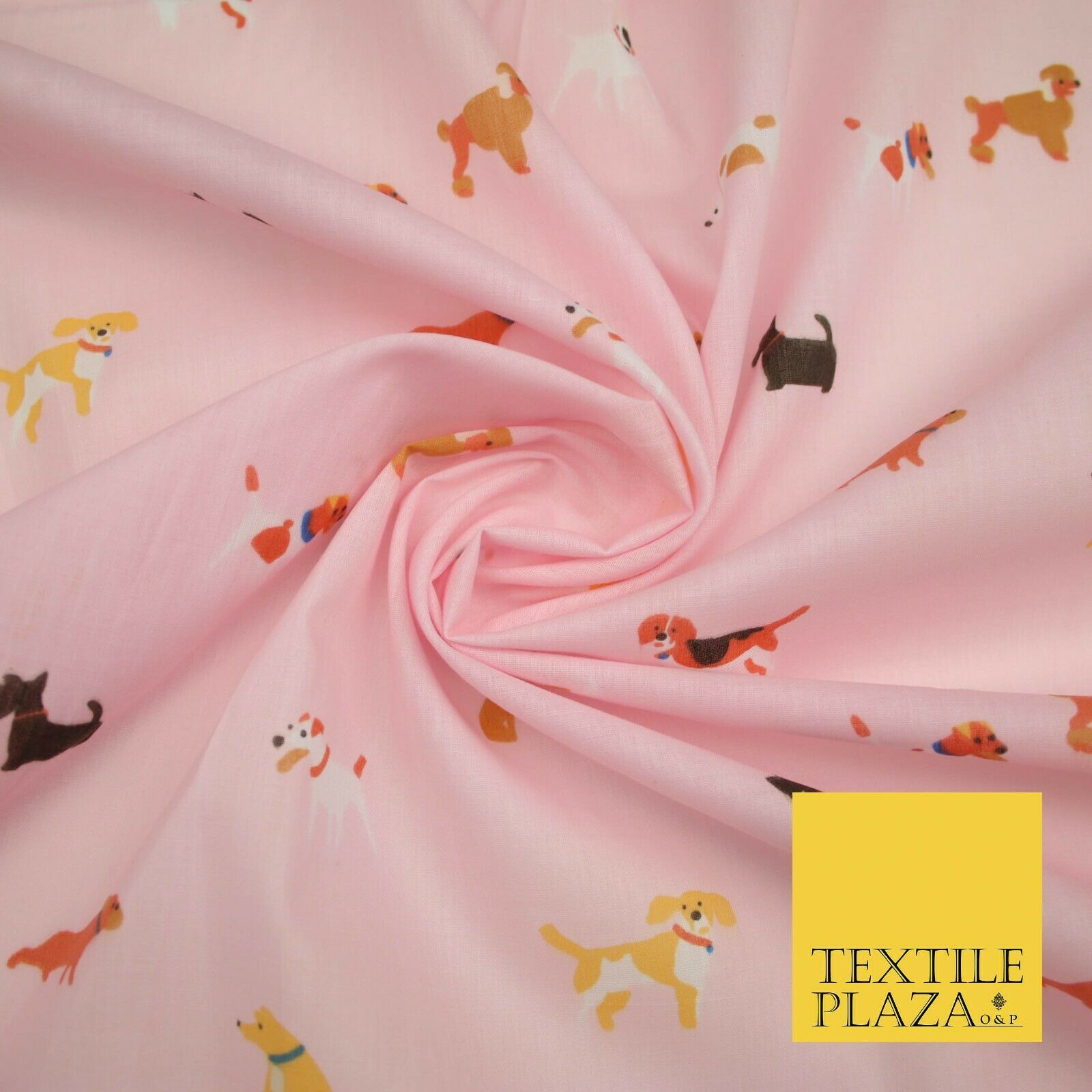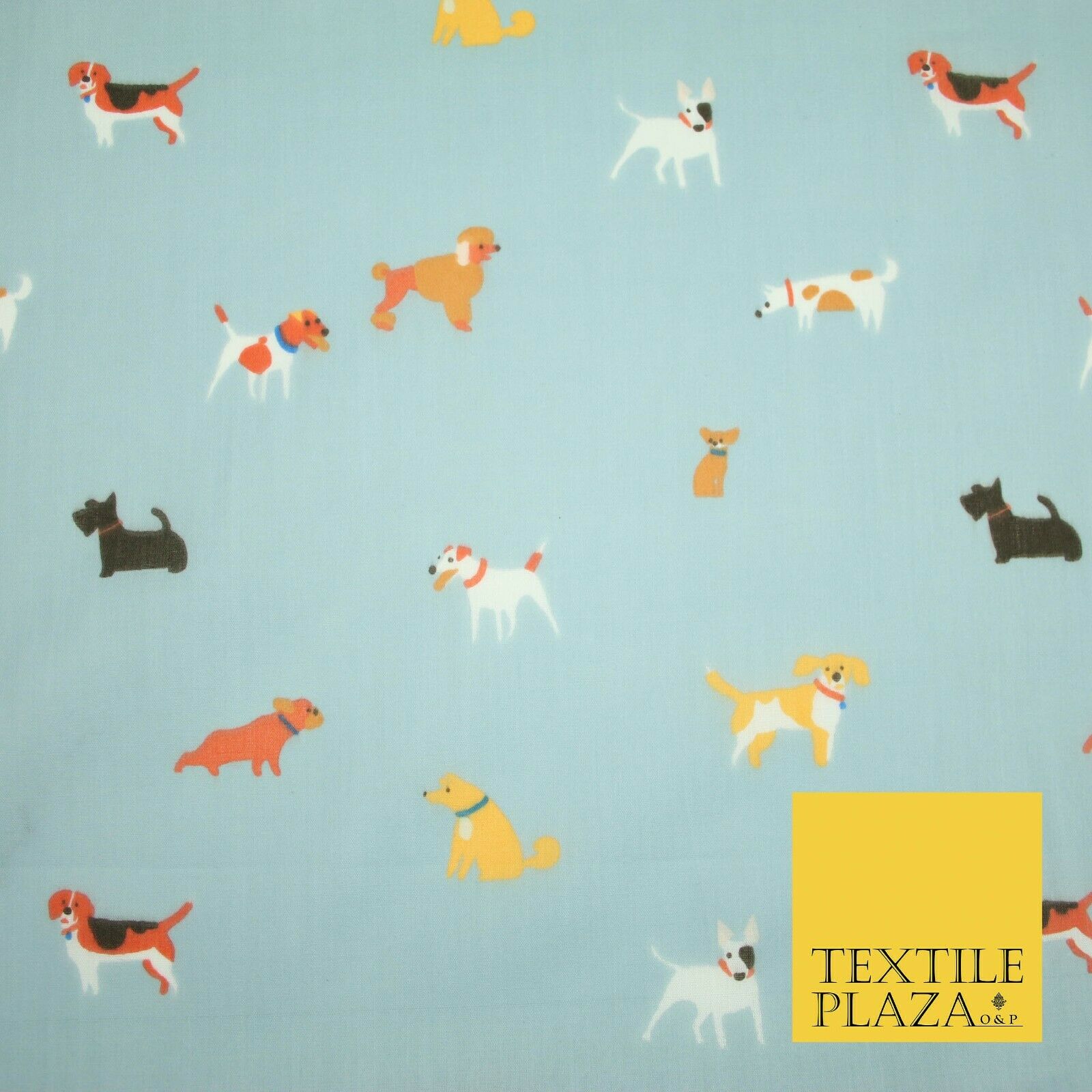 Mix Dogs Bulldog Terrier Spaniel Poodle Printed Polycotton Dress Craft Fabric44"