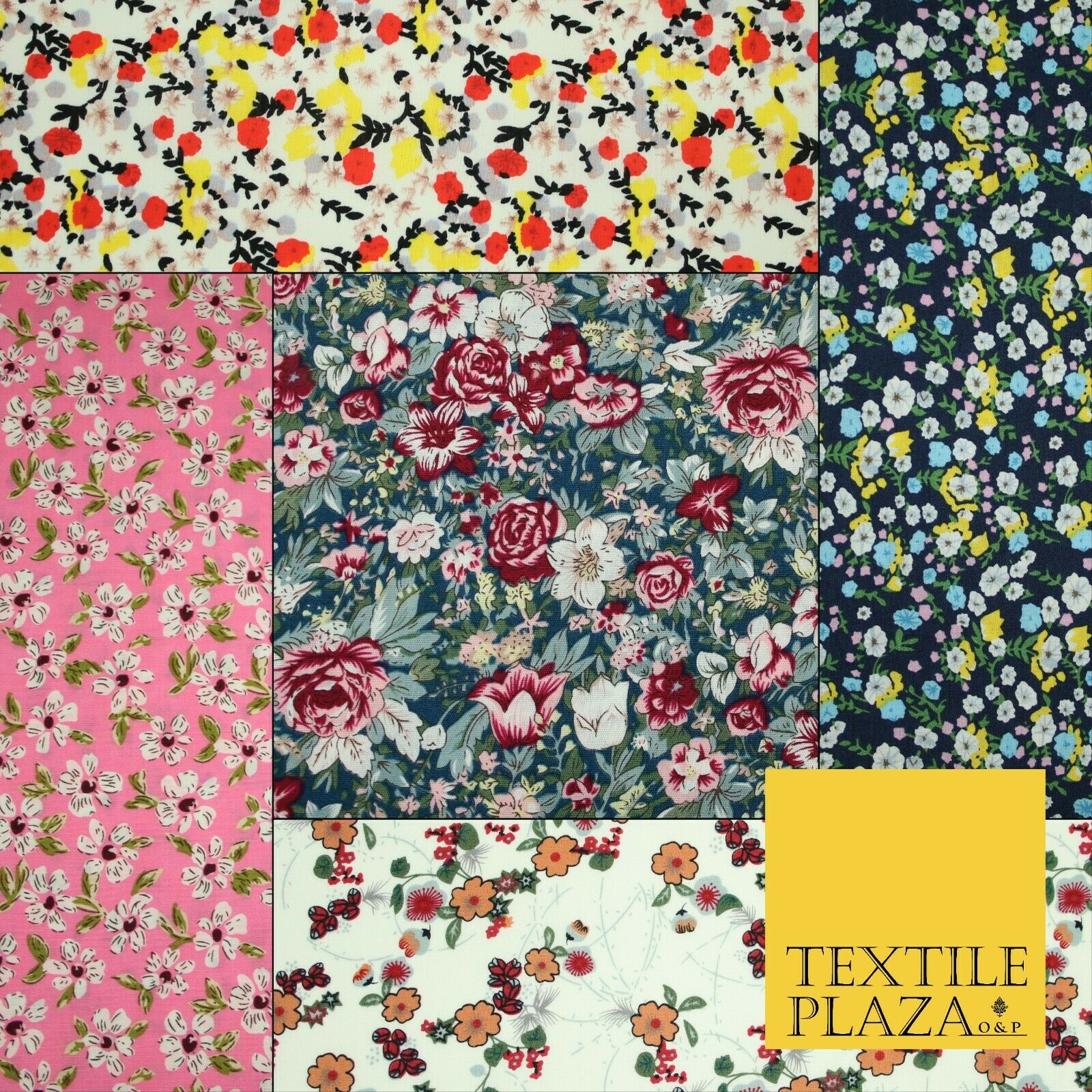 Mix Floral Flower Ditsy Printed 100% Cotton Poplin Fabric Dress Craft Mask 59"