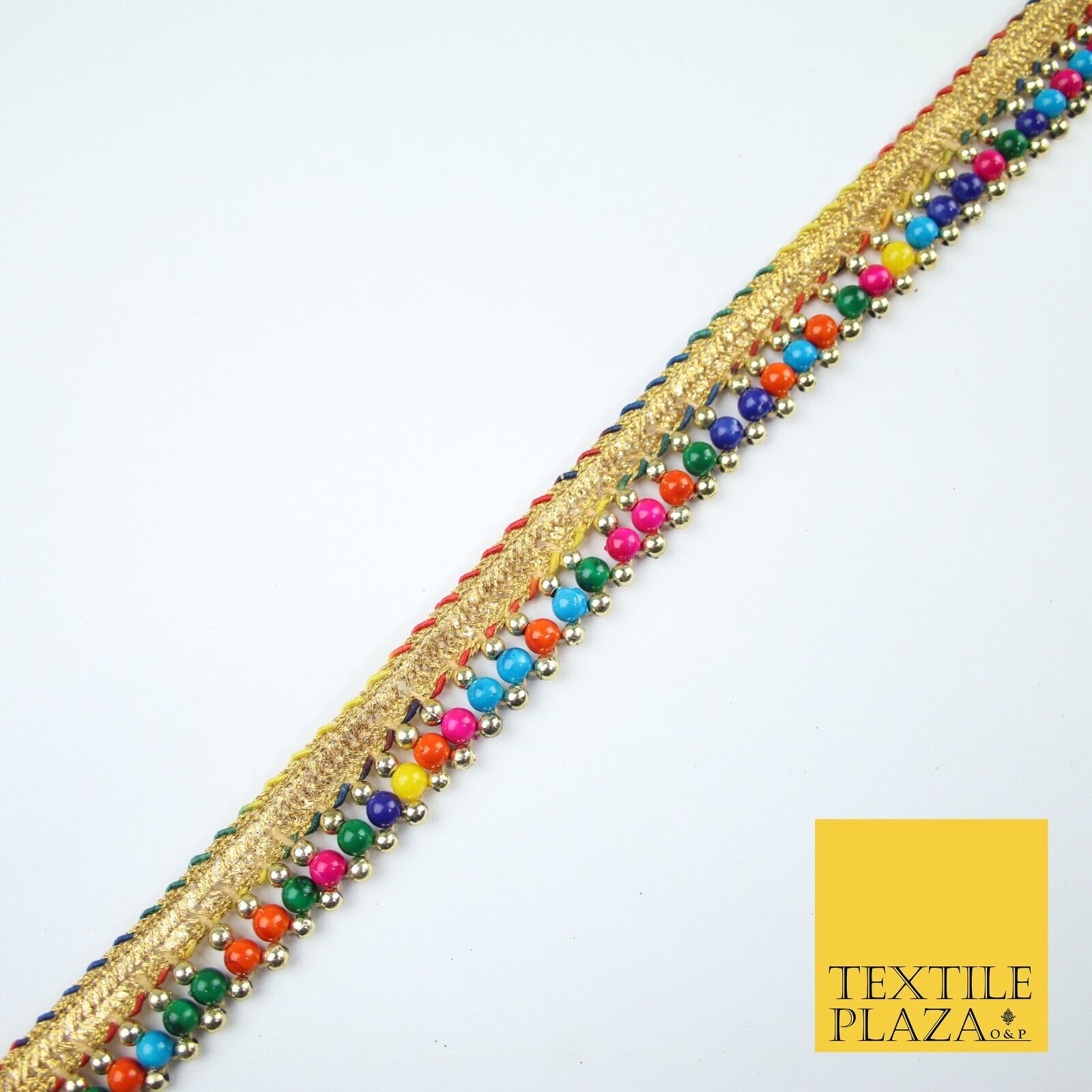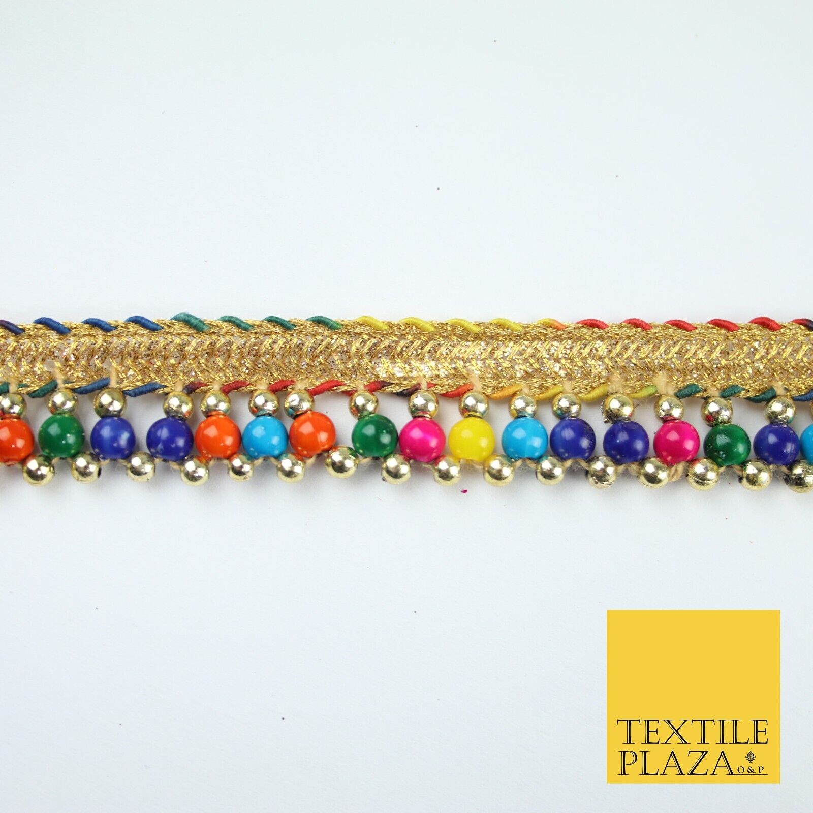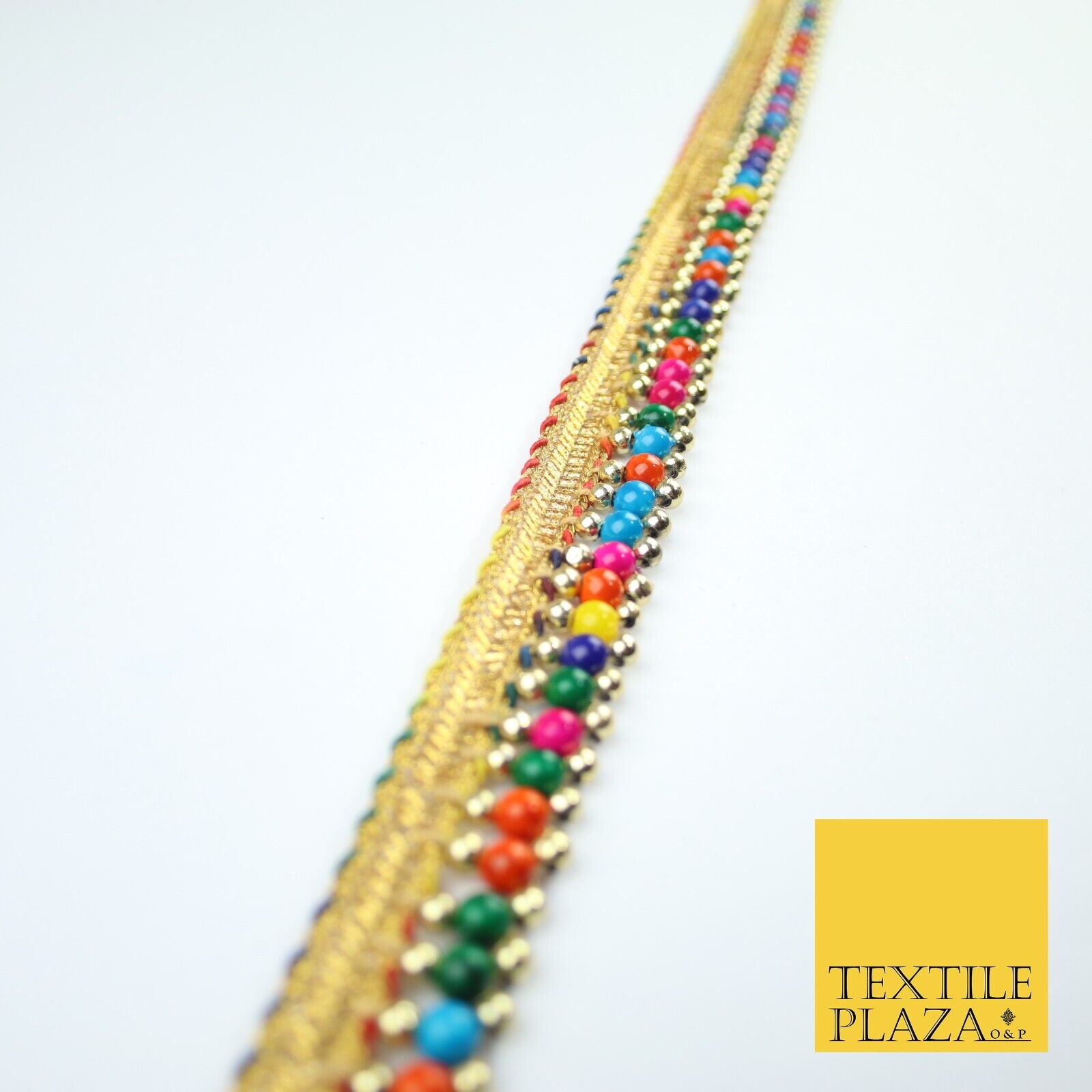 Multicolour Colourful Pearl Beaded Gold Ribbon Trim Border Lace - 2cm Wide X576
