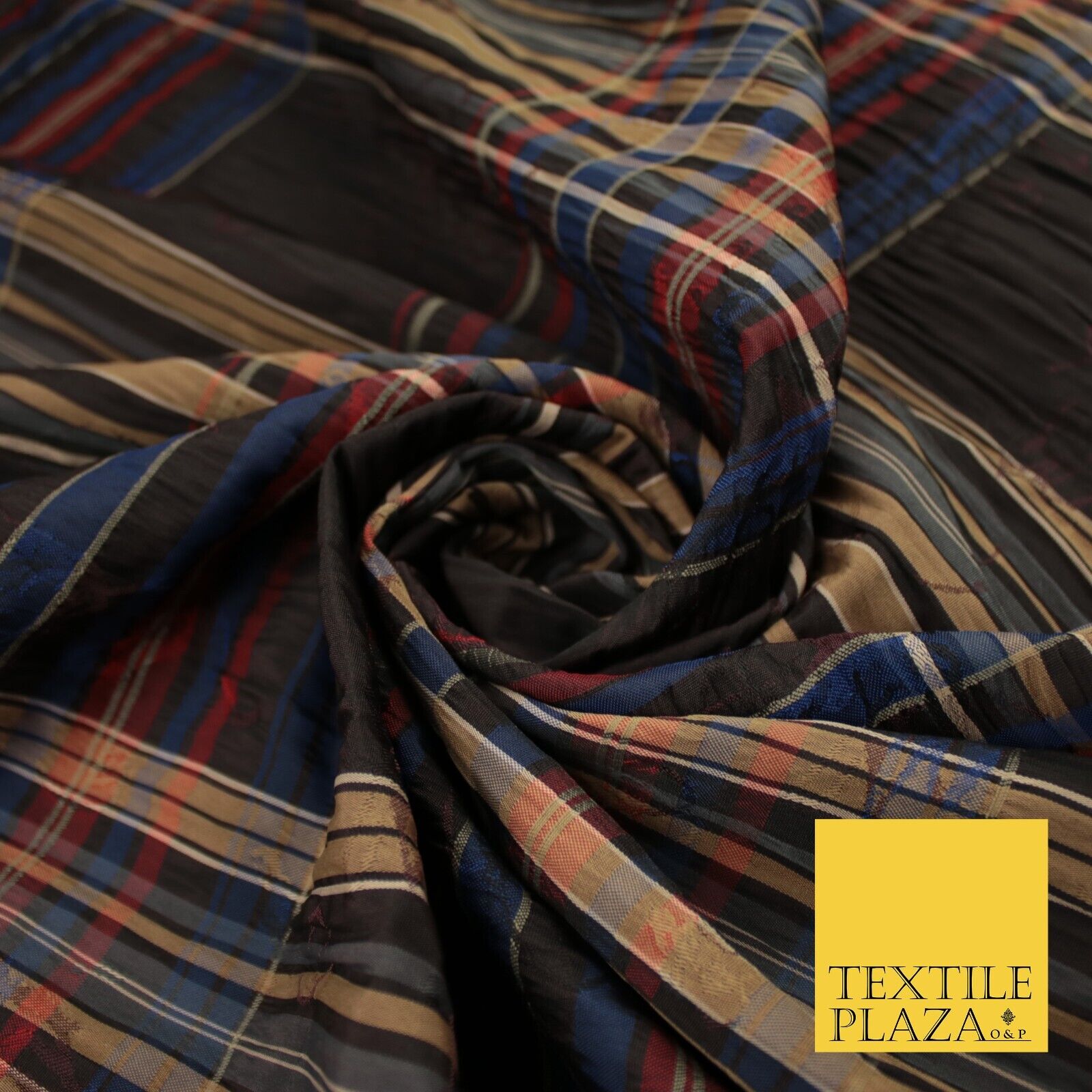 Multicolour Faux Silk Taffeta Check Tartan Dress Fabric 62" 10375