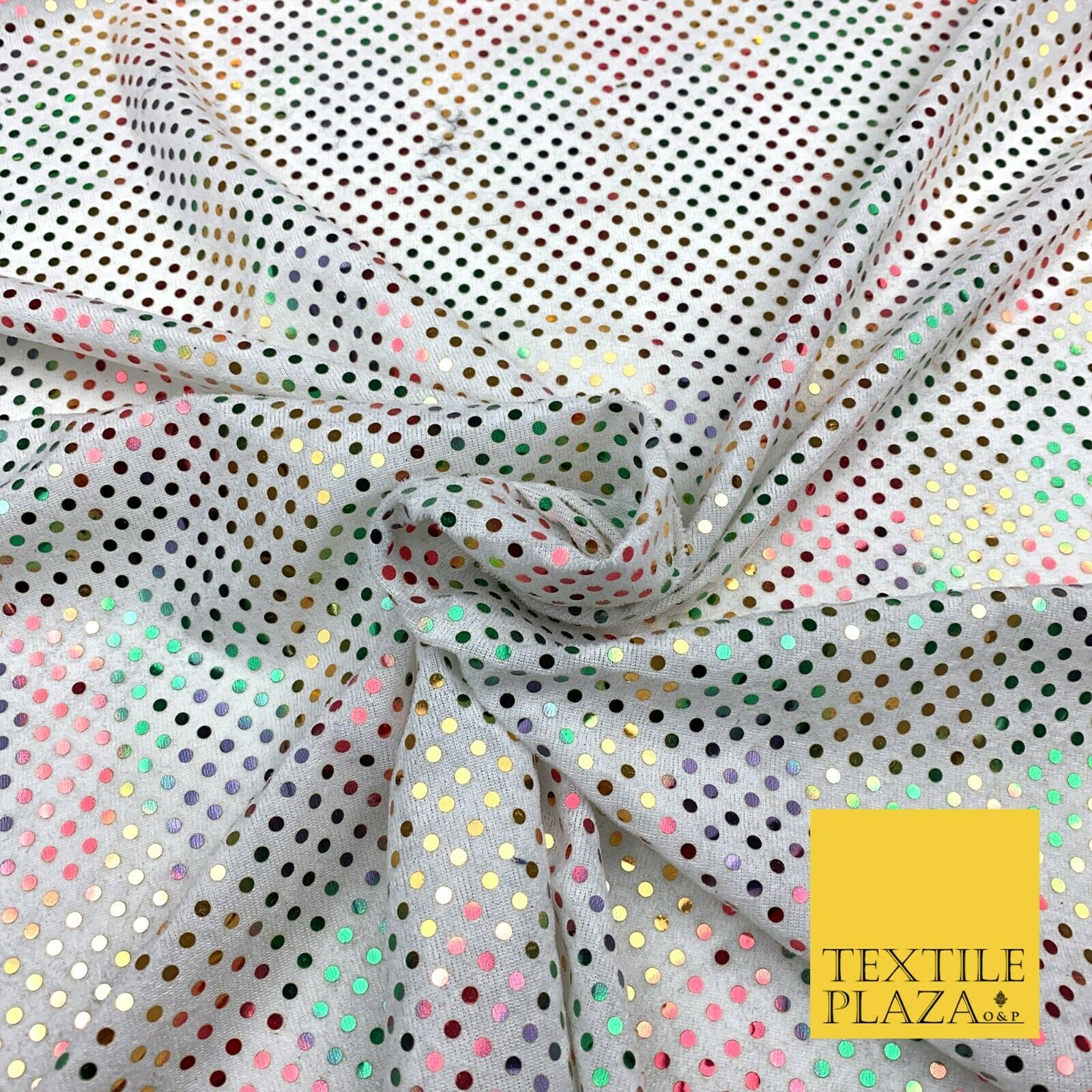 Multicolour Rainbow 3mm Sequin White Velour Fabric Stretch Sparkle Dress NHS1778