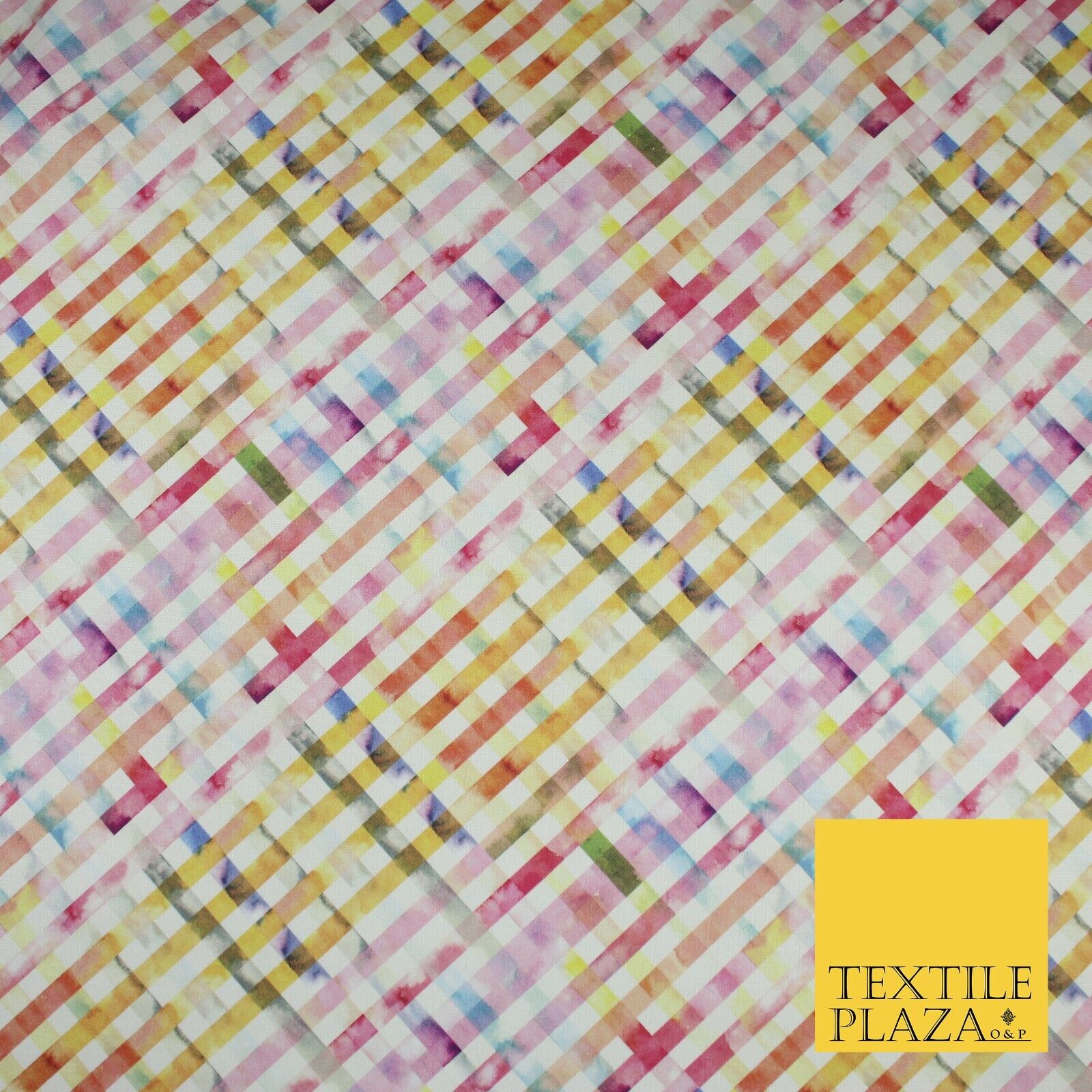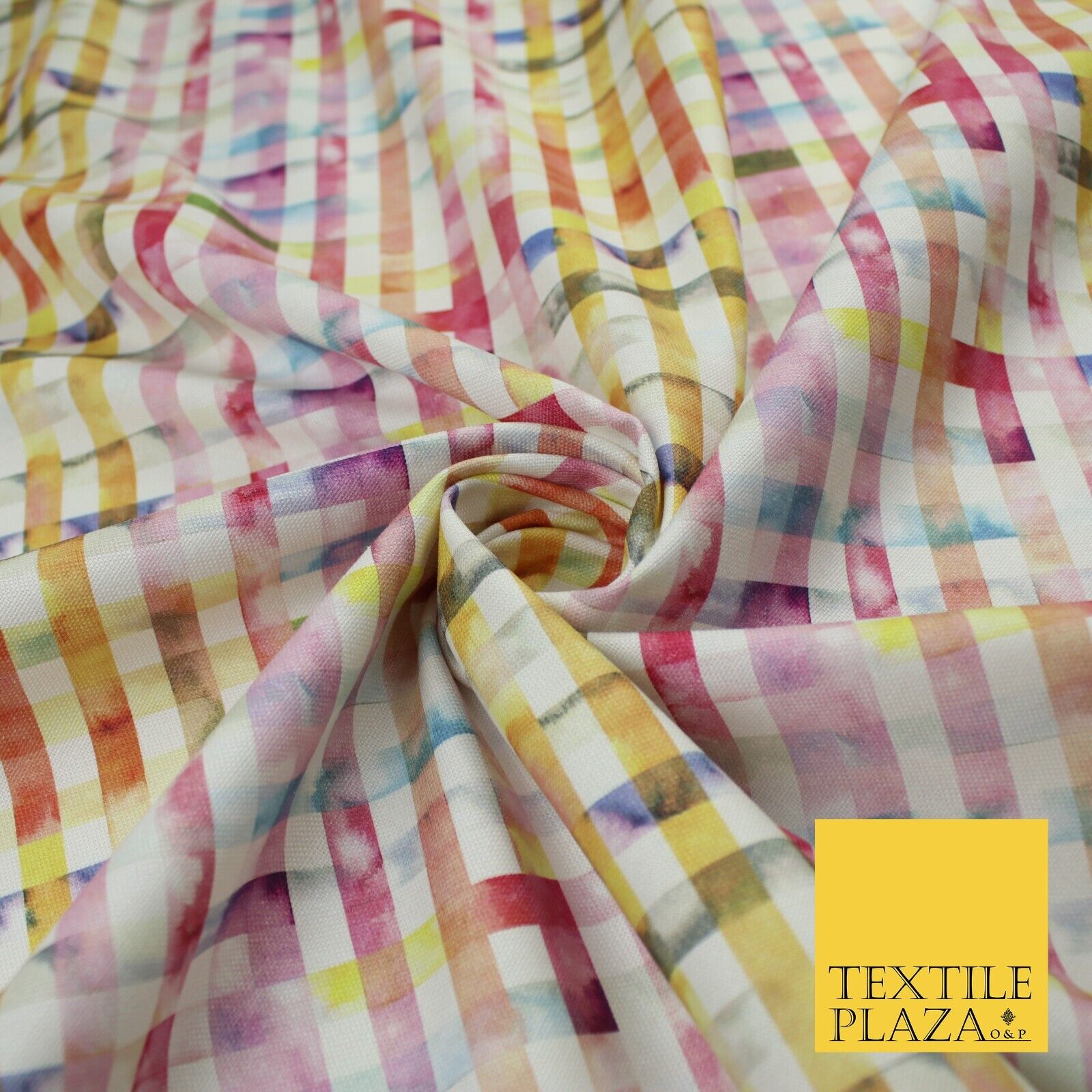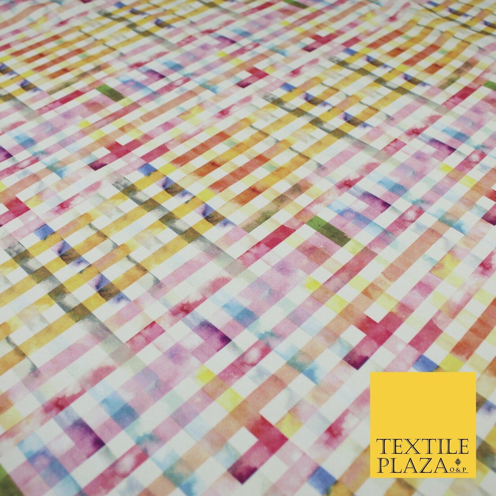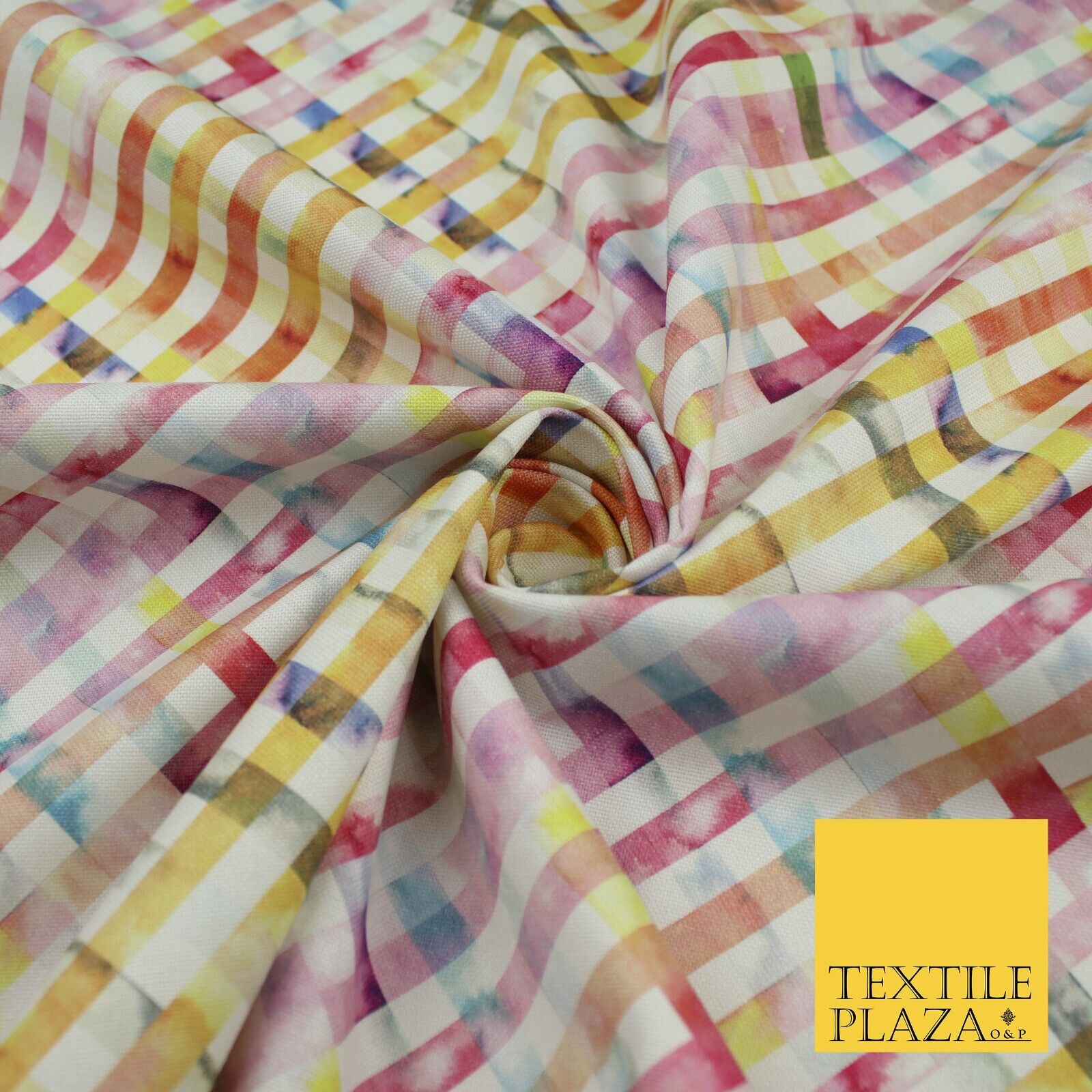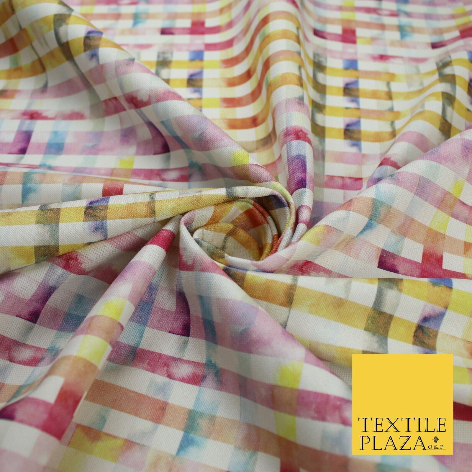 Multicolour Rainbow Check 100% Cotton Canvas Printed Fabric Craft 59" 9100