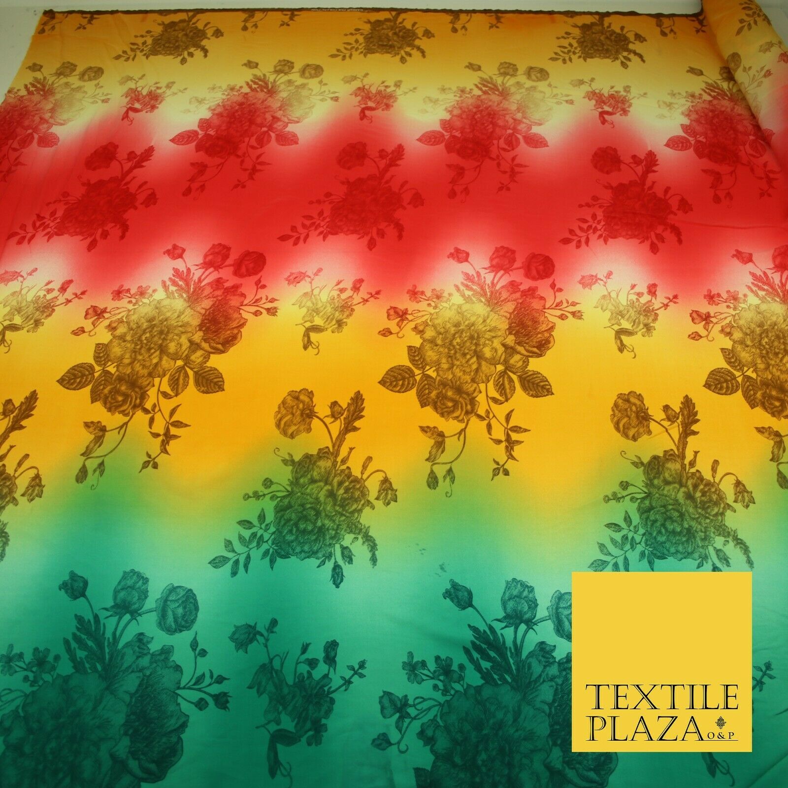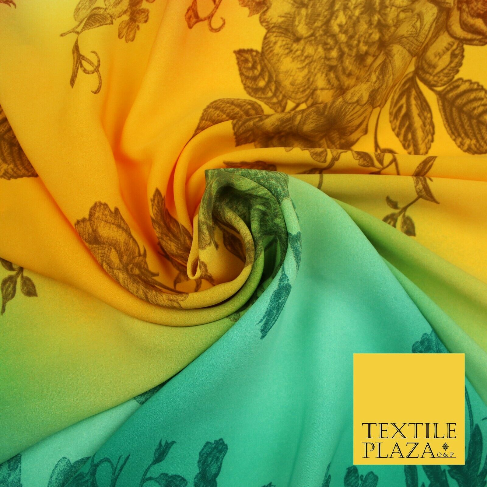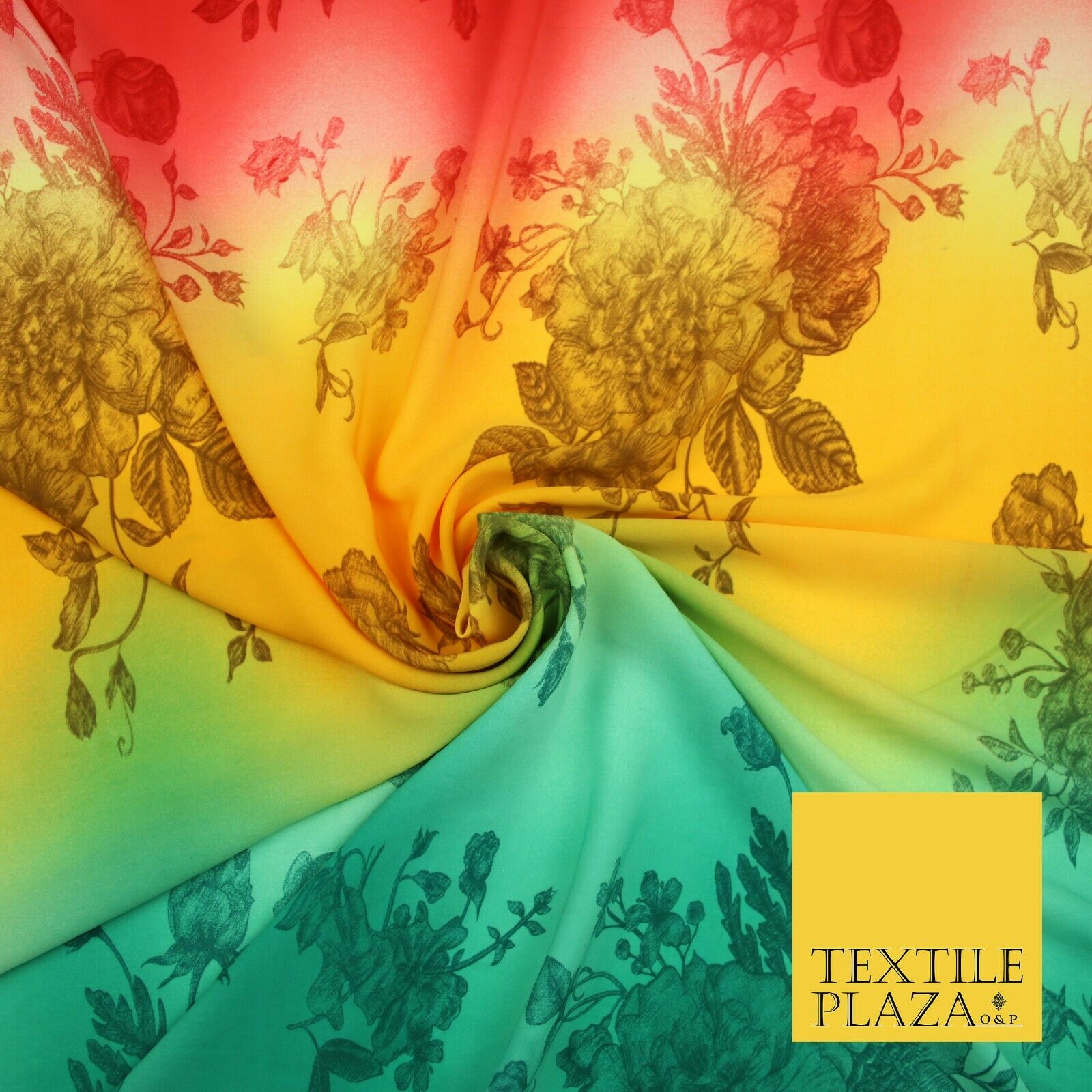 Multicolour Shaded Flower Clusters Printed Crepe Polyester Dress Fabric 2827