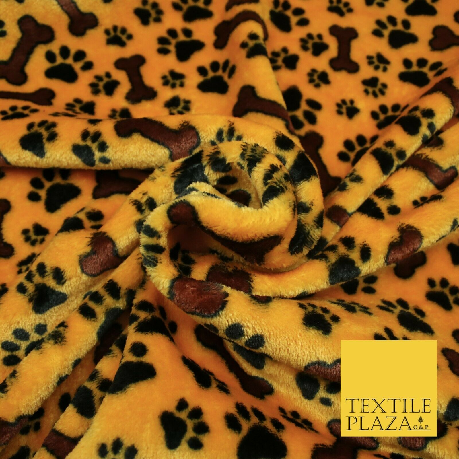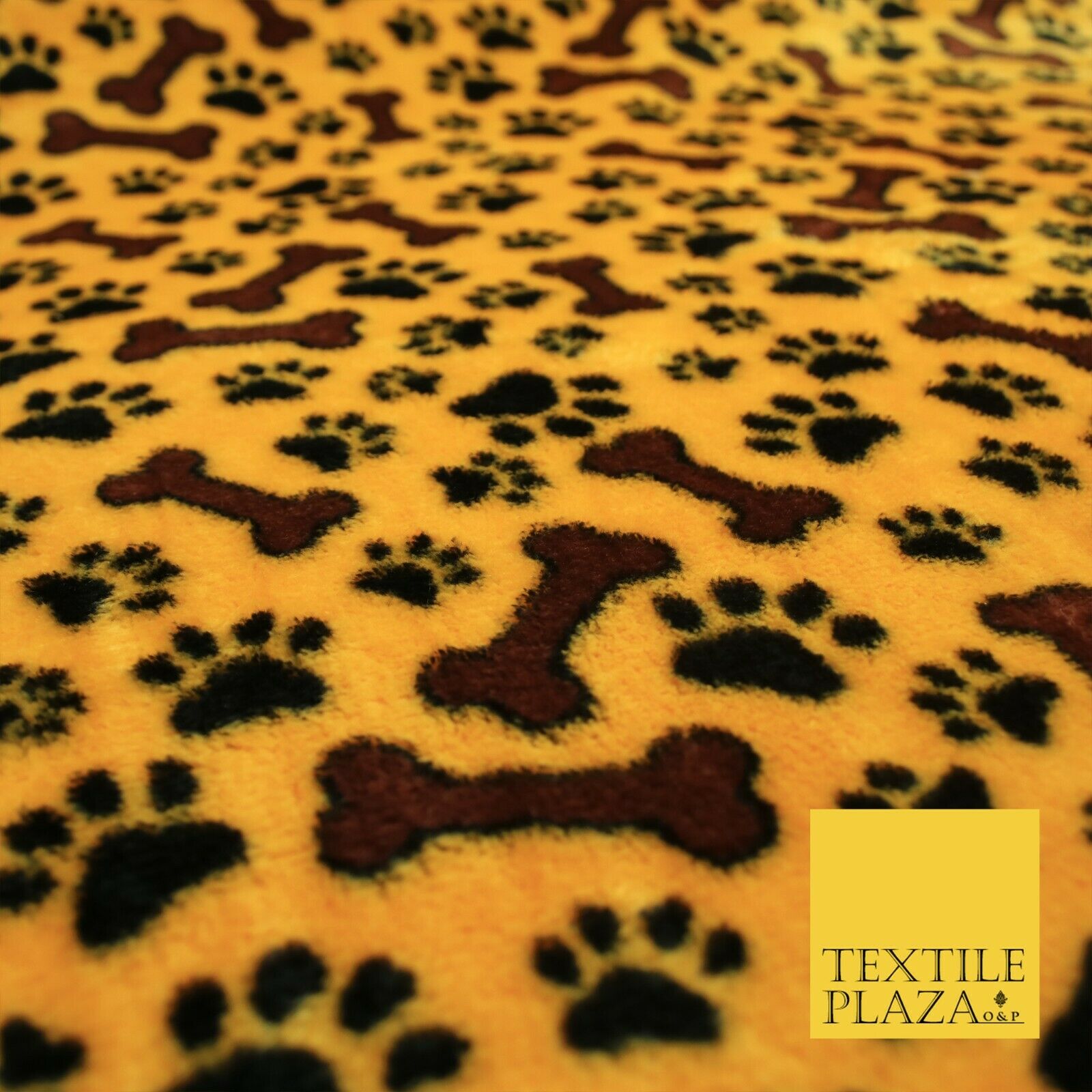 Mustard Dog Bone Paws SUPER SOFT Printed Cuddle Fleece Bed Blankets Craft 1777